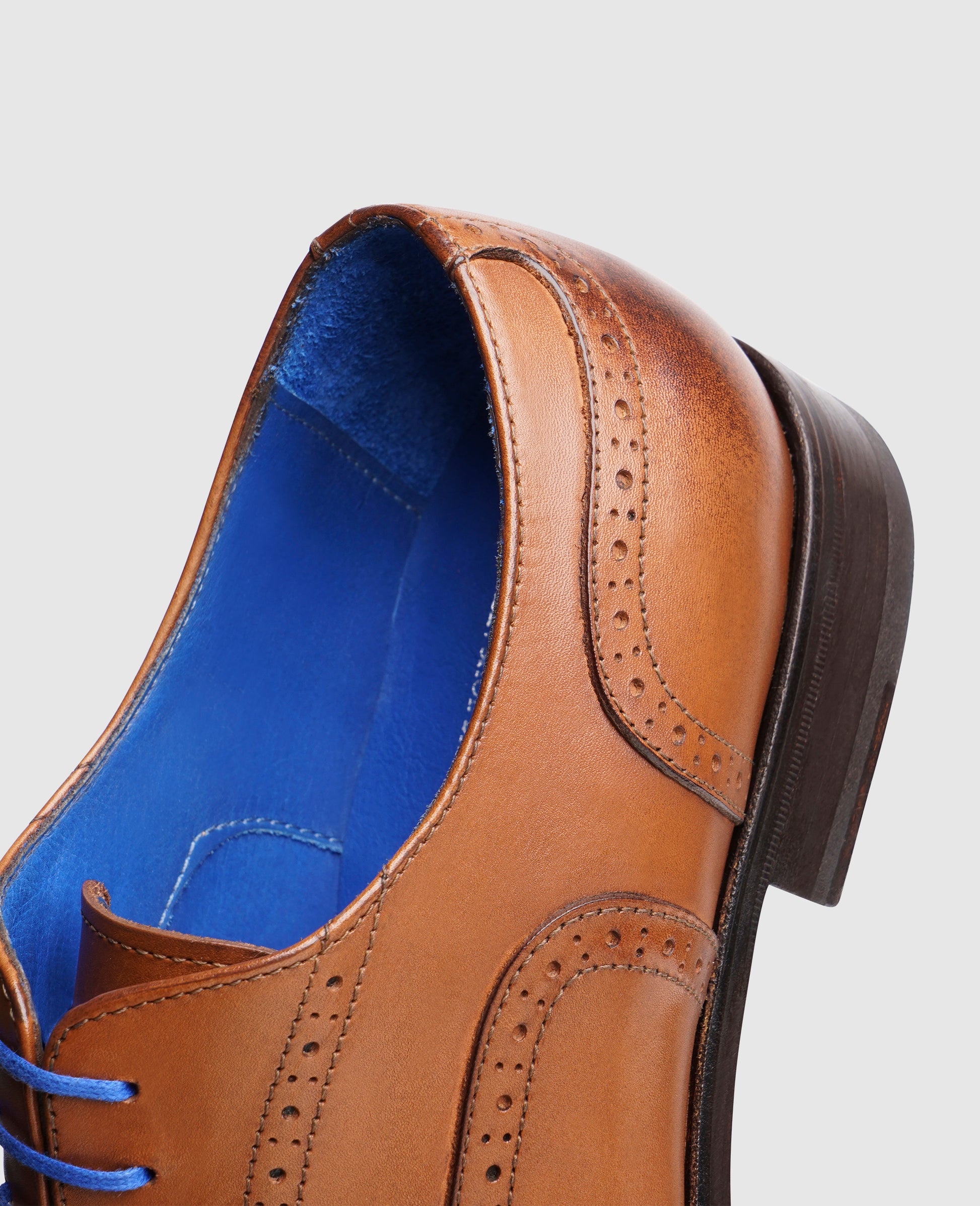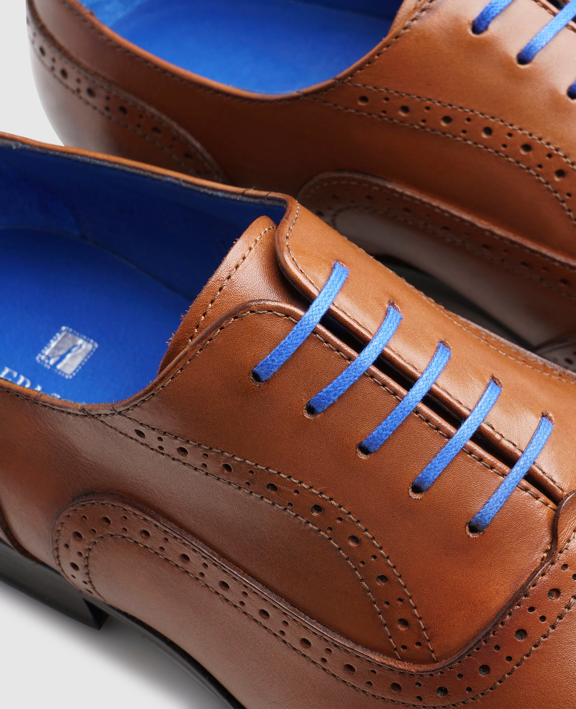 Der nussbraune Full-Brogue Oxford findet in verborgenen Details eine zusätzliche Dynamik. Als »Blue Stitched« Modell sorgt die durchgenähte Machart für einen leichten Auftritt und hohe Flexibilität. Der klassische Leisten sowie der Memory Foam Effekt der Innensohle für höchsten Komfort.