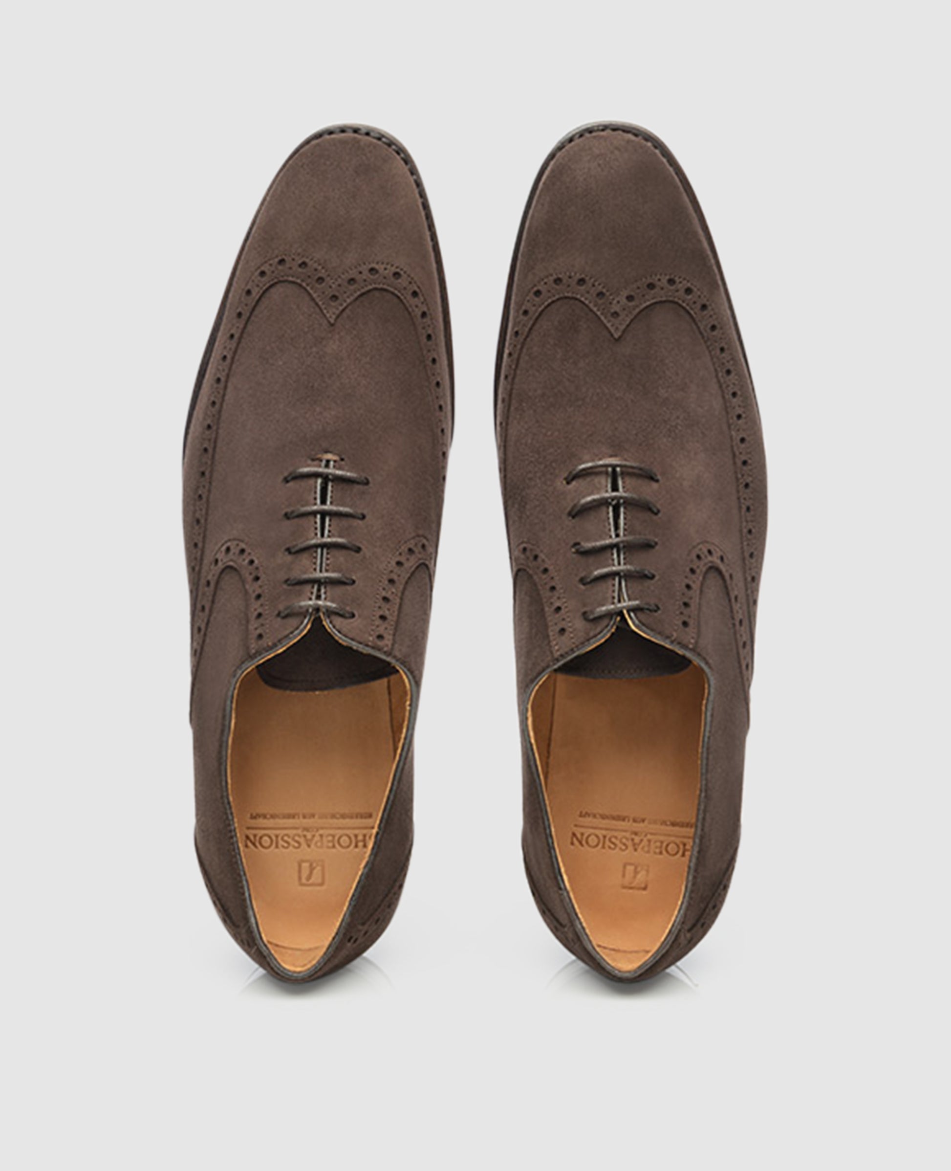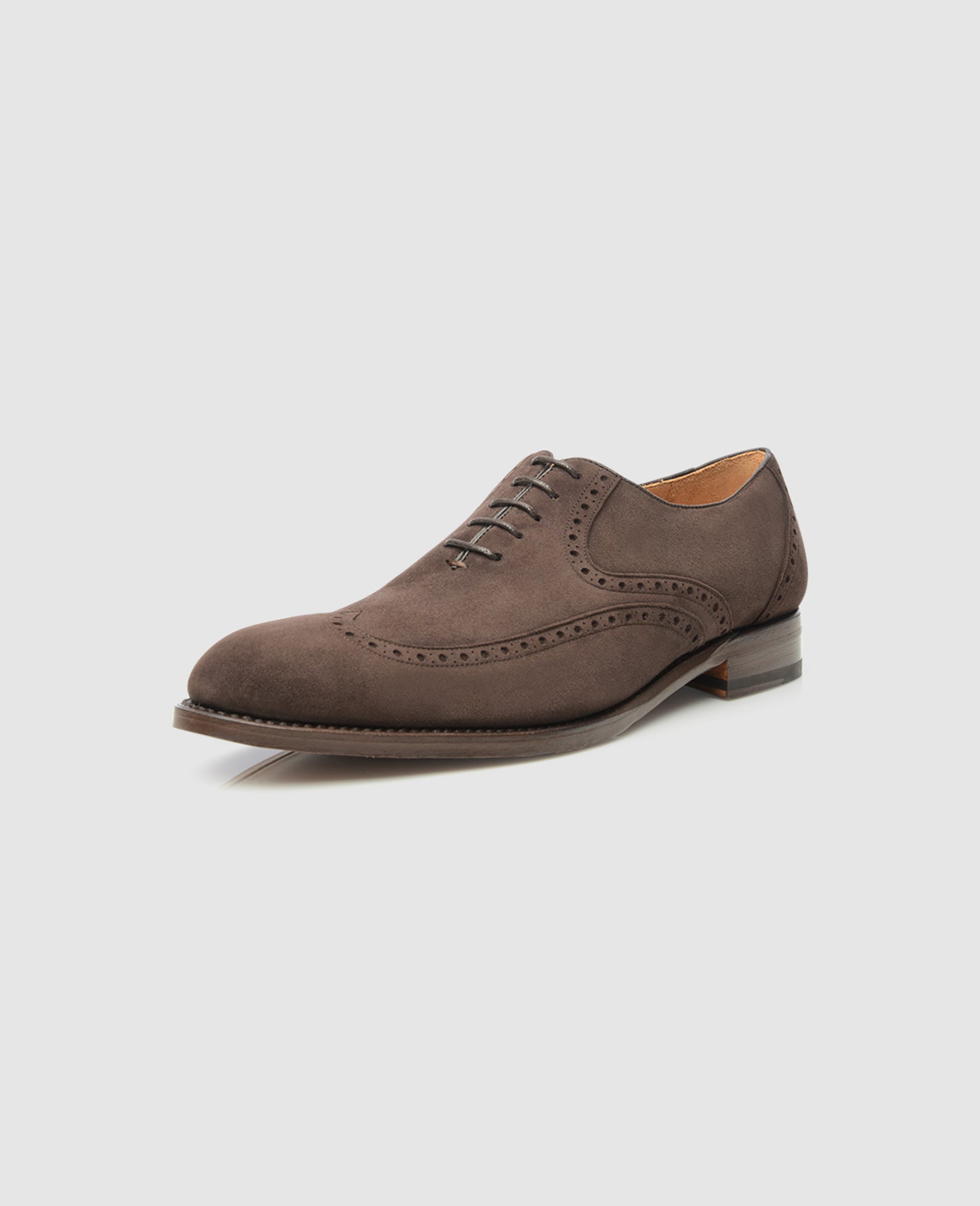 Made from finest velours leather, our No. 576 is a dark brown full-brogue Oxford. This most elegant men’s shoe boasts a fine suede touch and stylish Broguings, making for an unforgettable appearance.