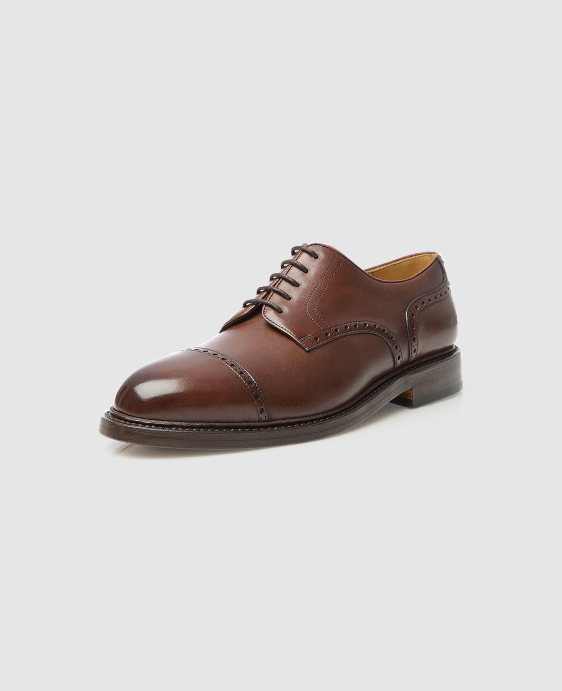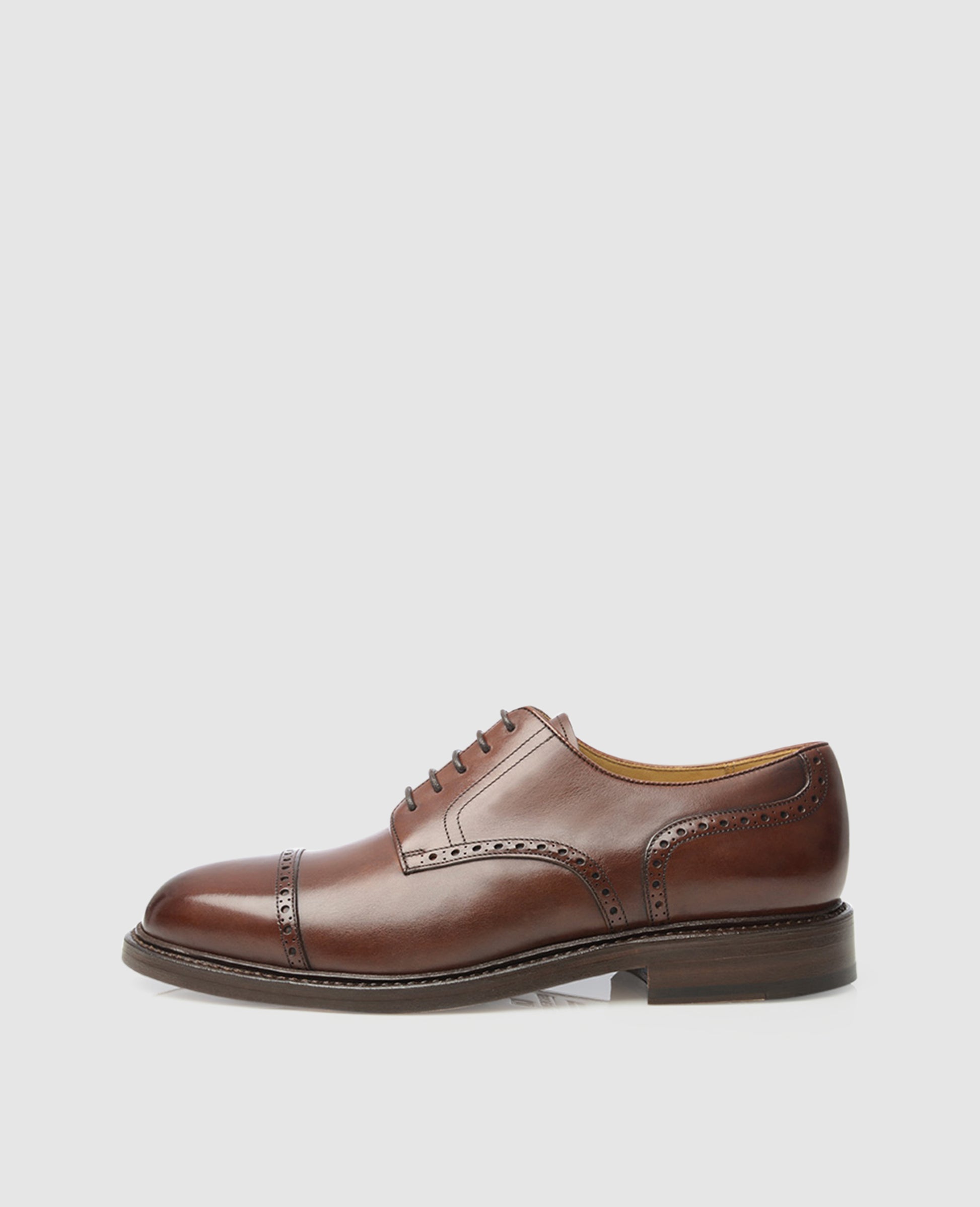 For a long time brown footwear was shunned “in town” and only suitable for country dwellers. Today the rule “no brown in town” has fortunately waned and brown shoes are an indispensable part of any gentleman’s wardrobe. Our No. 598 is a quarter-brogue Derby in dark brown with a double Rendenbach outsole. The fine perforations along the seams are something rarely seen and ensure a modern touch.