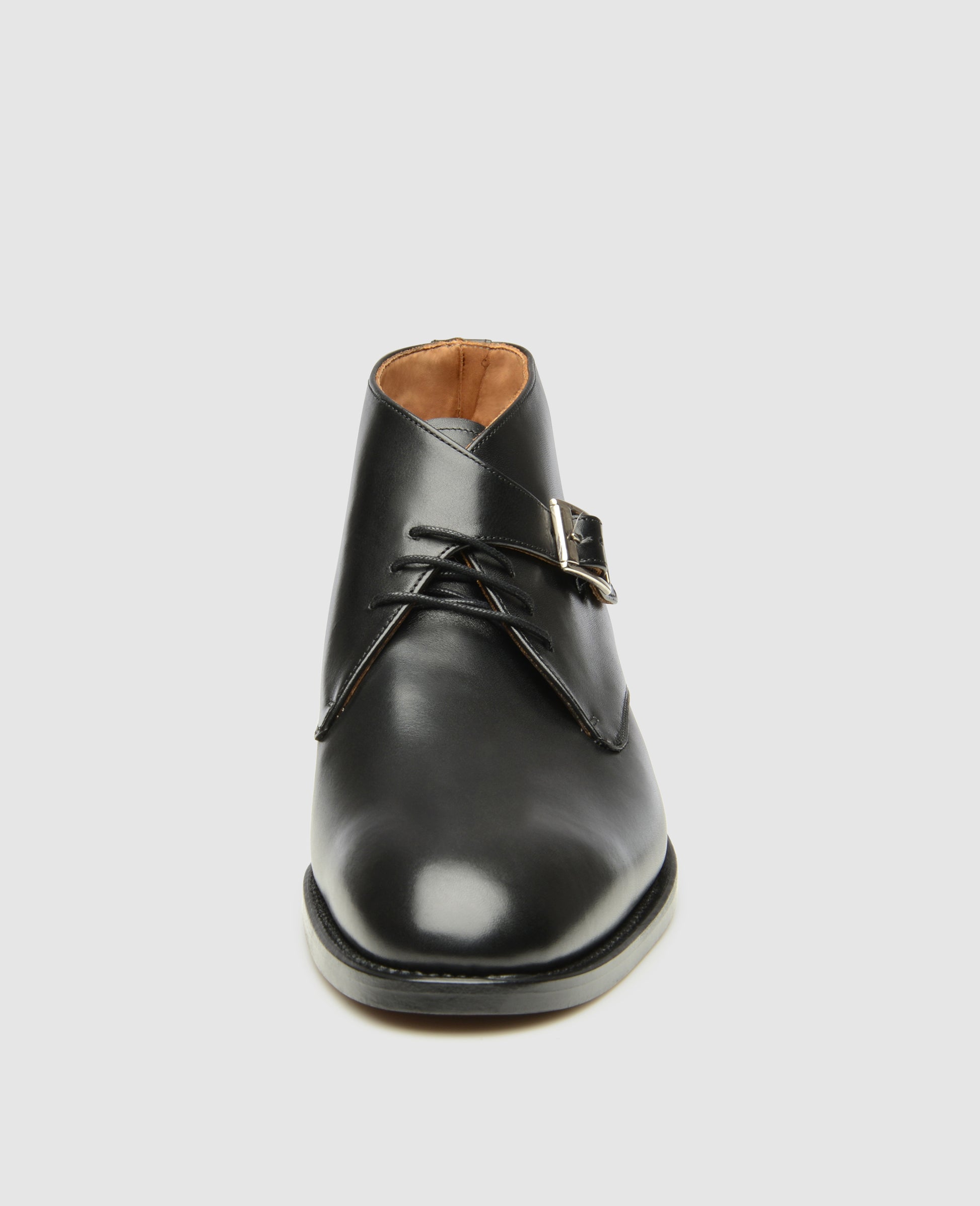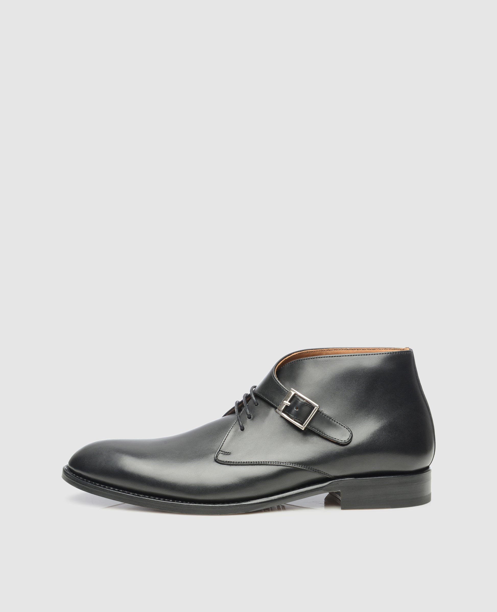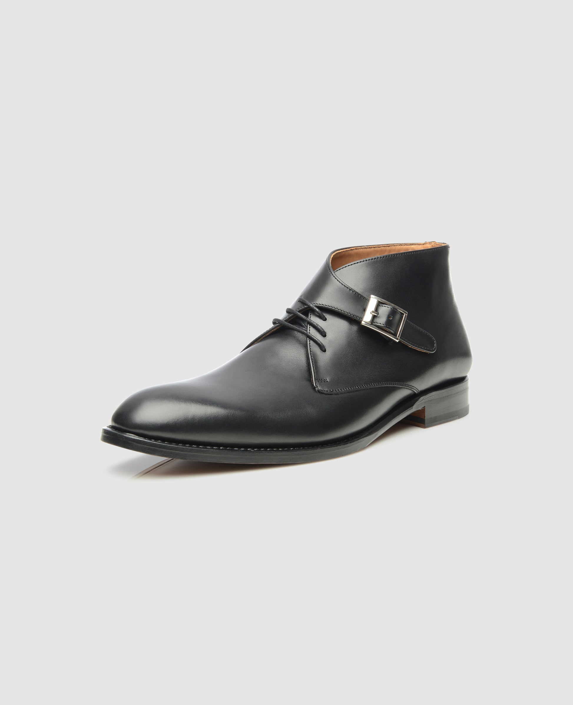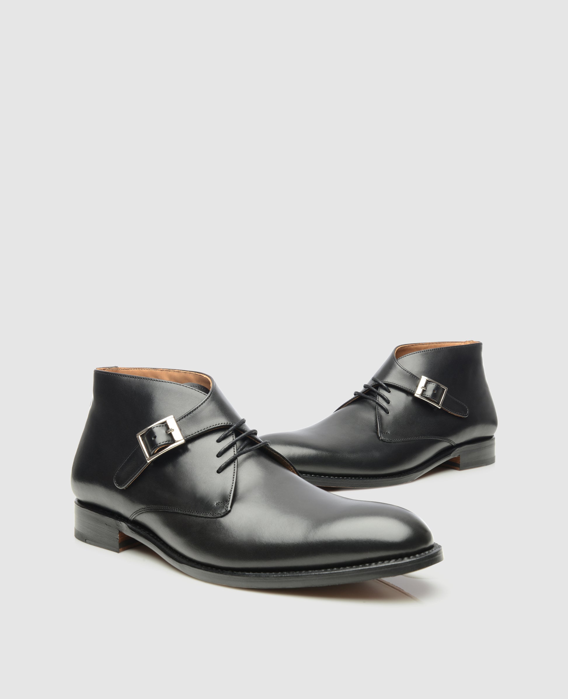 Our 605 is a contemporary interpretation of the much-loved George Boot. Contrary to the original, which was developed by King George VI and General George Le Fèvre-Payne to modernize the British soldiers’ appearance, our black buckle boot boasts an elegant leather strap and a silver metal buckle – on top of the traditional three-eye lace closure.