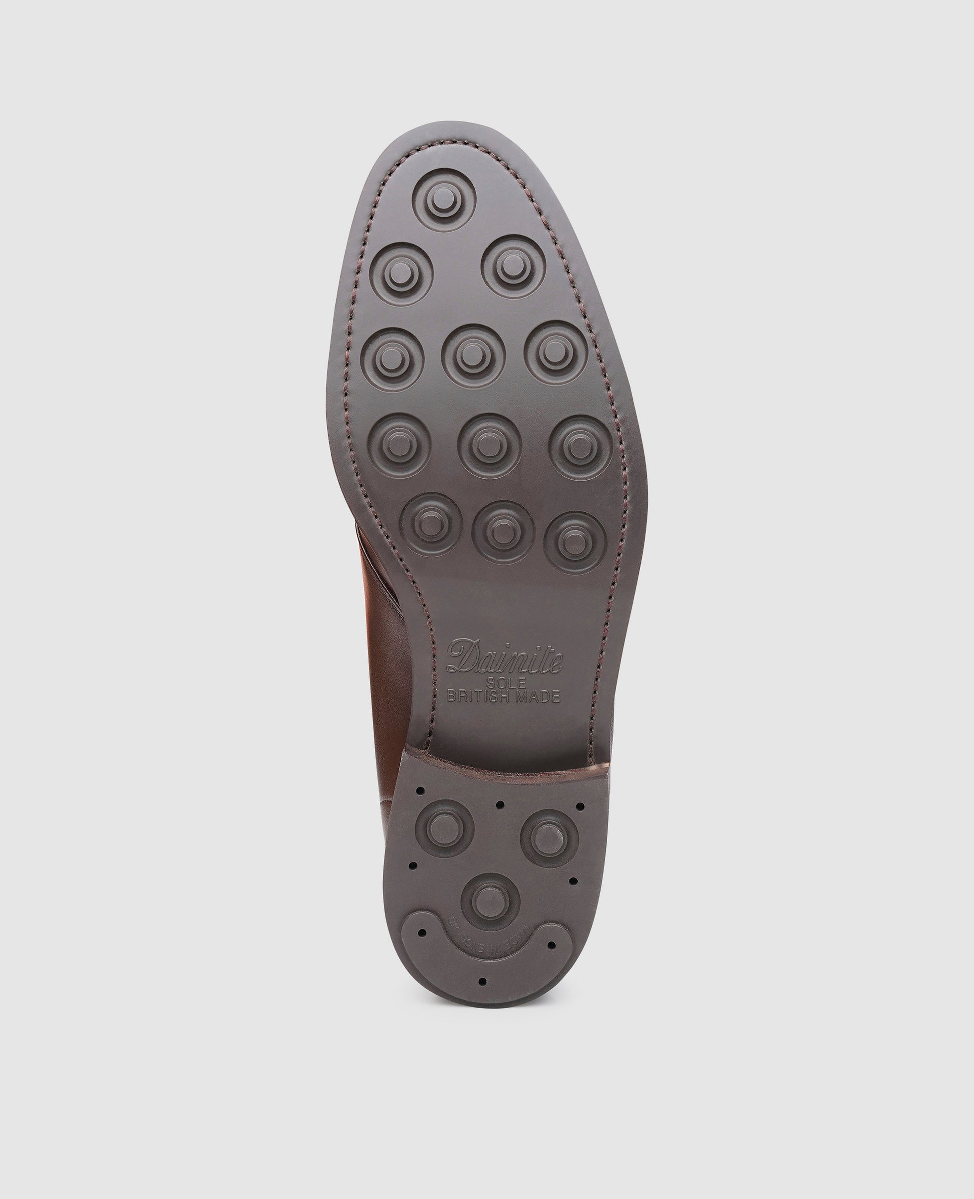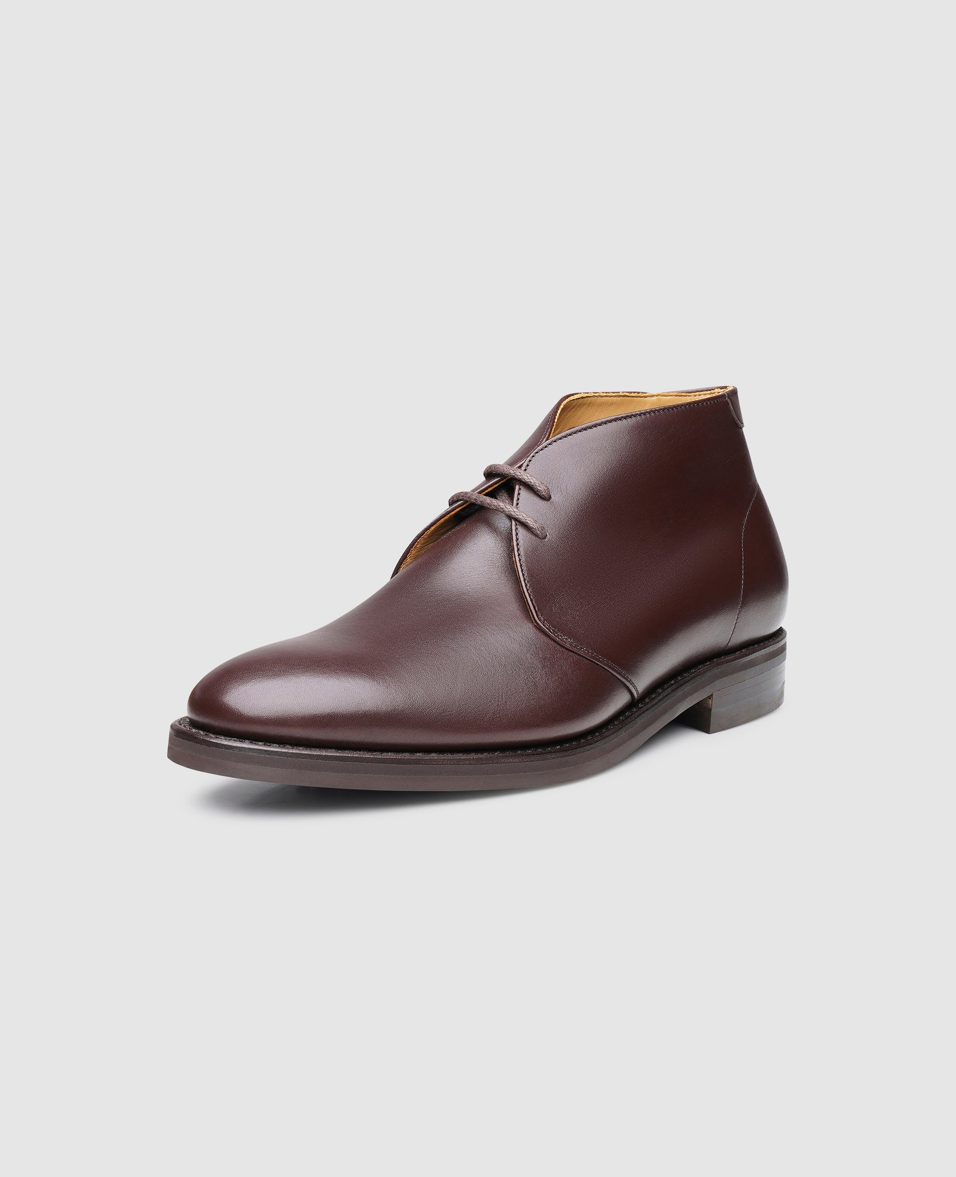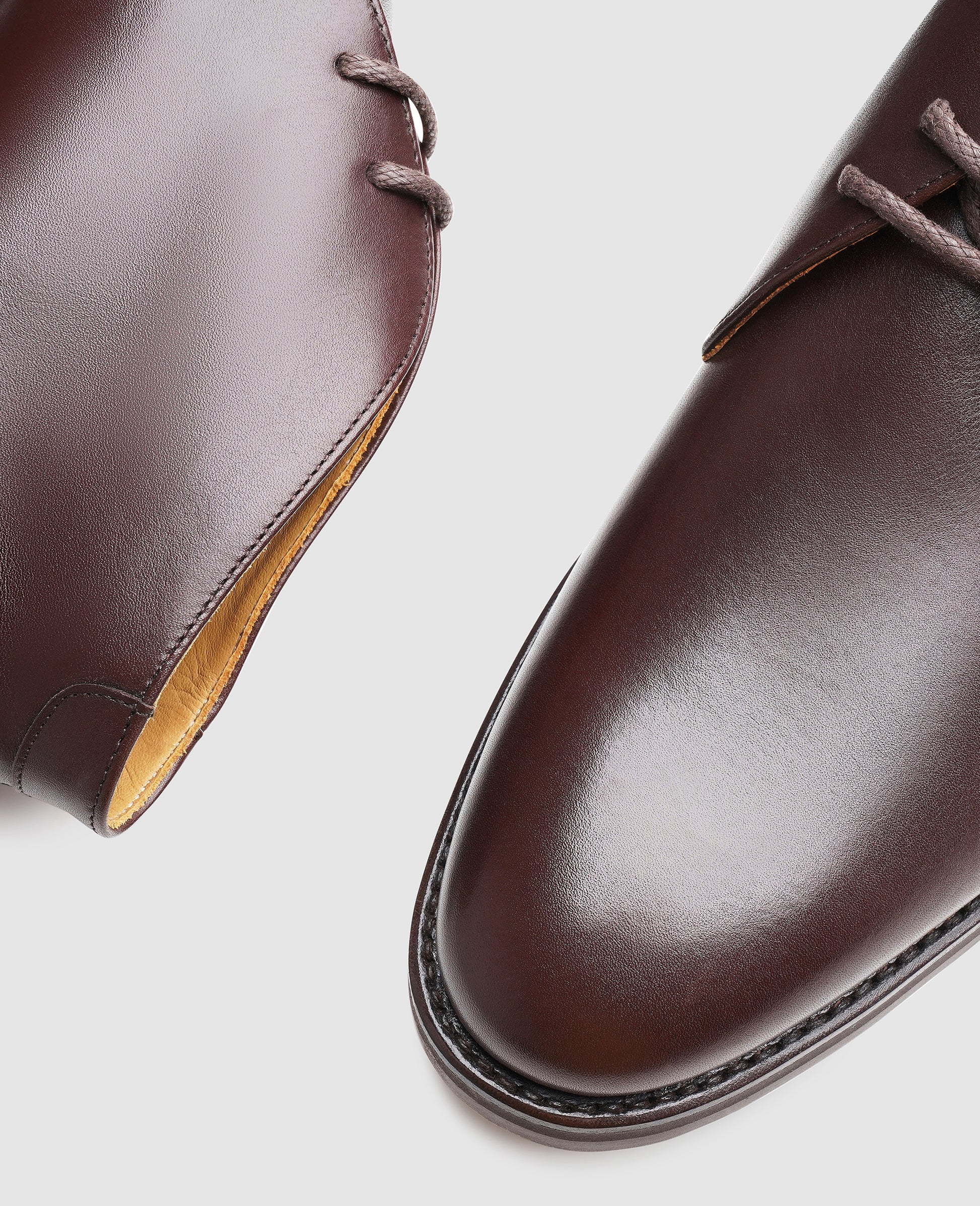 Like all of our classic men’s shoes, this dark brown Chukka boot is also created using the Goodyear welting production method in our Spanish factory. Its shaft consists of shiny, supple dark brown calfskin from France. Meanwhile, its lining and insole are made from premium cowhide, which make this handcrafted men’s ankle boot naturally breathable and flexible. A Dainite sole provides additional protection for shoe and wearer alike. This sole is abrasion-resistant and therefore remarkably durable, and prevents moisture and cold from penetrating the shoe.
