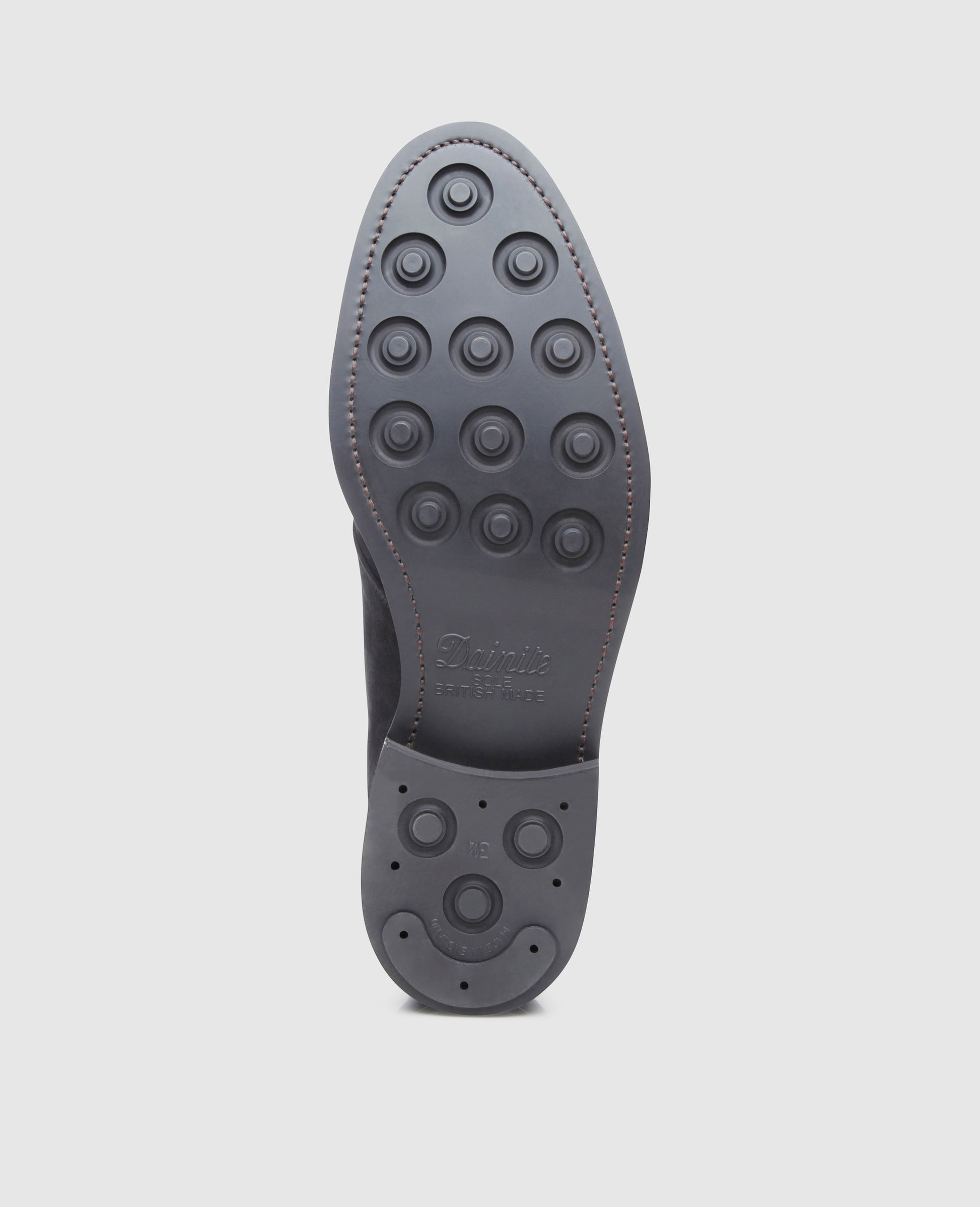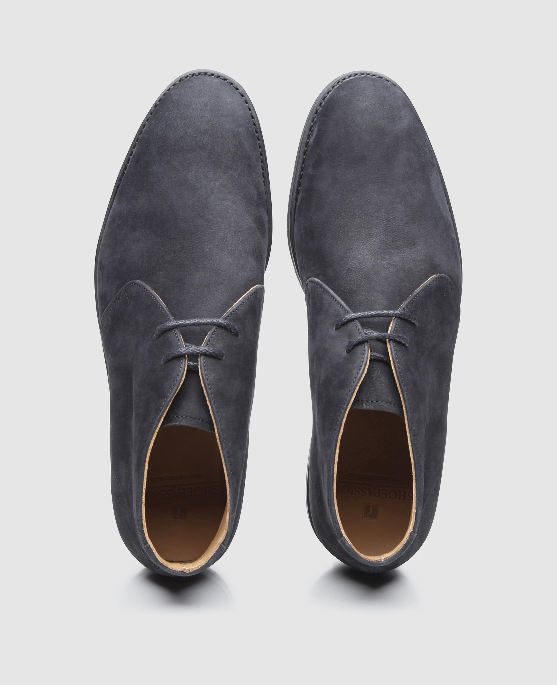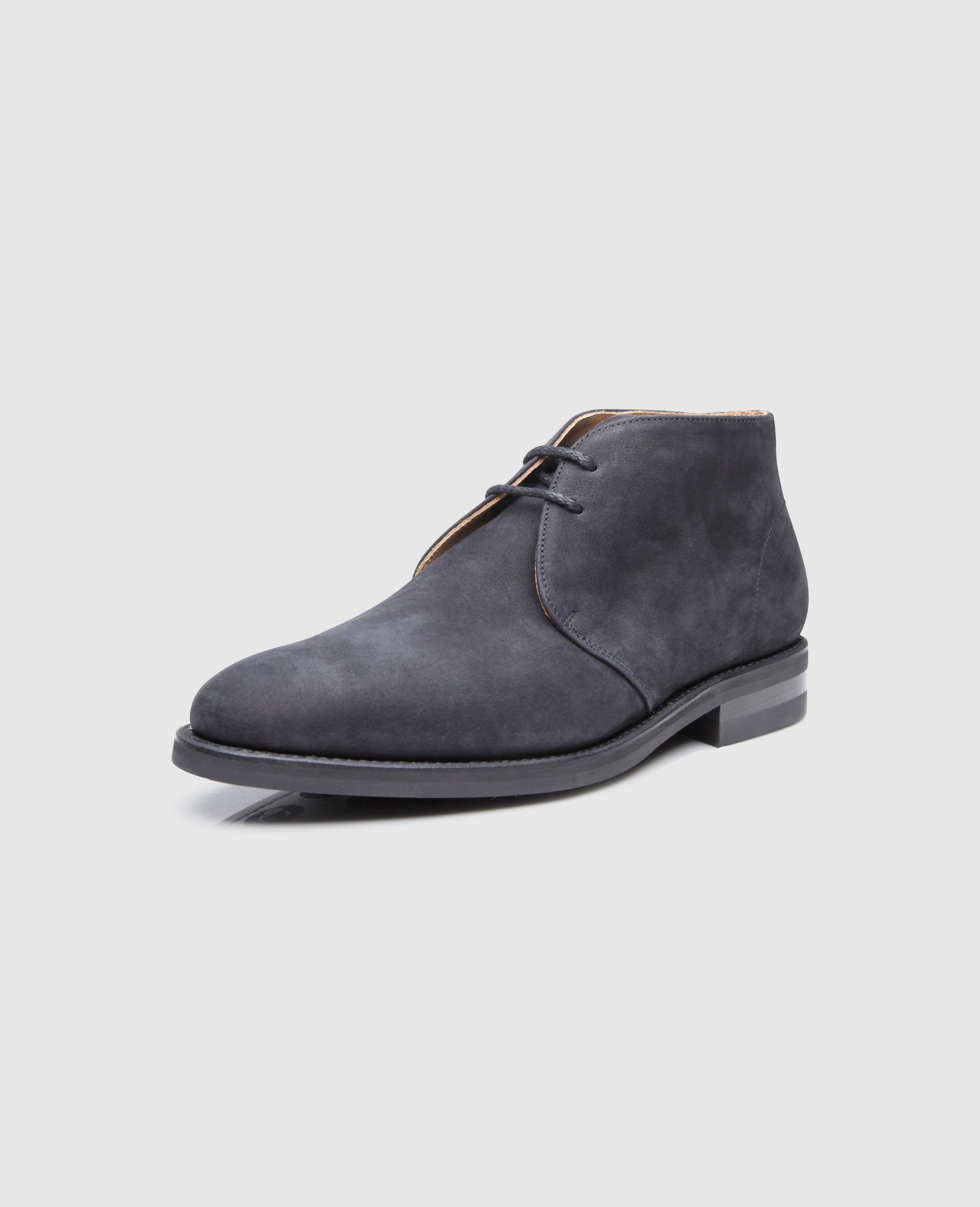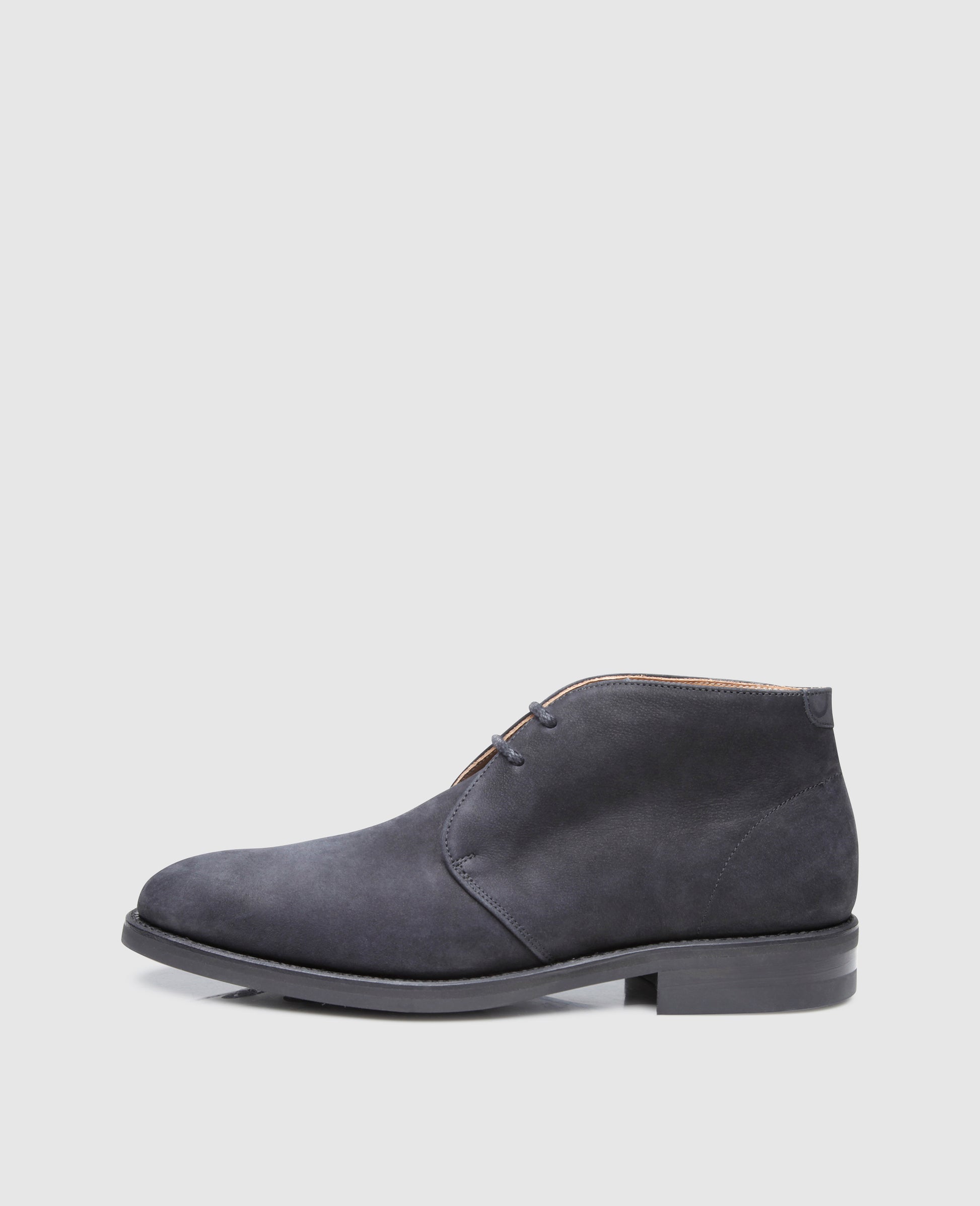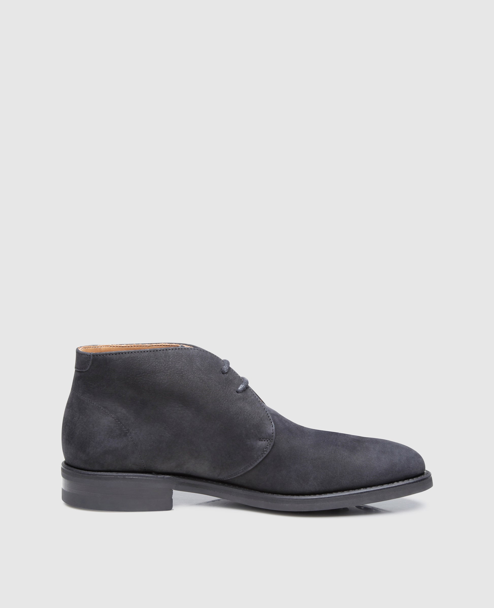 No. 614 is a plain ankle boot cloaked in black nubuck and decorated only with traditional open two-eyelet lacing and top sections. Built on a classic last by master shoemakers in our Spanish factory, this Goodyear-welted Chukka boot for men is a versatile shoe, both style-wise and from a functional perspective.