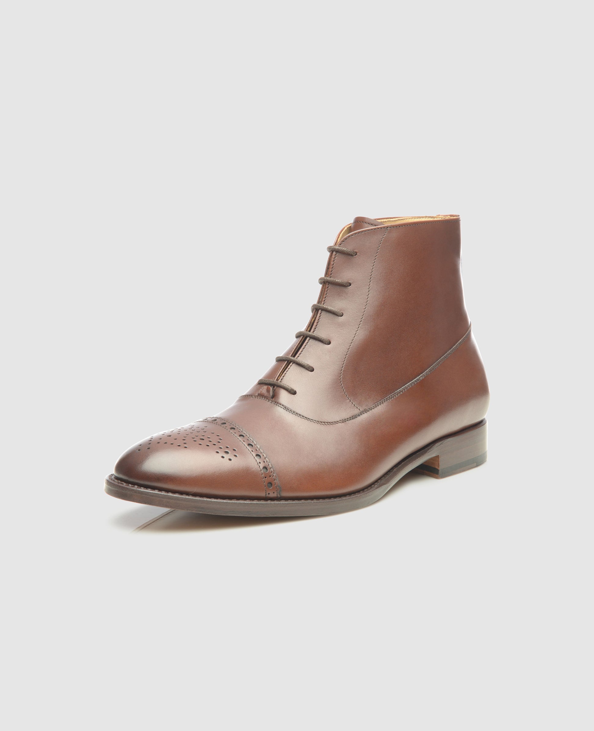 George “Beau” Brummel, a famous dandy and style icon at the turn of the 19th century, loved to wear classic ankle boots—according to legend, Brummell was so taken with them that he polished them with champagne. This lace-up boot in dark brown represents a nod to traditional design.