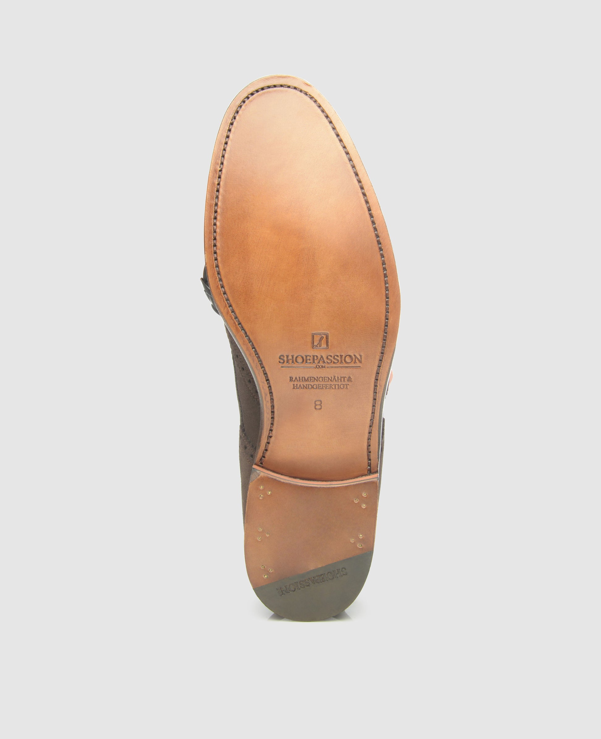 Although rough leather shoes traditionally exude a certain sportiness, No. 635 does not have to be reserved for leisure activities. When it comes to casual workplaces, this Goodyear-welted, full-brogue Derby boot in dark brown poses a charming and welcome alternative to classic smooth leather shoes.
