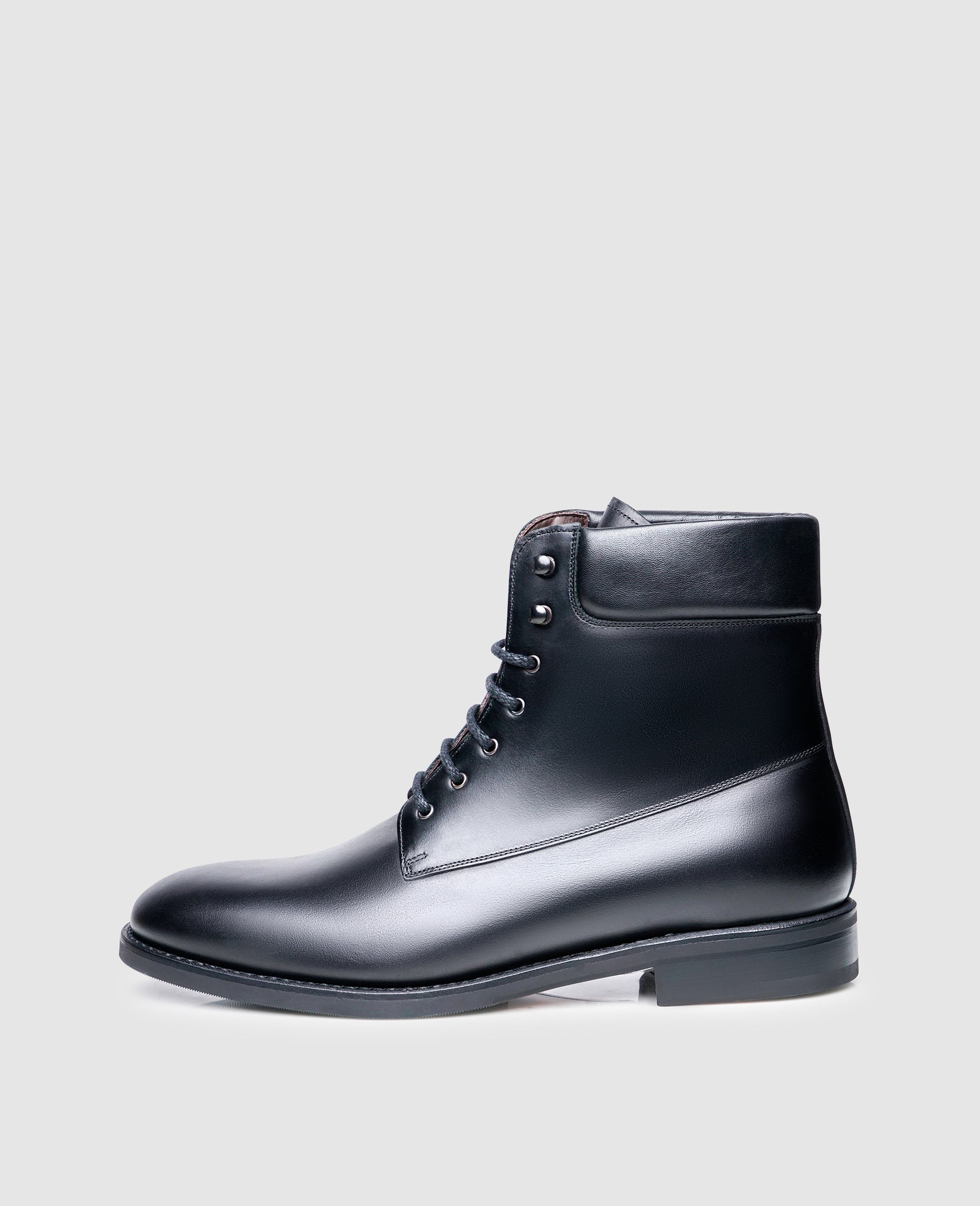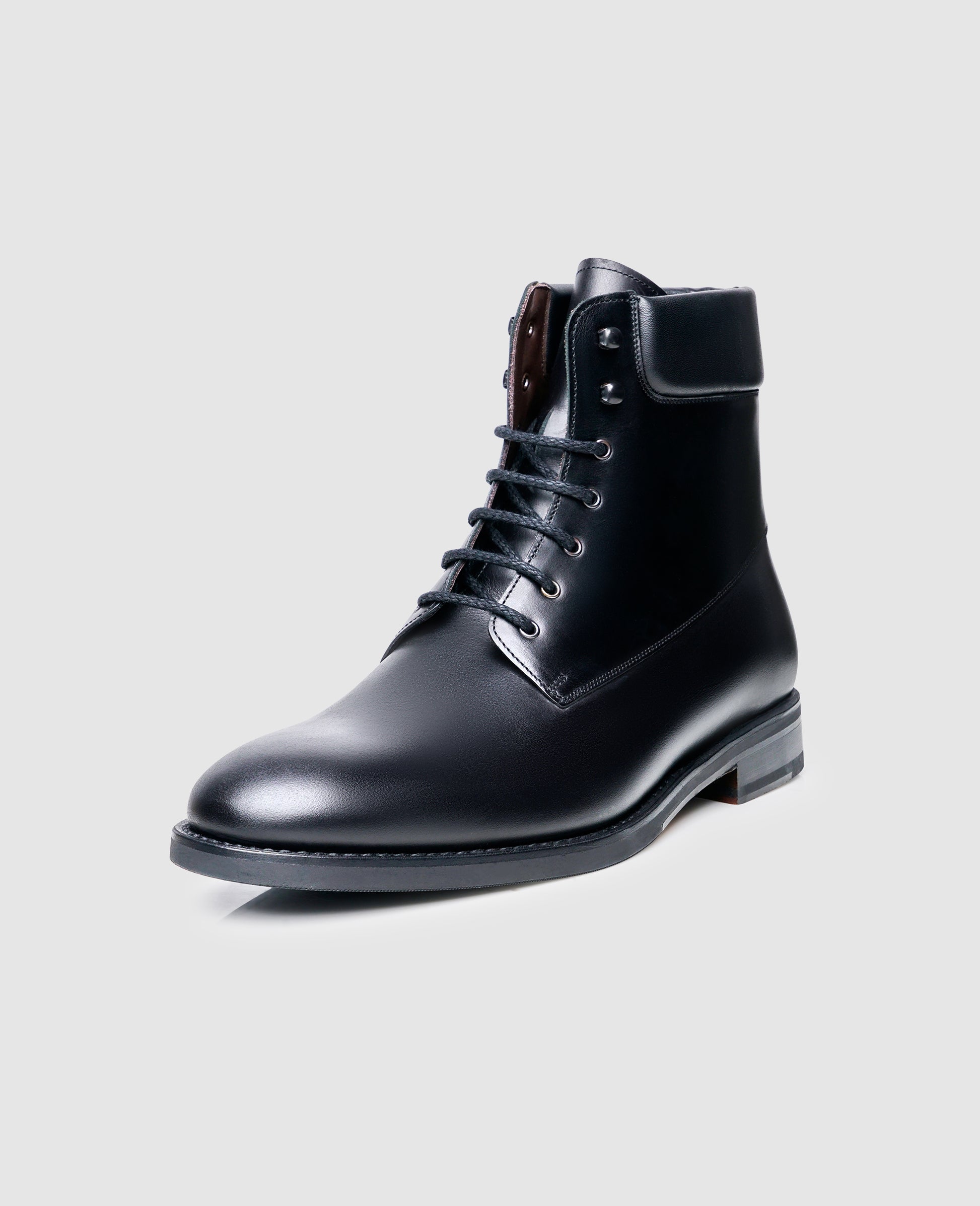 This model combines a tasteful visual appearance with weather-resistant qualities. The Box Calf used has been treated with oil to increase its resistance to moisture. The rubber outsole with its leather insert offers a secure grip on wet surfaces. The padded opening at the top of the shaft, as well as the high reaching hook-eye combination, are also characteristic features.