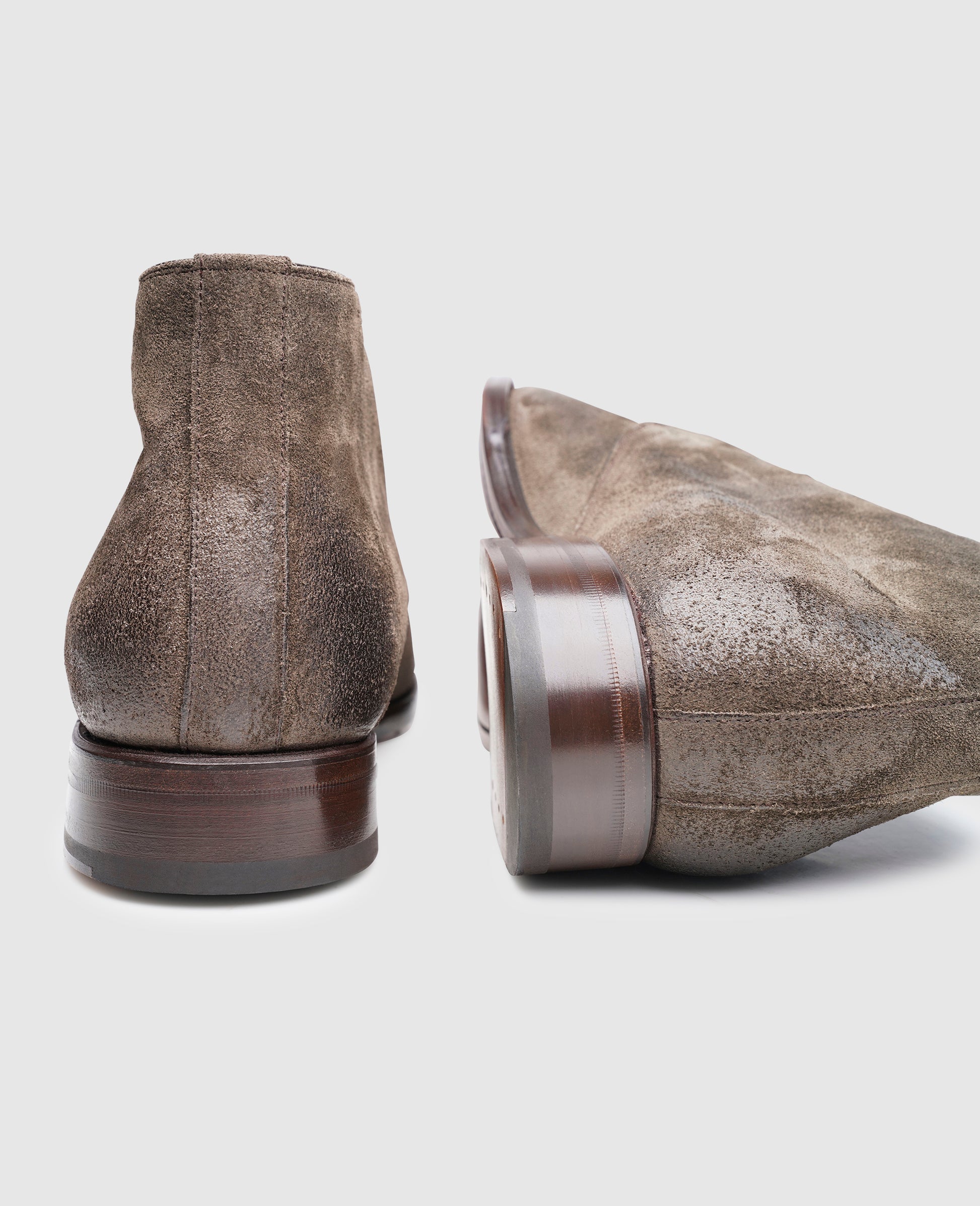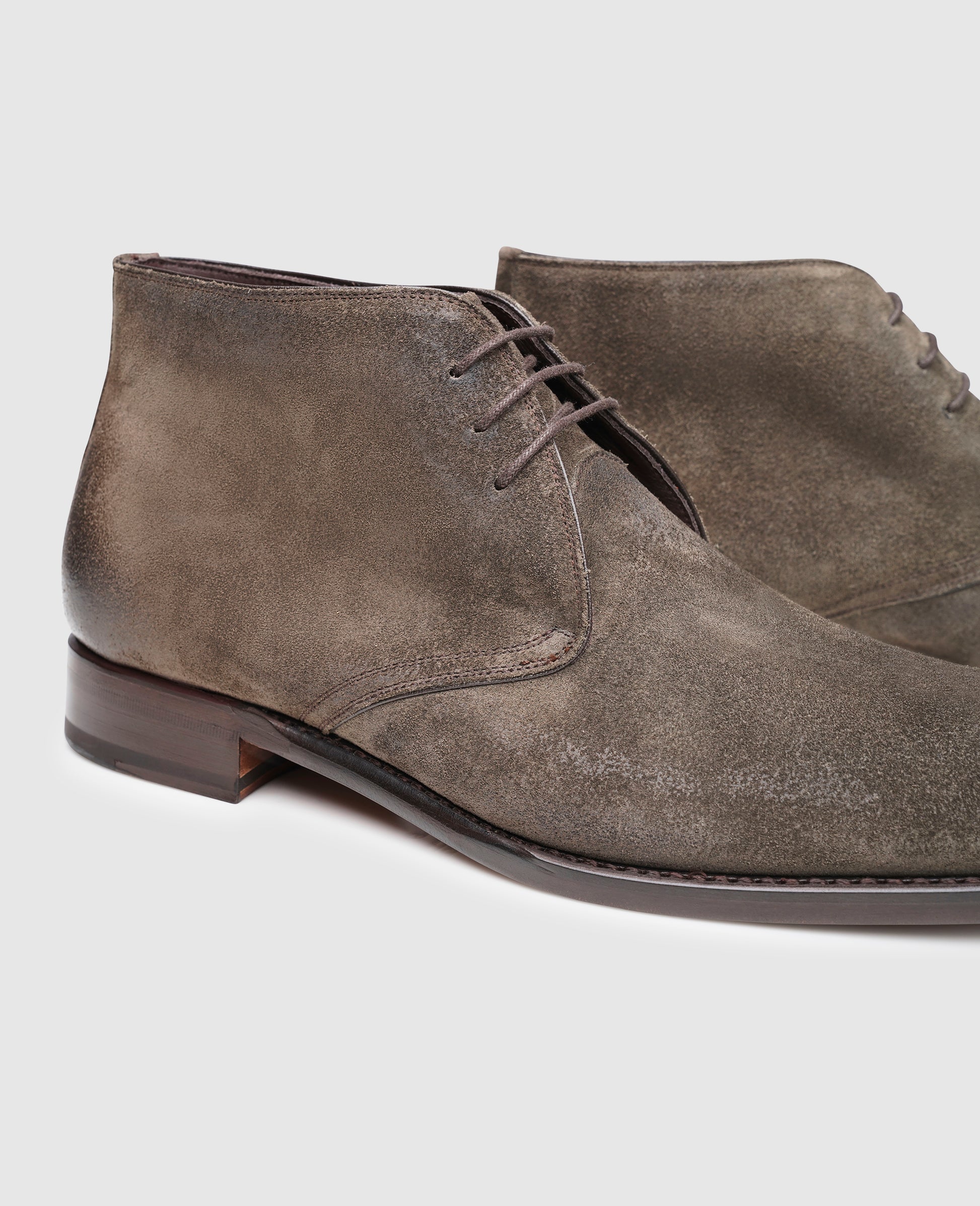 This handcrafted Chukka boot offers a very traditional look! Initially, the model was made almost exclusively of suede leather, before production with smooth leather began. For this special model, with its three-eyelet lacing, the decision was made to use velour, as it continues to lend the classic Chukka boot a certain lightness even today.