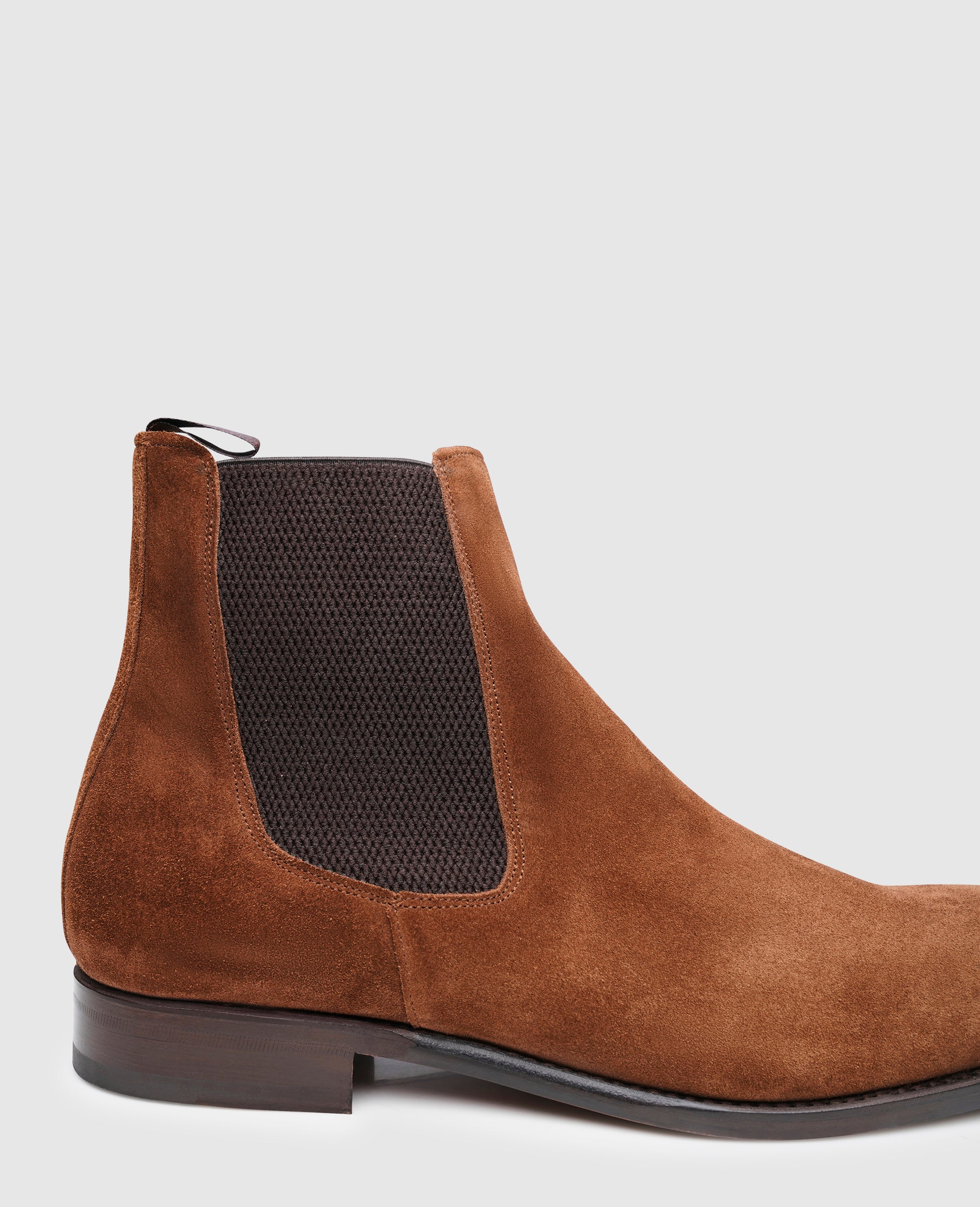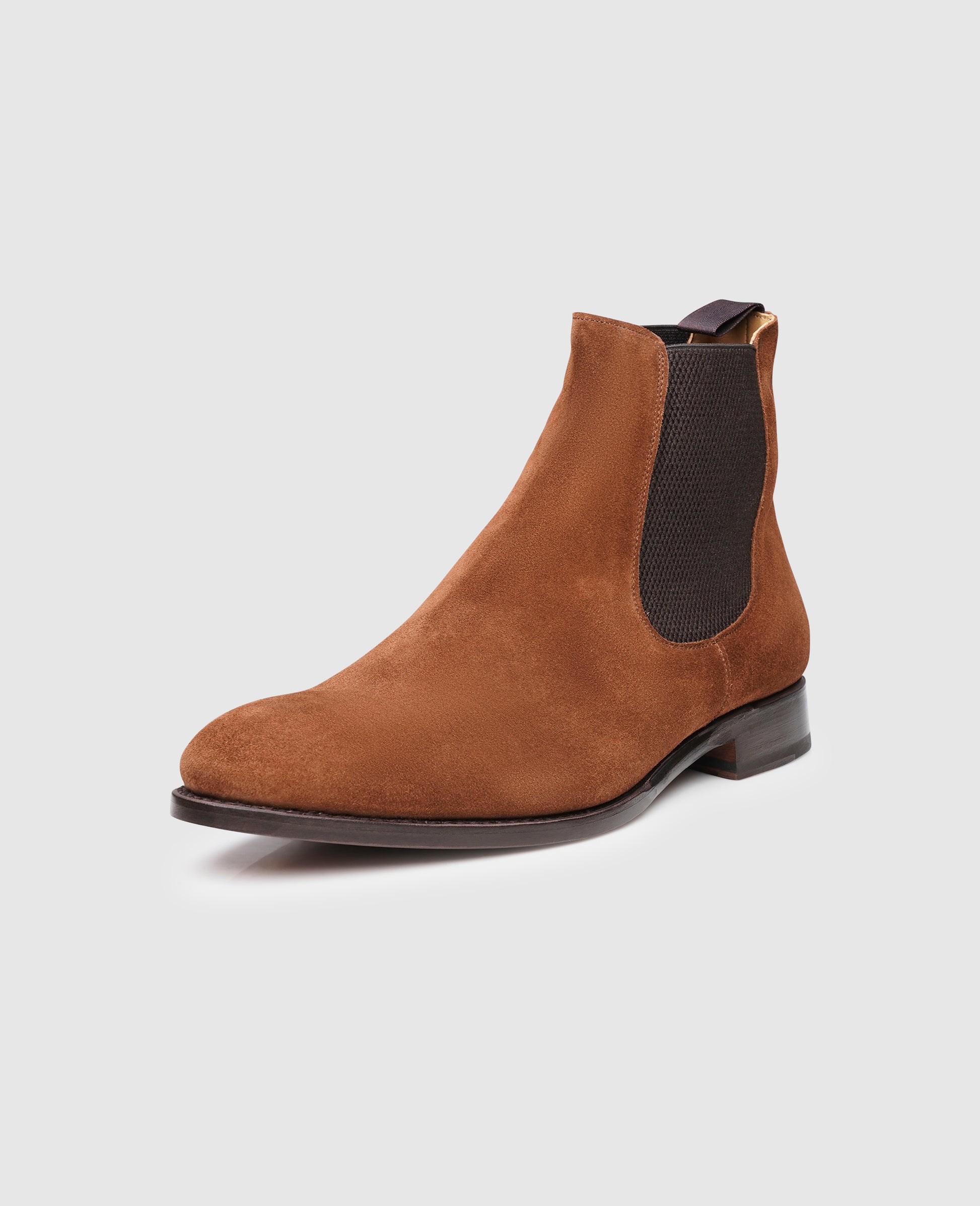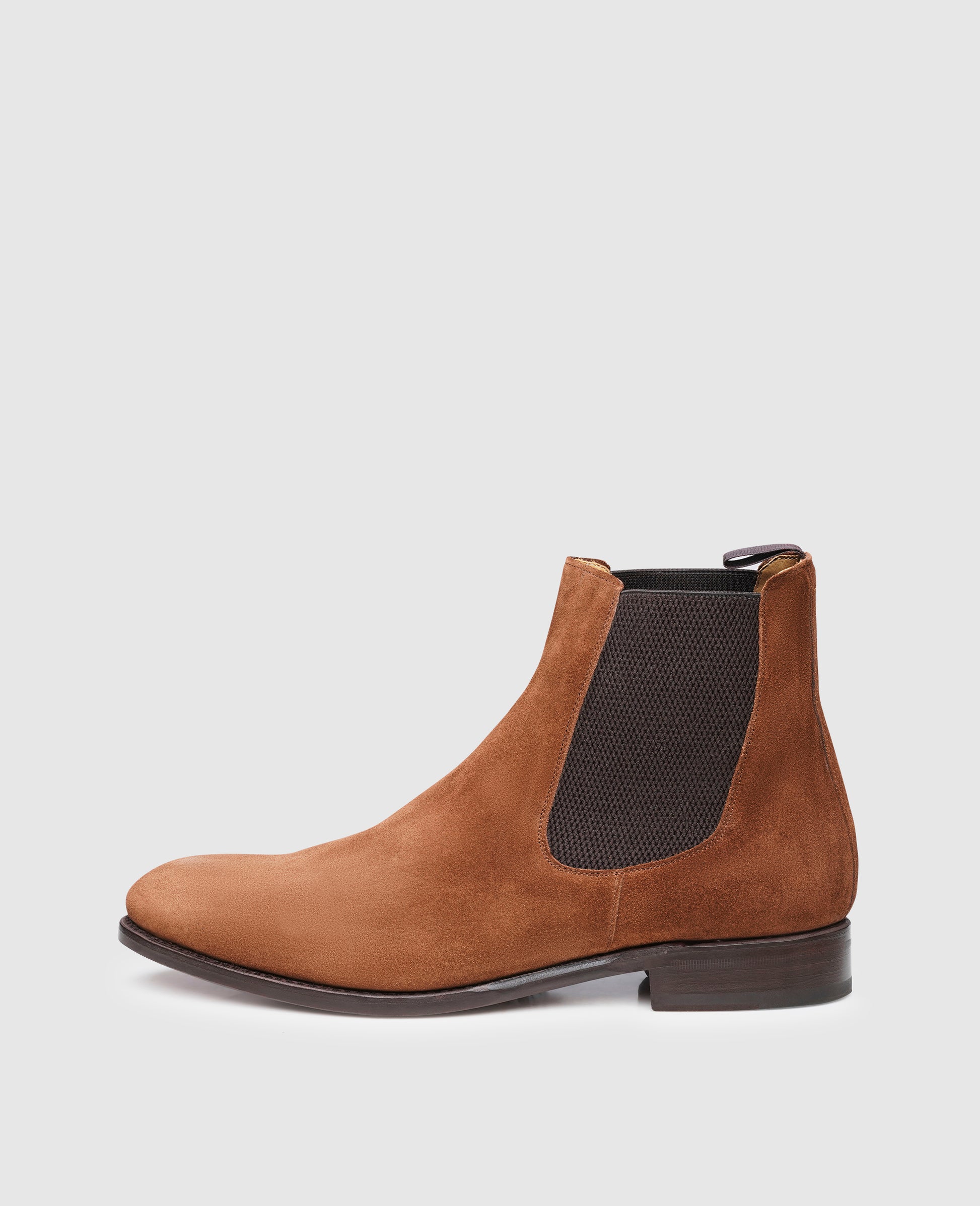 The Chelsea boot is considered to be one of the most traditional men's models, yet it now also appears in our collection as a modern companion. The choice of velour as upper leather, which exudes a casual lightness, creates a particularly special charm. The dynamic shape, which this Goodyear-welted boot receives thanks to its production on the Swiss last, completes the overall design of this slip-on boot.