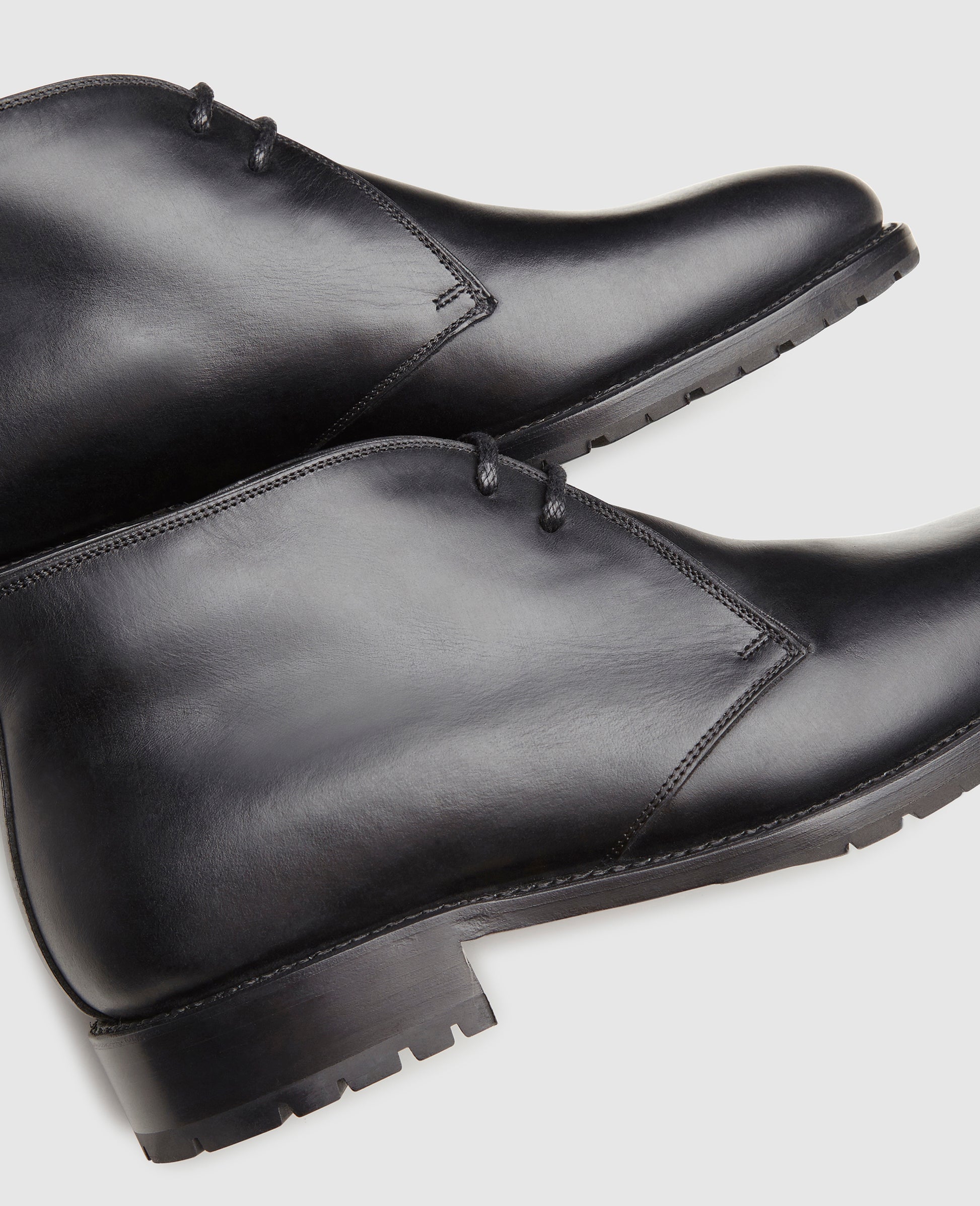 Men are able to enjoy the wintry elegance of this Goodyear-welted, handcrafted Chukka boot thanks to its classic Dainite rubber outsole. The oiled calfskin is impervious to the wet and snow, and the lined interior offers warmth and comfort for your feet.