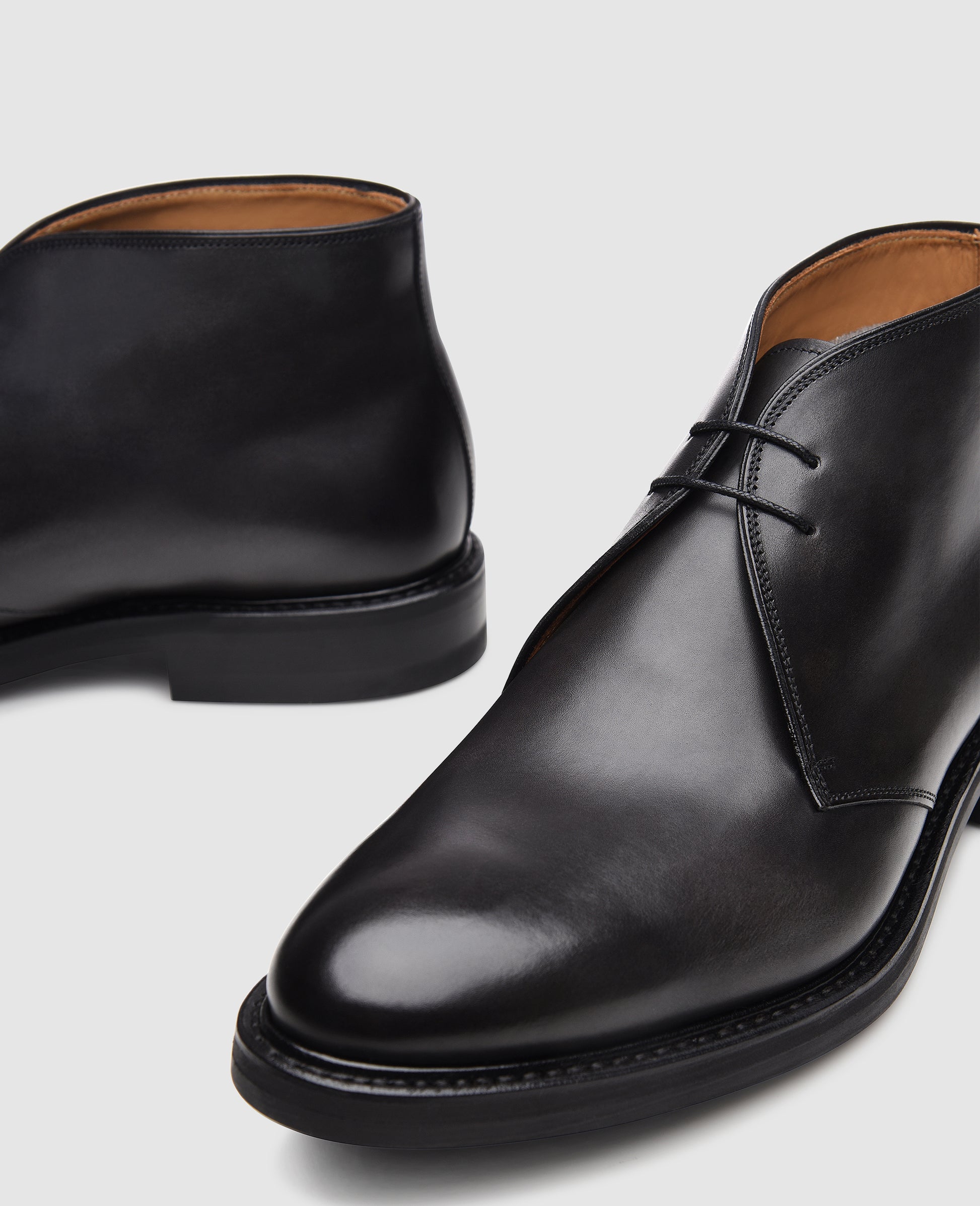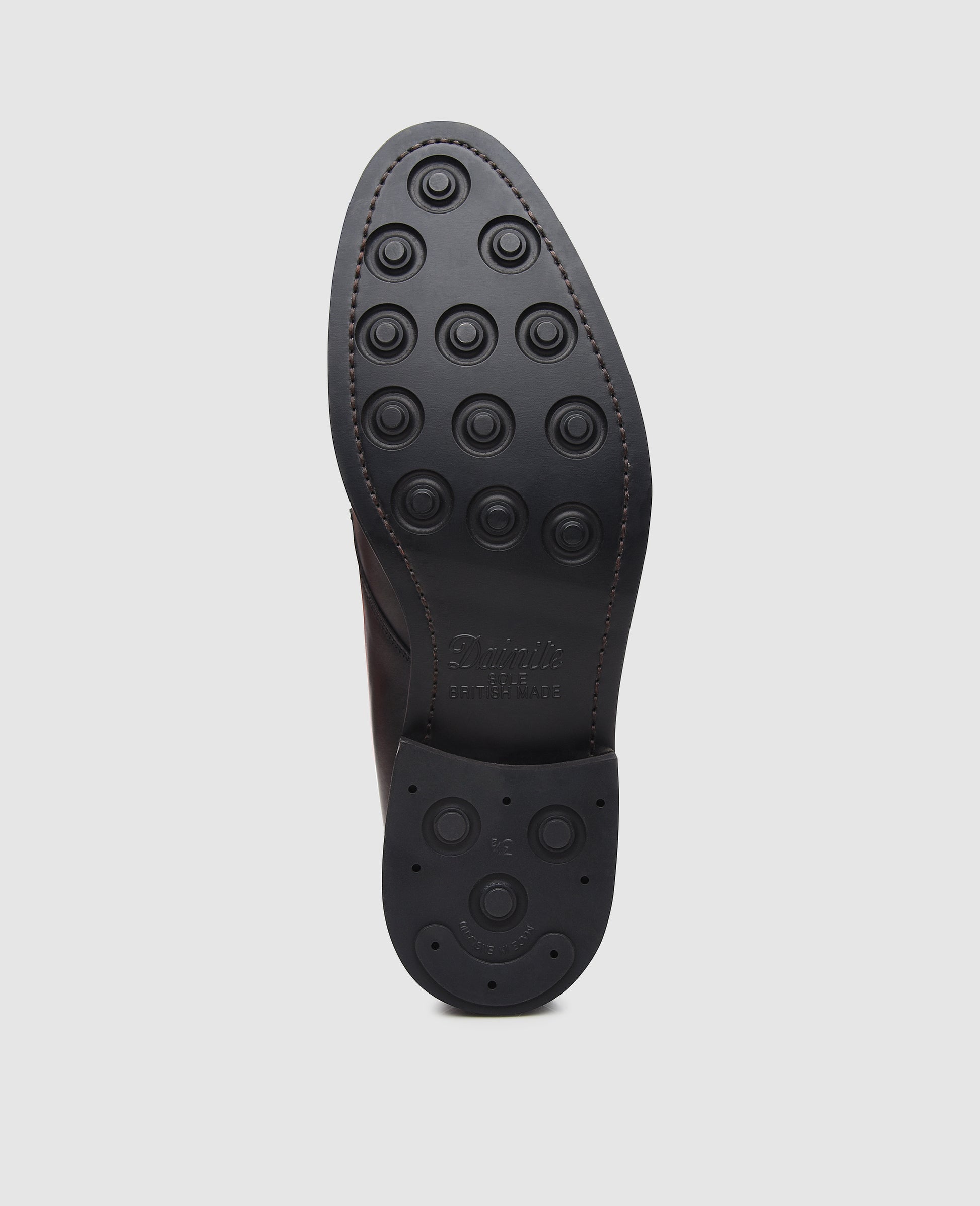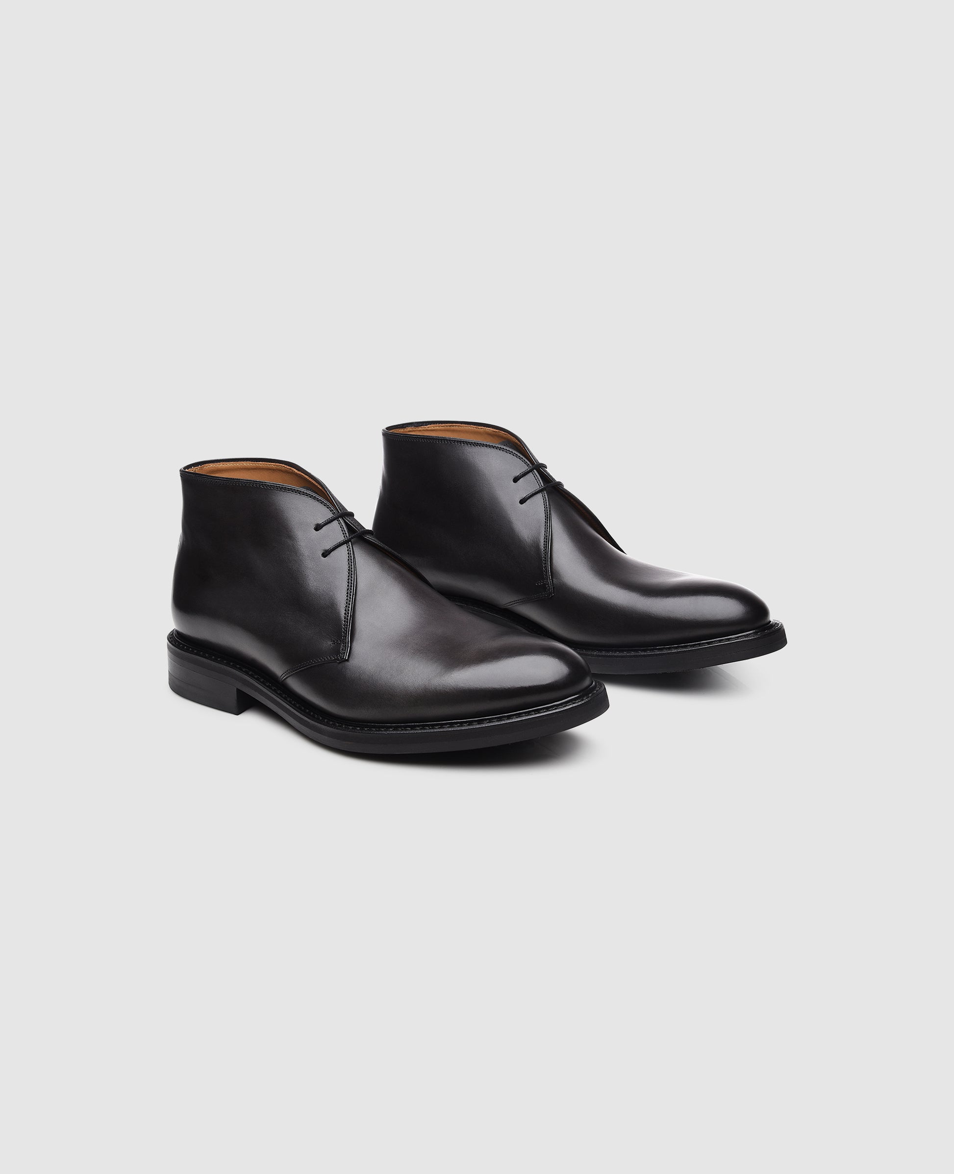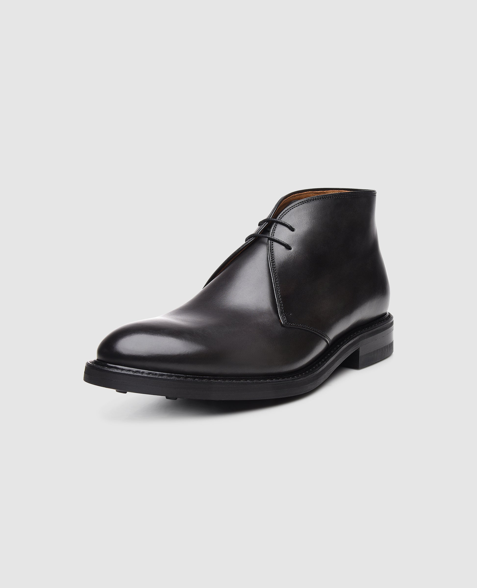 This British ankle boot in a classic Derby cut surprises with a playful hand finish. The smooth and supple calfskin has been finished in an elaborate procedure. This attention to detail results in the special color gradient on the shaft with its captivating light-dark shades. The open two-eyelet lacing and ankle-high shaft traditionally follow the popular design of the Chukka boot, with the durable Dainite rubber outsole offering stability in bad weather. With this robust rubber outsole underfoot, the wearer also masters wet and slippery conditions without problem.