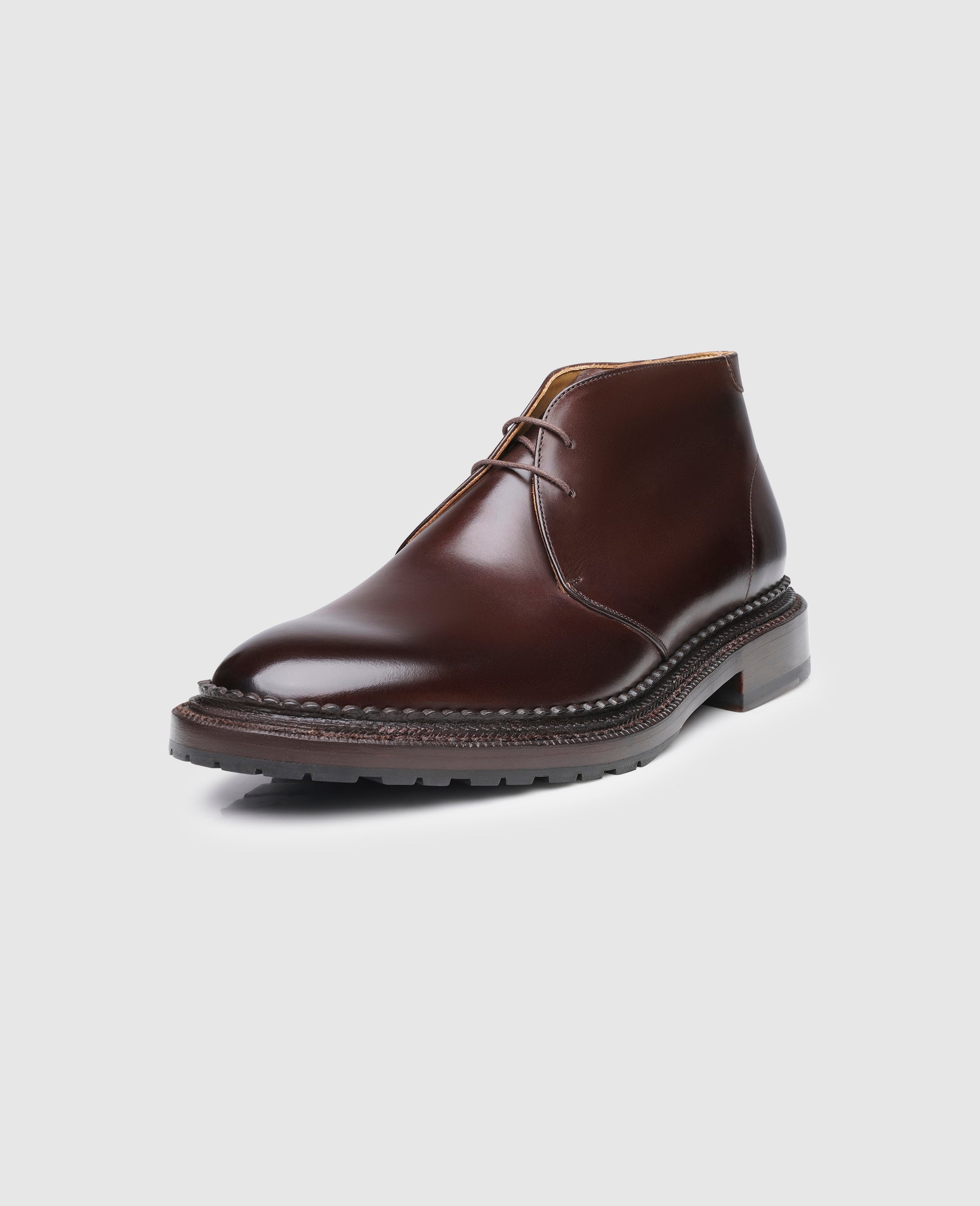 The shaft of this Chukka boot may be simple, but its exceptional features make it a real eye-catcher. The three welts that define the models in our "Triple Welt" collection are elaborately handcrafted before the shoe is assembled. The result is a powerful and robust looking ankle boot. This boot also impresses with its rugged design, thanks to the durable upper leather made from French calfskin and the half-rubber outsole in the forefoot area.
