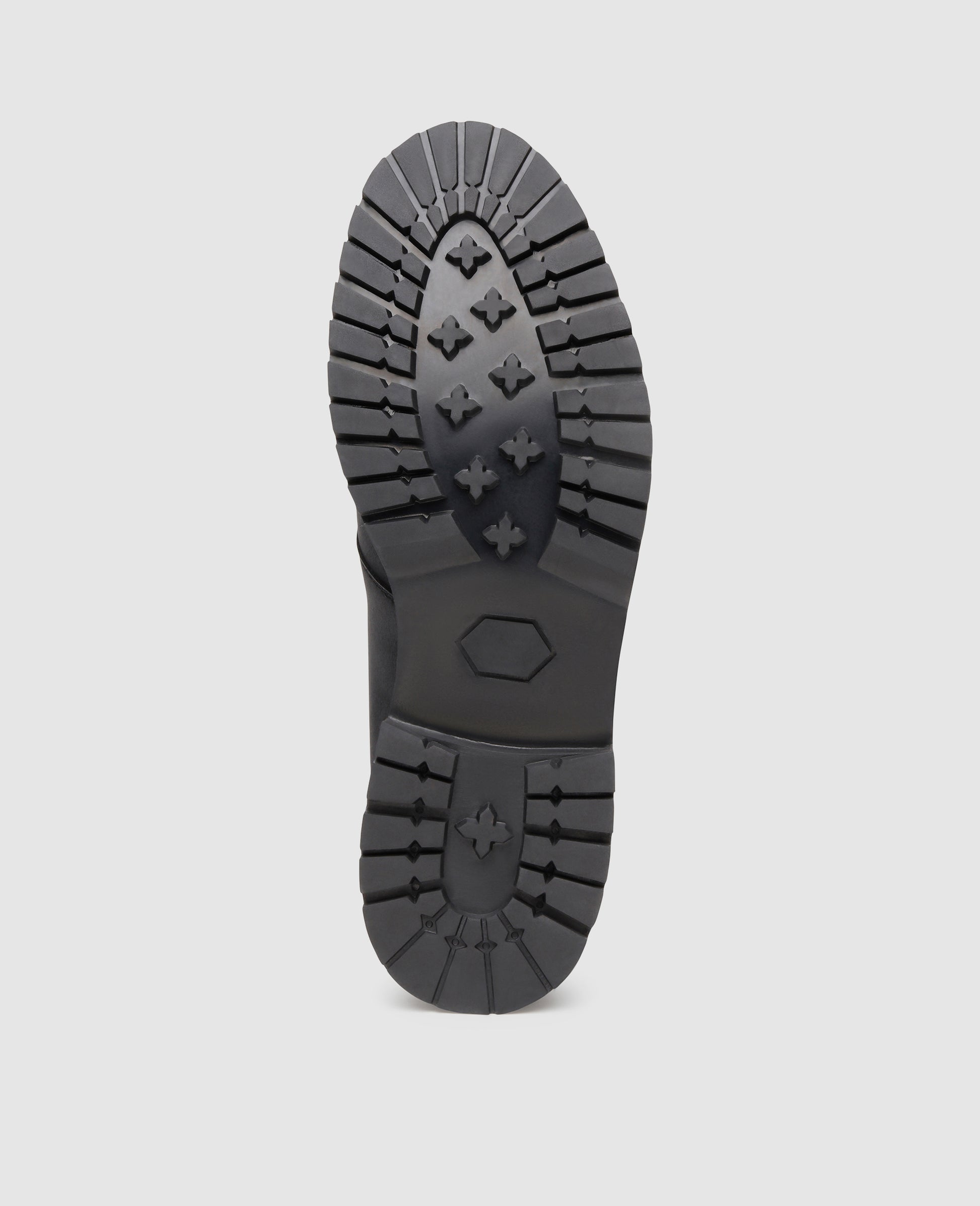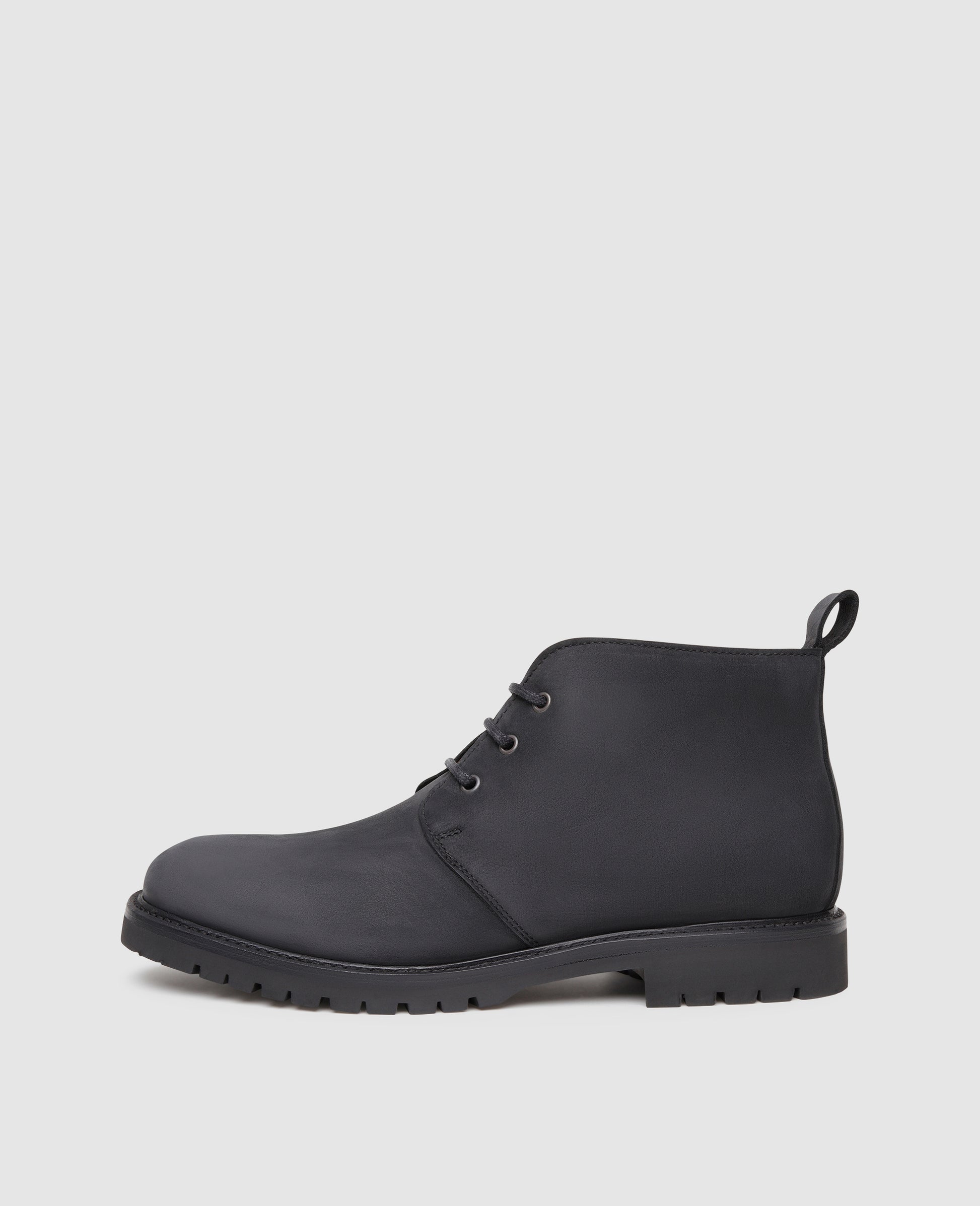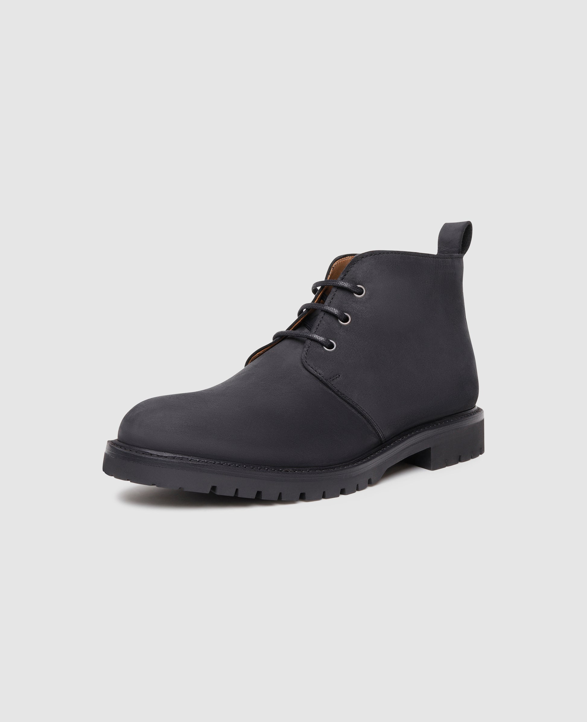 Weatherproof comfort and sophisticated looks are combined in our Goodyear-welted and handcrafted Chukka boot for men. The look of the water-repellent nubuck leather is gently relaxed by the open three-eyelet lacing, while a non-slip rubber lug tread and heat-retaining interior membrane allow Model No. 6625 to withstand even the most adverse weather conditions.