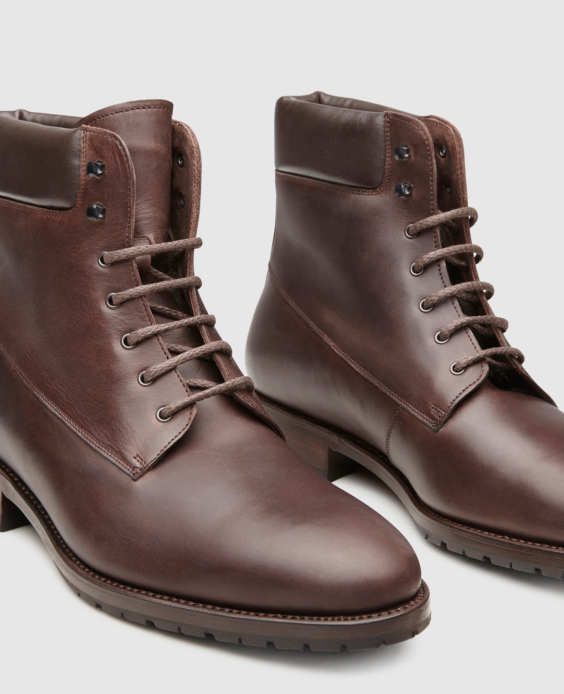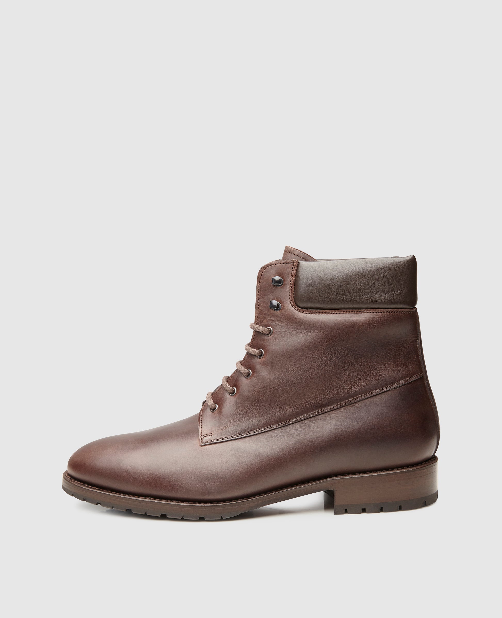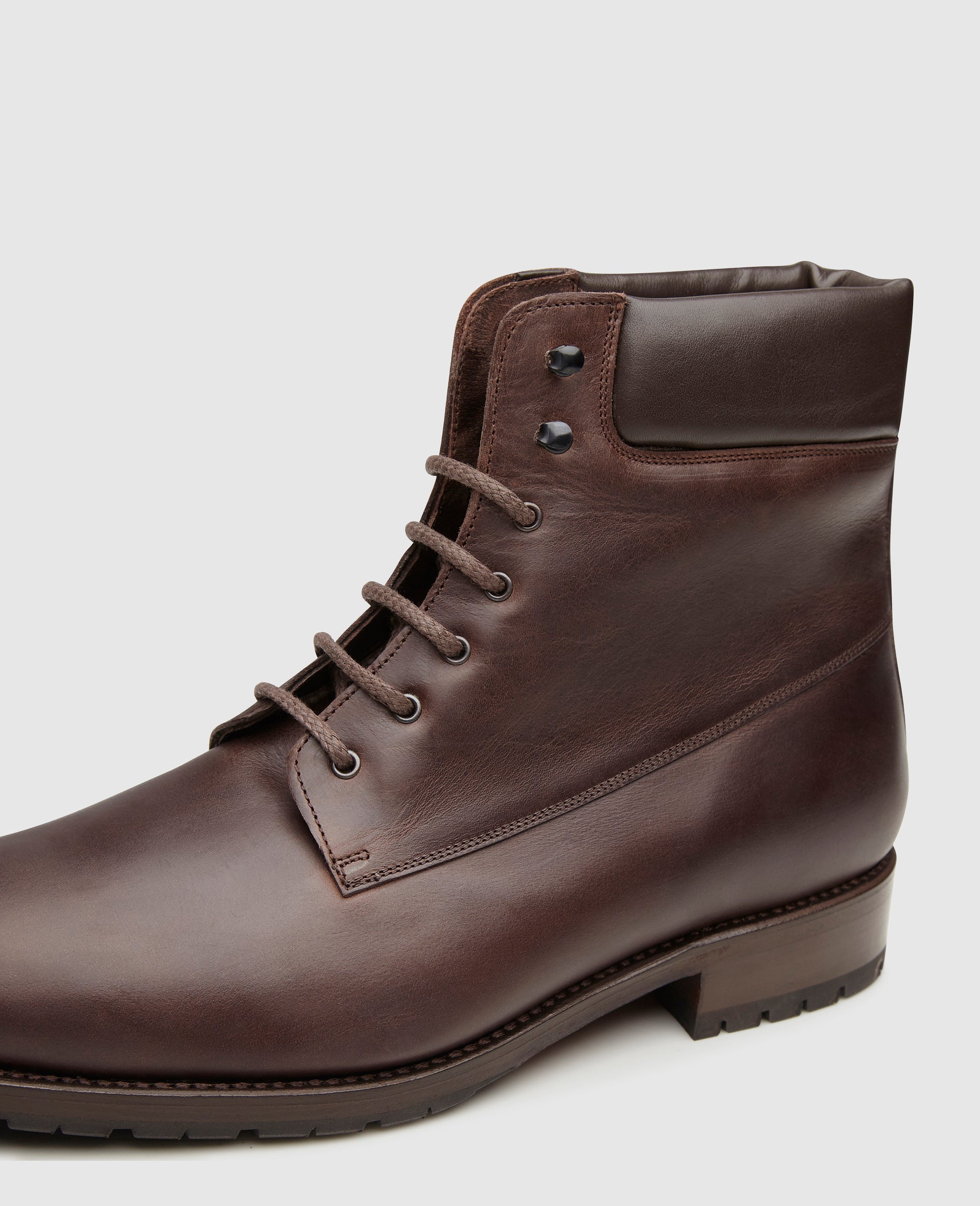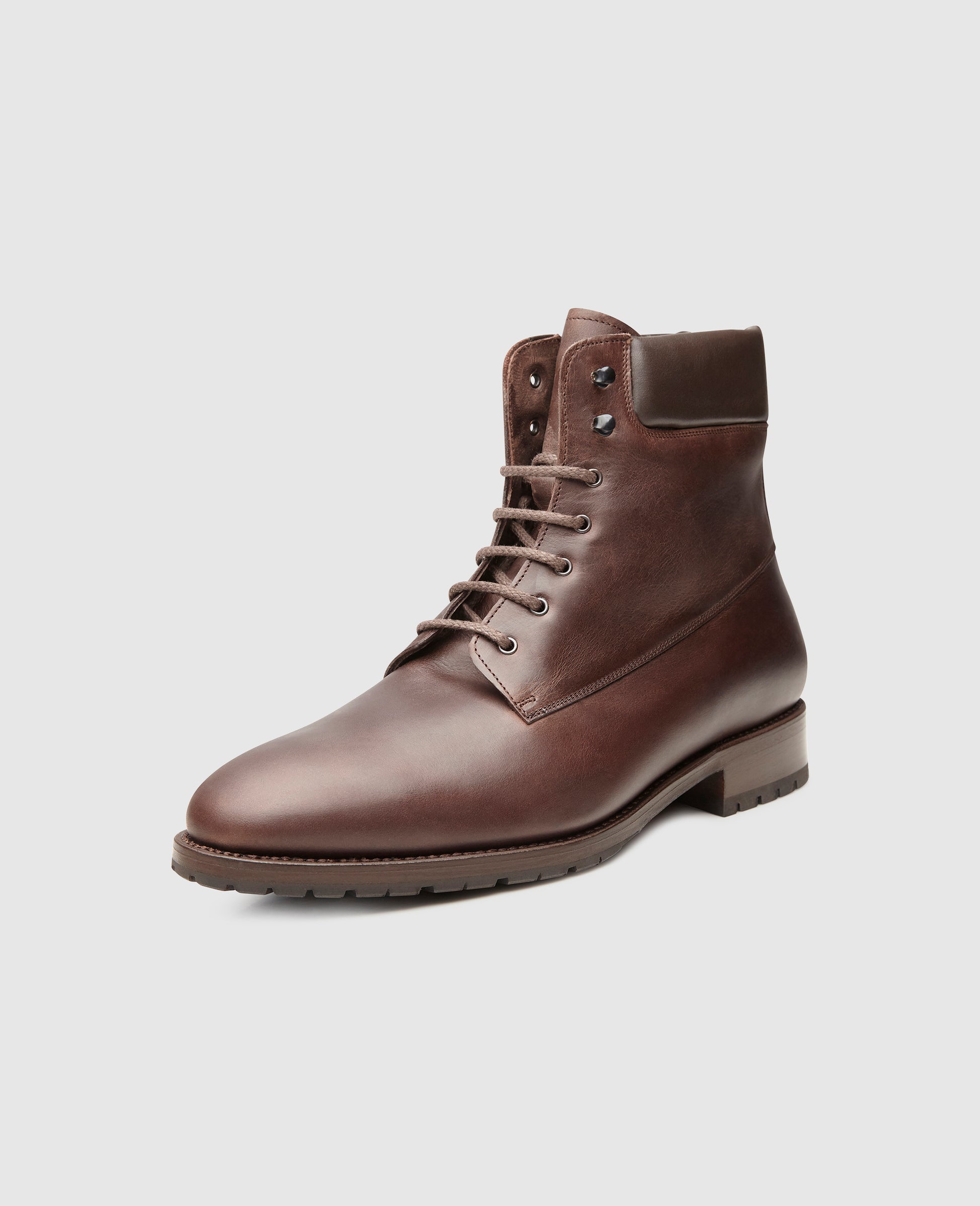 Snow, ice and the cold are particularly challenging for leather shoes. Our shoe model combines a tasteful appearance with weatherproof qualities. The box calfskin used is additionally treated with oil, to ensure maximum protection against moisture. Inside the shoe, a snug, warm lambskin lining protects the wearer's feet from the cold, while the sturdy Dainite rubber outsole offers a secure step on icy or wet surfaces. The padded shaft and high-reaching hole-hook lacing combination are also characteristic features.