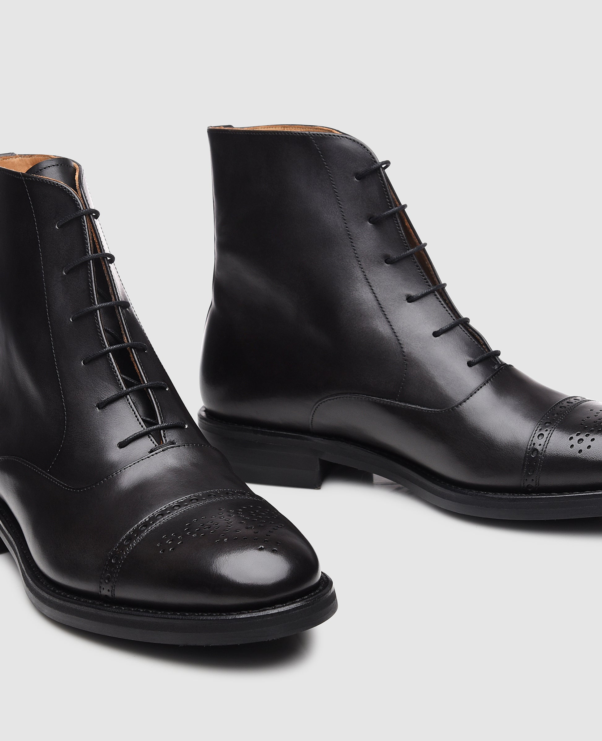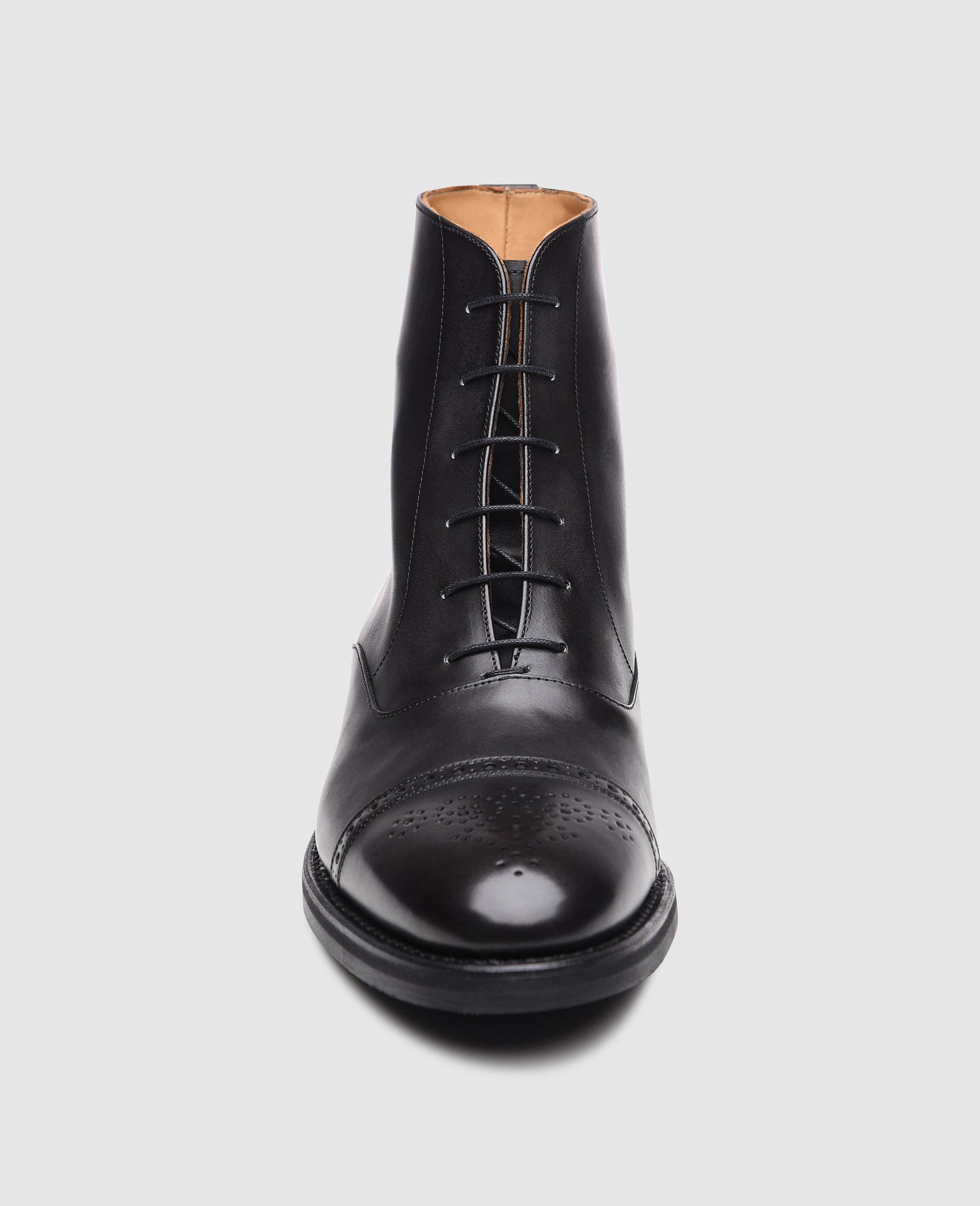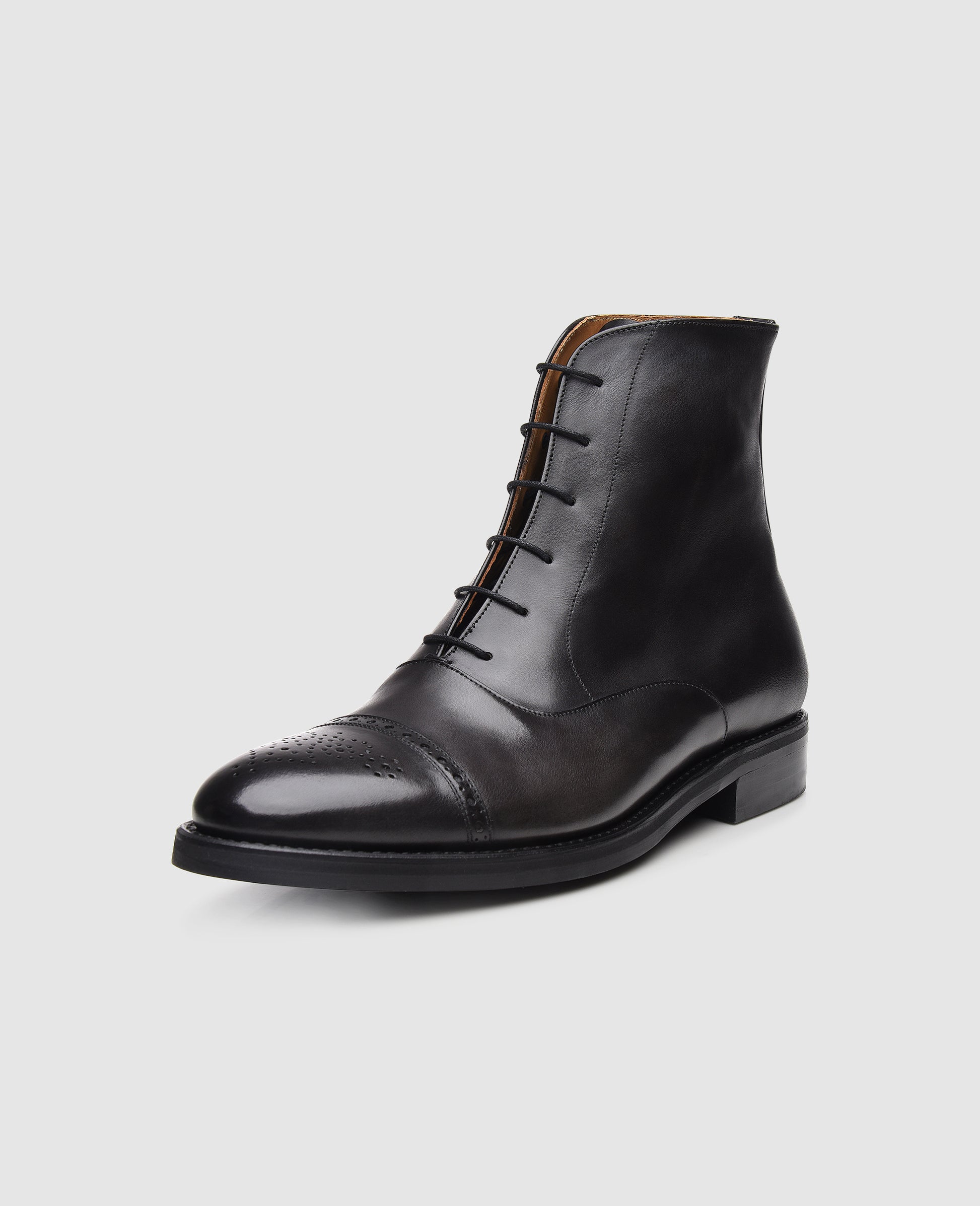 In the wet and cold season, an elegant boot combines weatherproof comfort with a stylish appearance. Characteristics of this model are the high reaching shaft with its closed-eyelet lacing and the decorated toe cap. This elegant men's boot is unique above all thanks to the elaborate hand finish that envelops the entire upper of the shoe in a true interplay of colors. The exquisite calfskin together with the inner lining and insole made of cowhide ensure for a flexible and breathable wearer experience. The famous Dainite rubber outsole also guarantees a secure step on slippery surfaces.