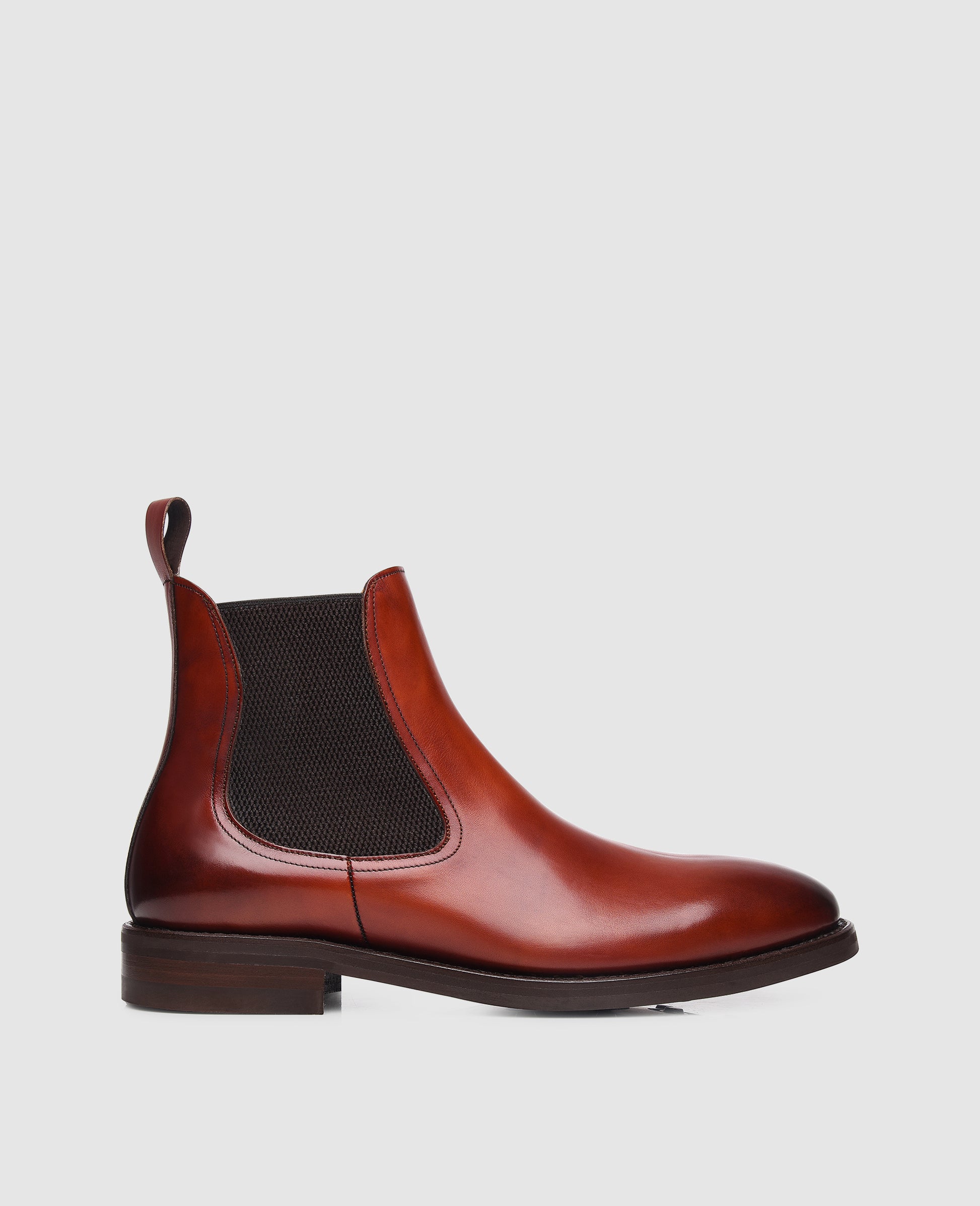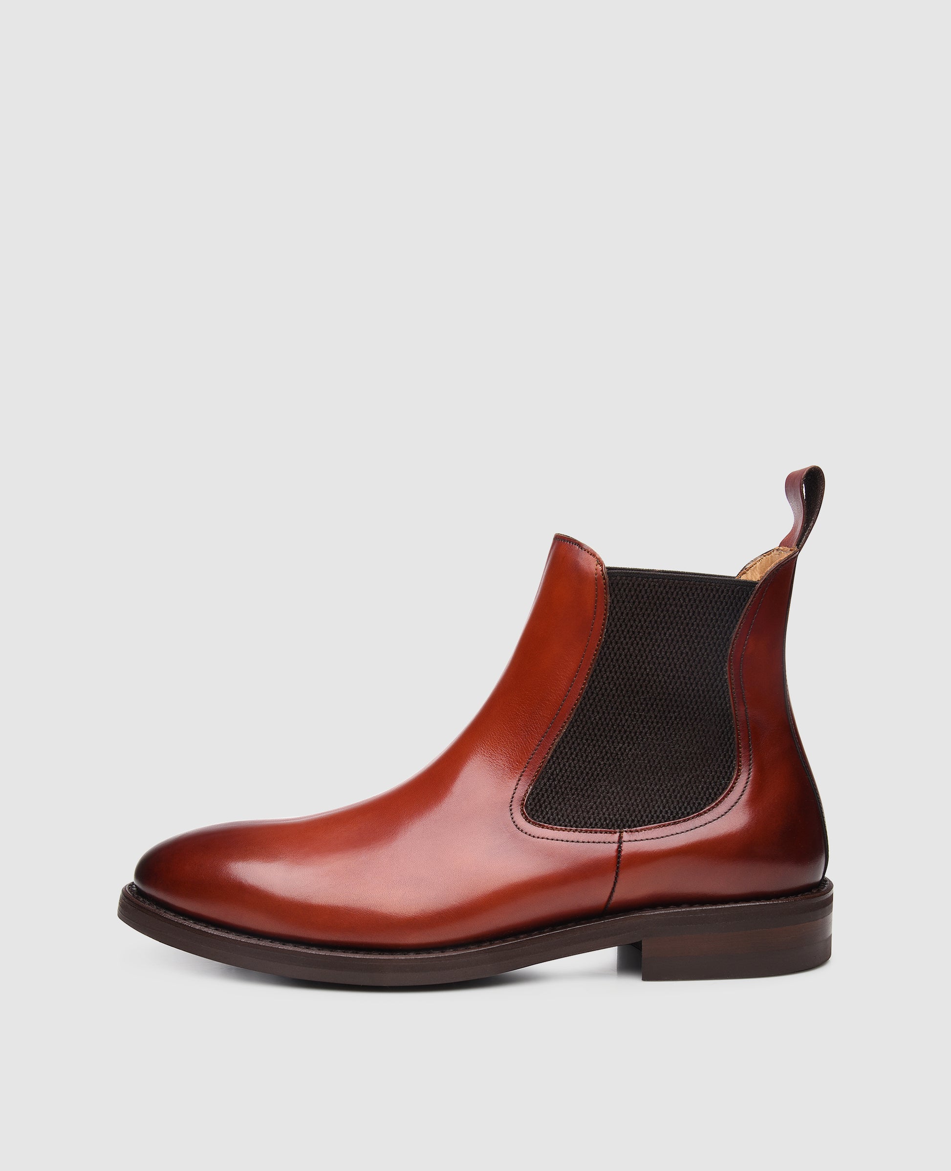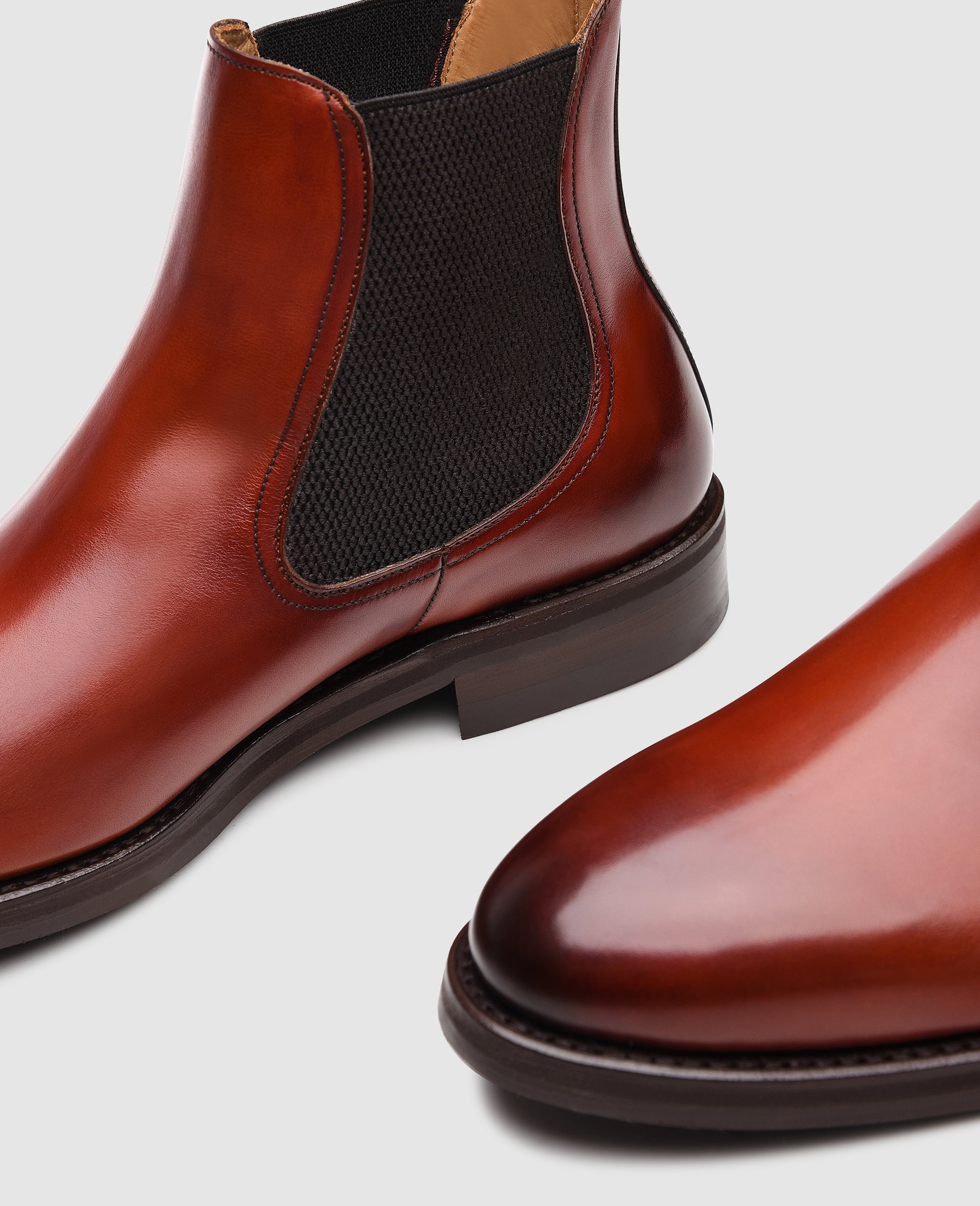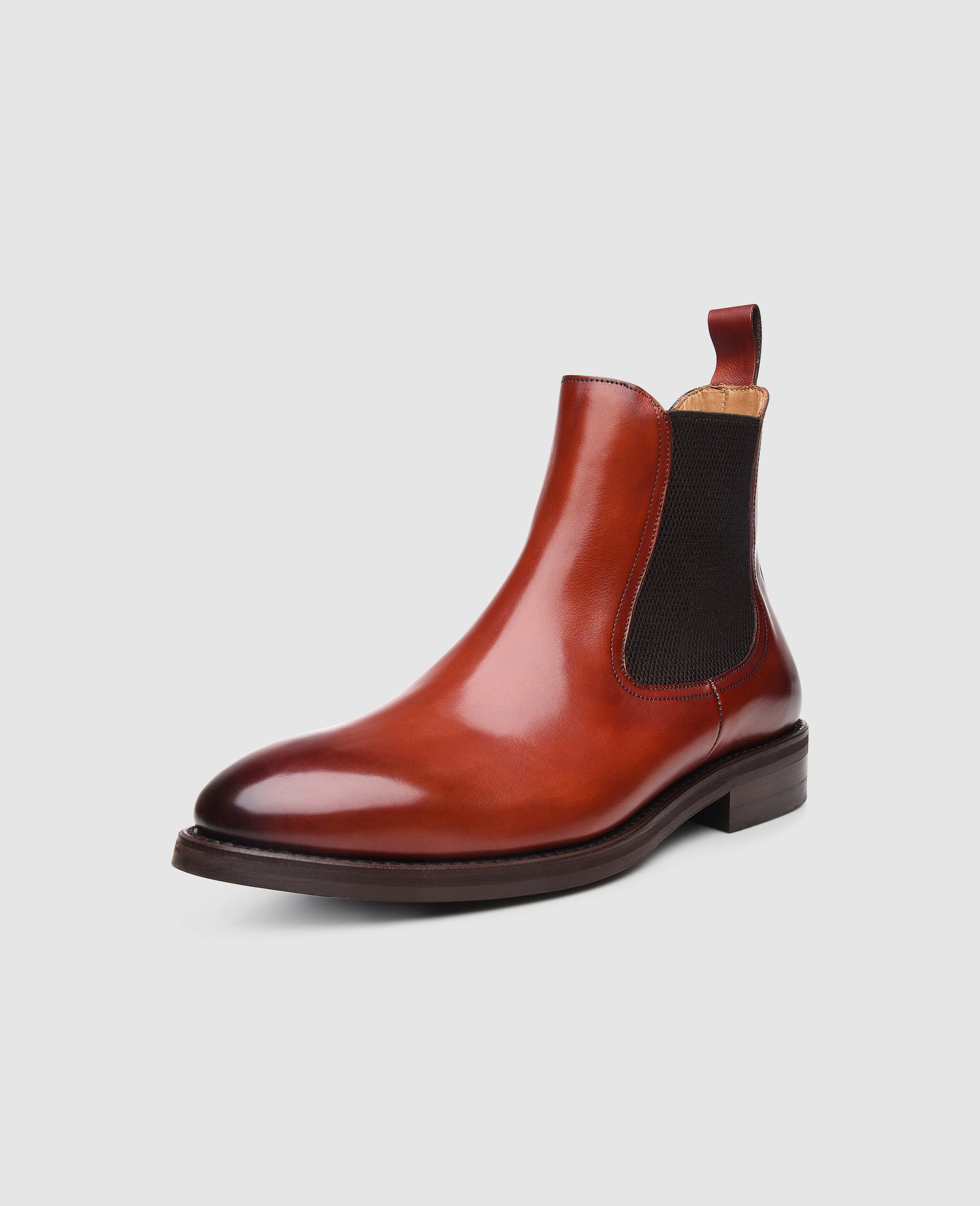 Also known as the "Beatle Boot," this Goodyear-welted Chelsea boot has a very special design highlight. The shaft is made of the finest calfskin with an elaborate hand finish. The result is a breathtaking interplay of light and dark colors. On the other hand, the basic shaft cut with two elastic side inserts and the practical pull loop at the heel are more classical attributes. The Chelsea boot is a breathable full leather shoe thanks to the inner lining, insole, outsole and heel, which are also made of cowhide. Goodyear-welted craftsmanship with a contemporary look!