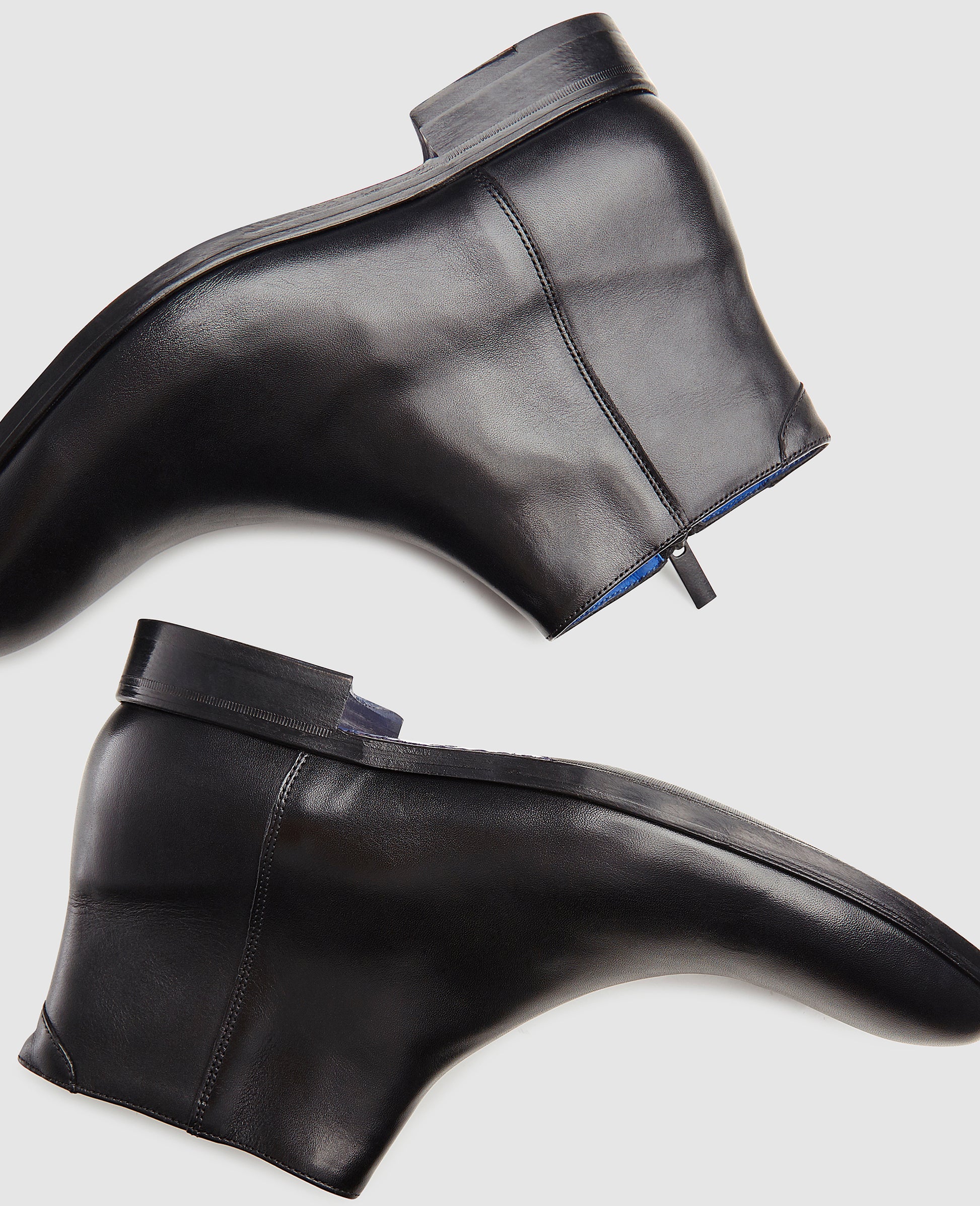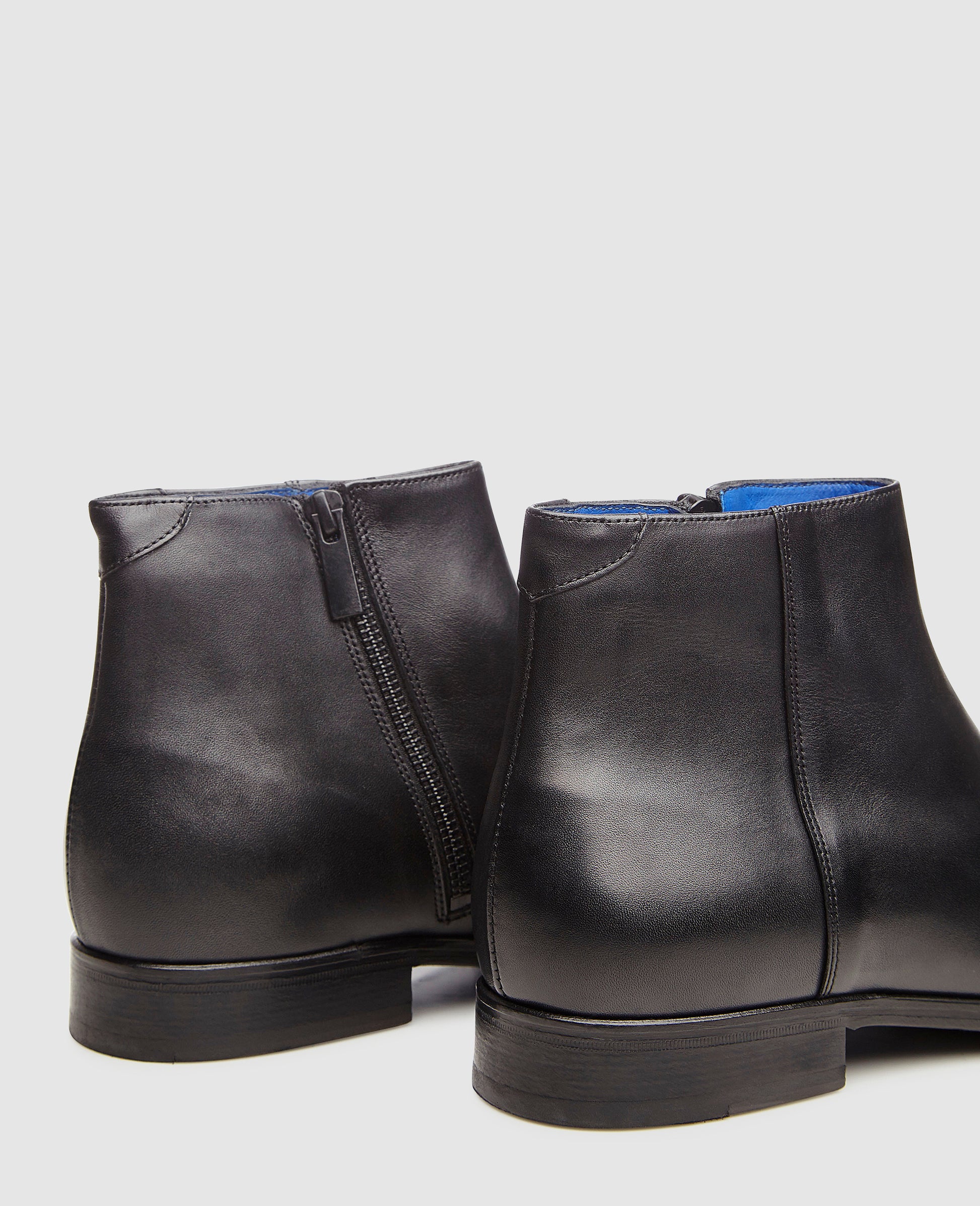 Particularly popular in the wet and cold seasons, this men's shoe model combines modern detailing with a classic design. This Blake-stitched ankle boot inspires with its shiny smooth leather and side zip. The inner lining, insole and parts of the outsole are also made of leather. Thanks to individual rubber sections, the outsole also guarantees a sure footing, even in wet conditions. Another highlight: the lining and outsole are in a strong blue color. An additional heel cushion with memory foam effect and the Blake-stitched design ensure for a pleasant wearing comfort alongside the sturdiness offered.