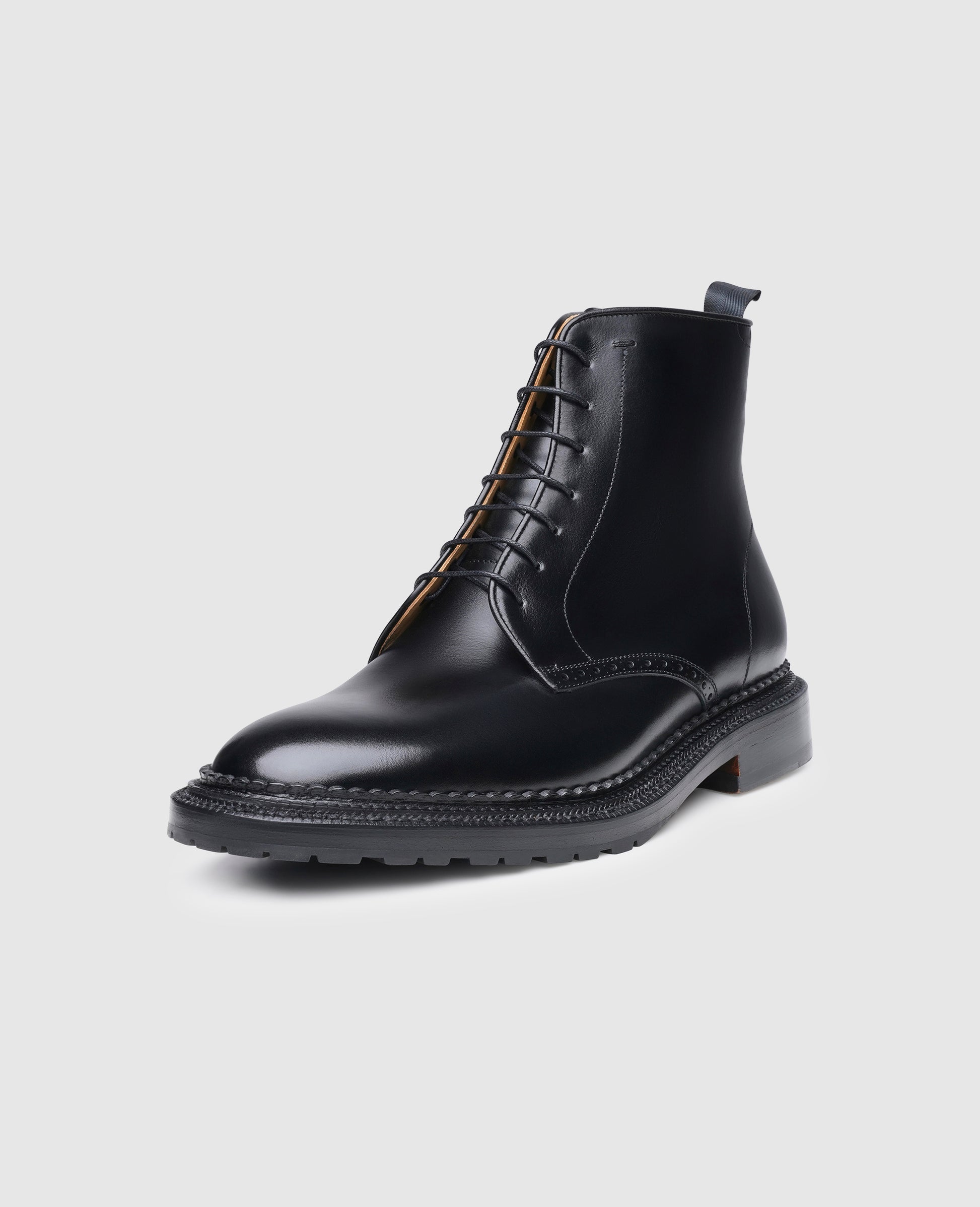 Notwithstanding the simple shaft design of this men's boot, there are a number of details that make it something extra special. These include the triple welt, crafted before the shoe is assembled, which gives this lace-up boot its strong and robust character and particularly impressive striking appearance. The Derby boot is ideally suited to autumn and winter, as the half-rubber outsole in the forefoot area guarantees a particularly secure footing.
