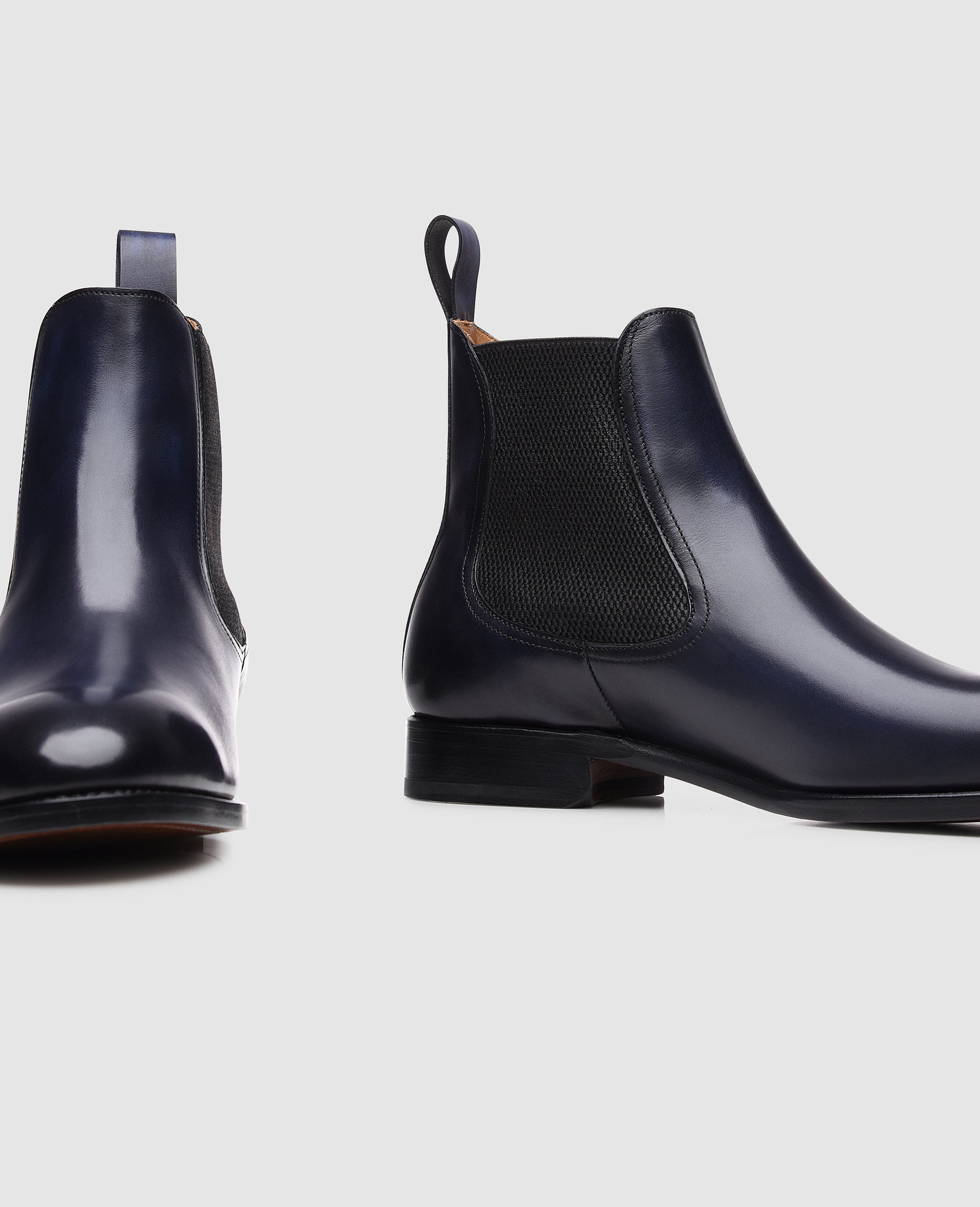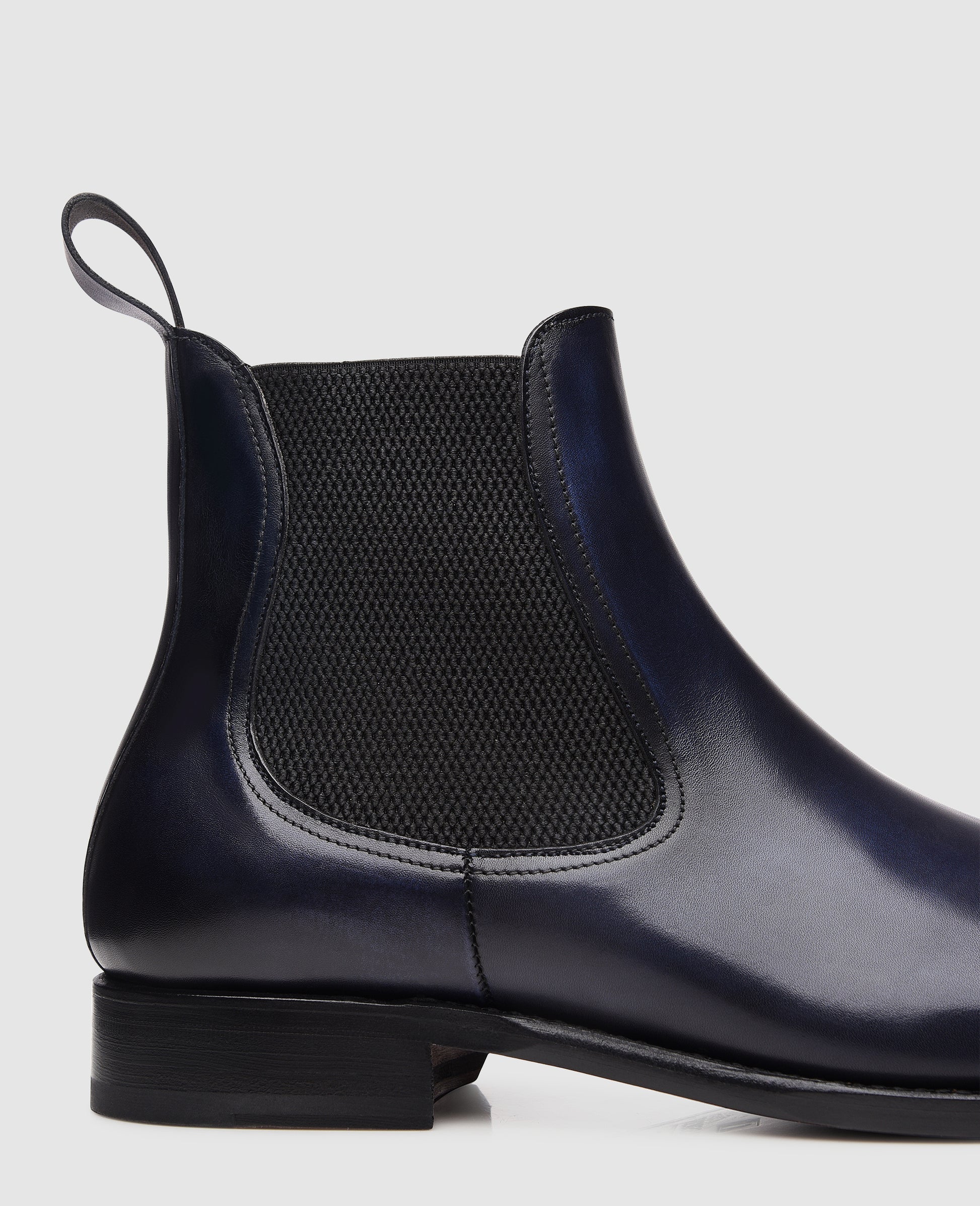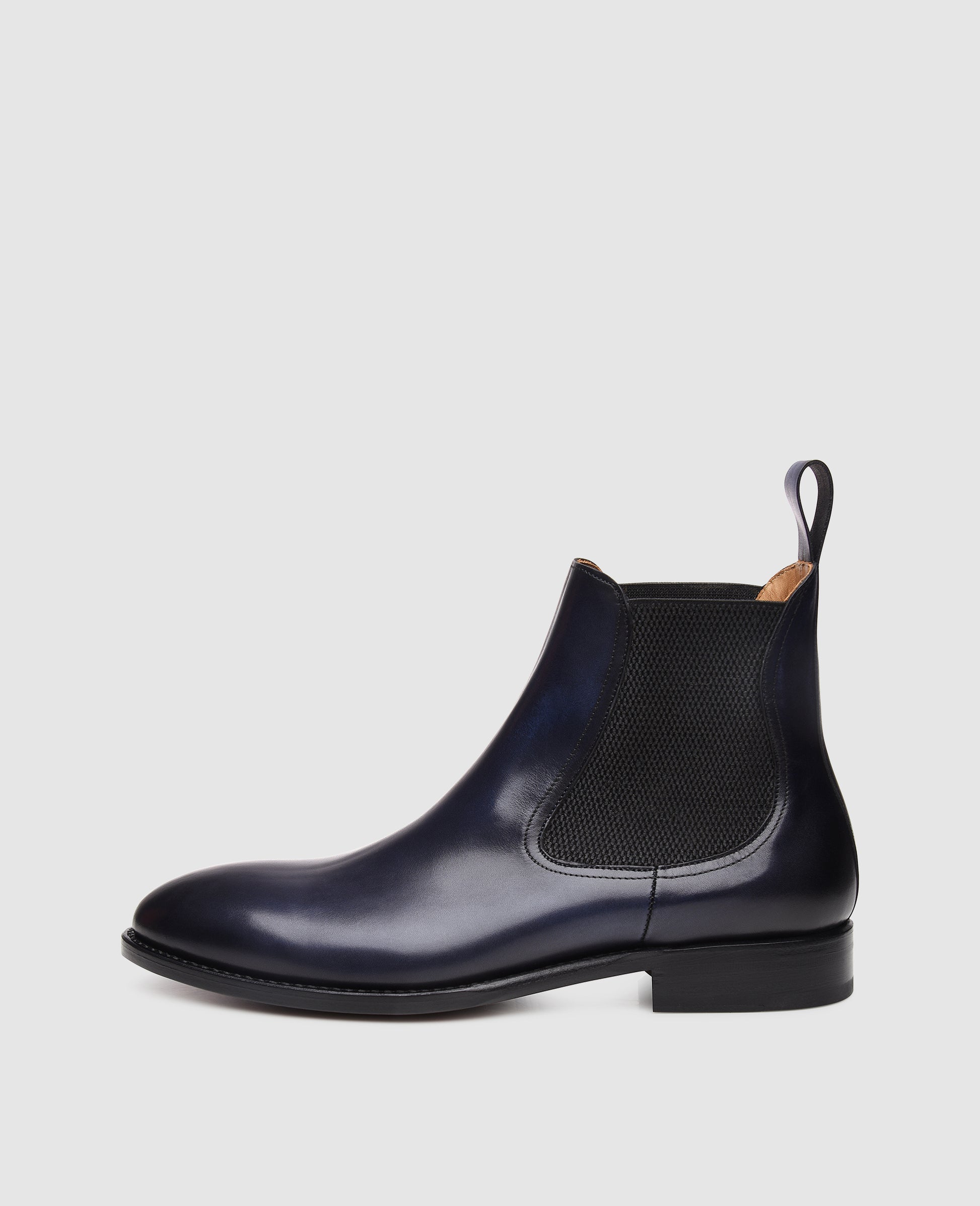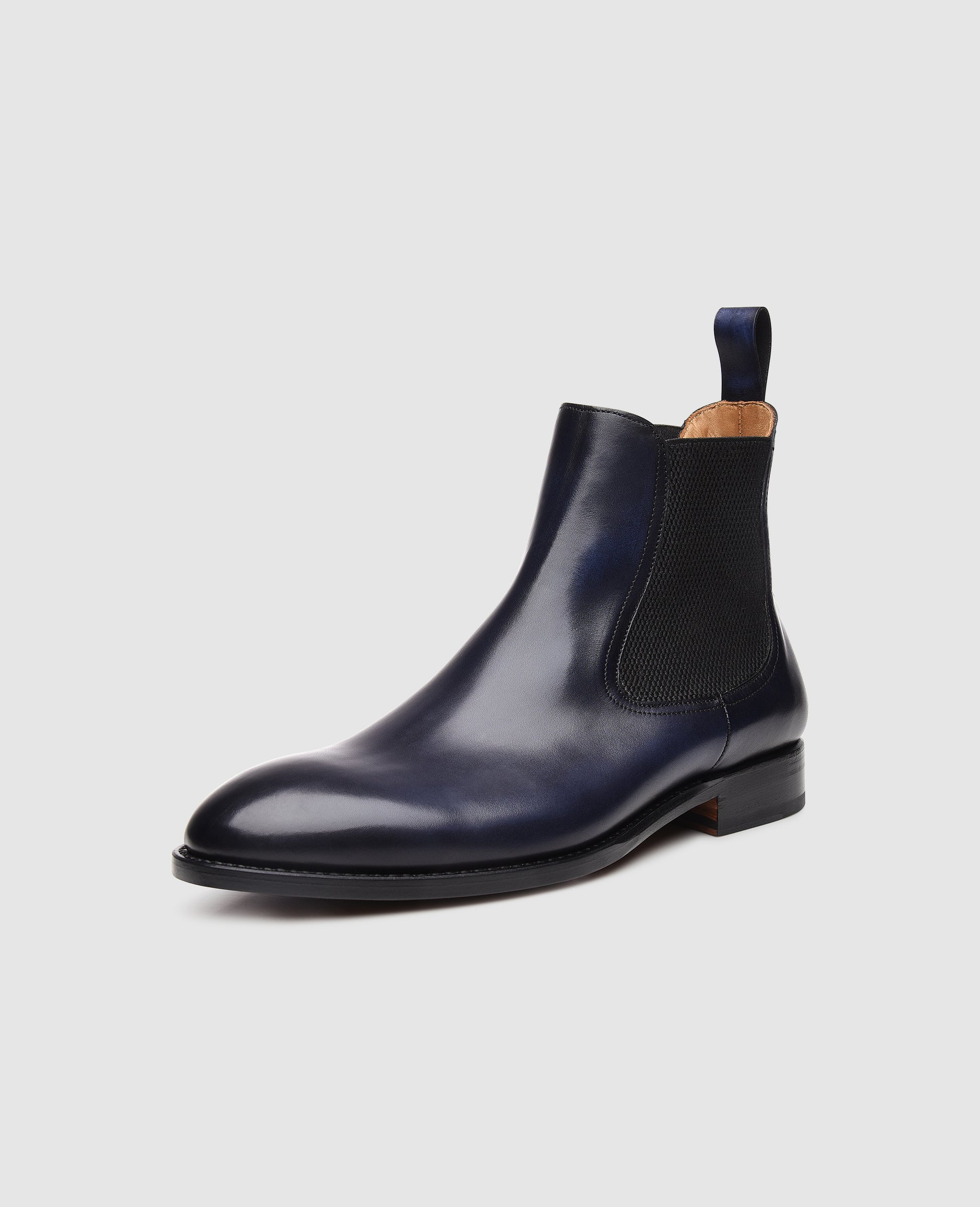 Also known as the "Beatle Boot," this Goodyear-welted Chelsea boot has a very special design highlight. The shaft is made of the finest calfskin with an elaborate hand finish. The result is a breathtaking interplay of light and dark colors. On the other hand, the basic shaft cut with two elastic side inserts and the practical pull loop at the heel are more classical attributes. The Chelsea boot is a breathable full leather shoe thanks to the inner lining, insole, outsole and heel, which are also made of cowhide. Goodyear-welted craftsmanship with a contemporary look!