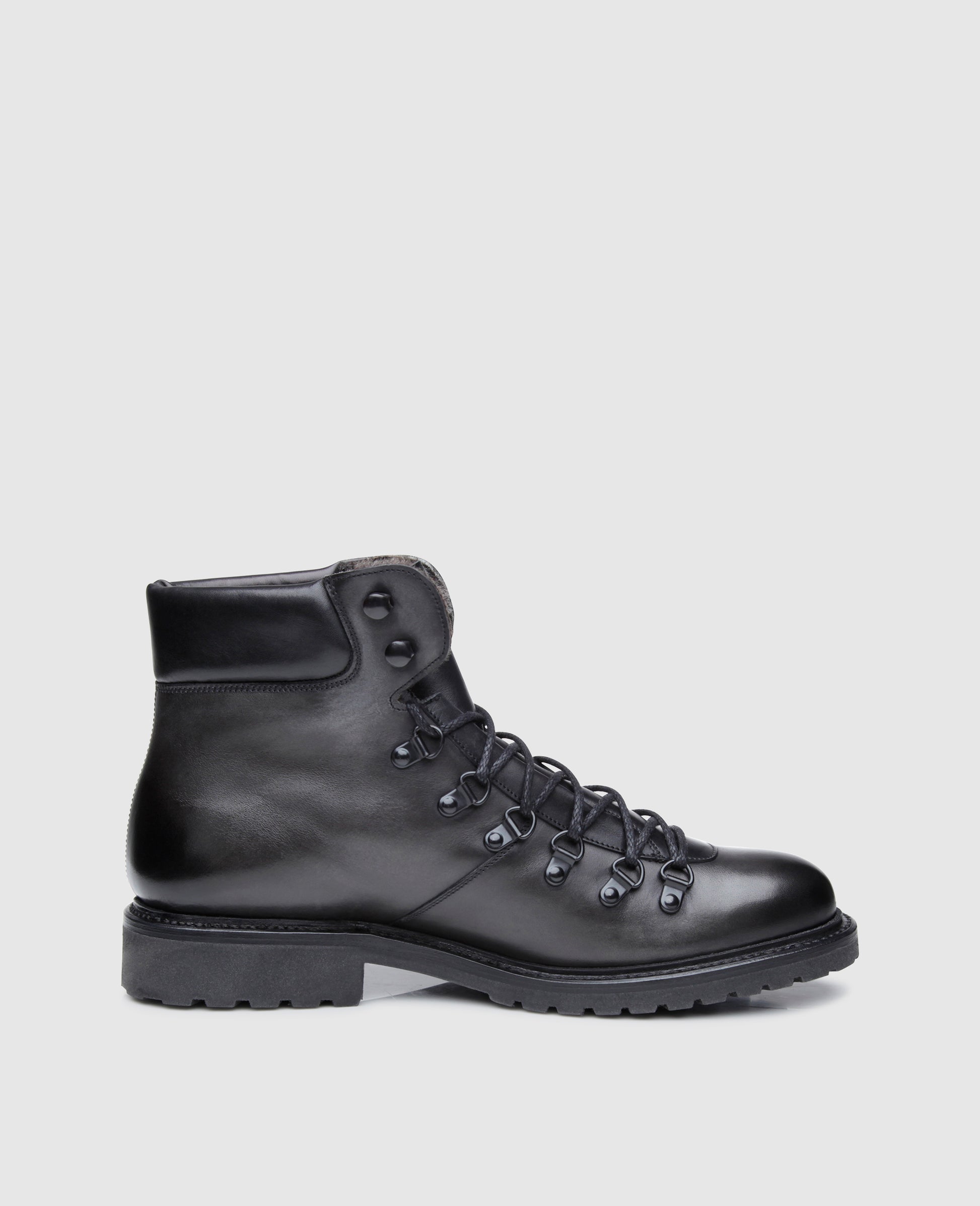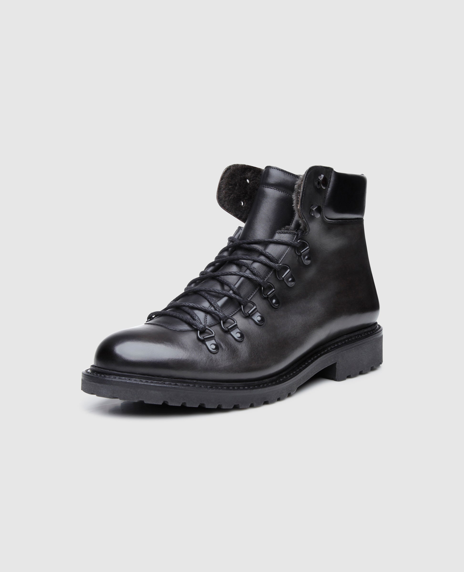 At first glance, No. 689 strongly recalls a sporty mountaineering shoe. However, the premium soft calf of the shaft with an impressive hand finish makes this Goodyear-welted men’s boot better suited for stylish everyday outfits than a hike through the Alpine landscape. Nevertheless, its robust rubber lug sole ensures stability on slippery surfaces both in the mountains or in flatter areas, and the lambskin lining along the interior of the shaft guarantees that feet will stay toasty warm, even when the thermometer drops below zero.