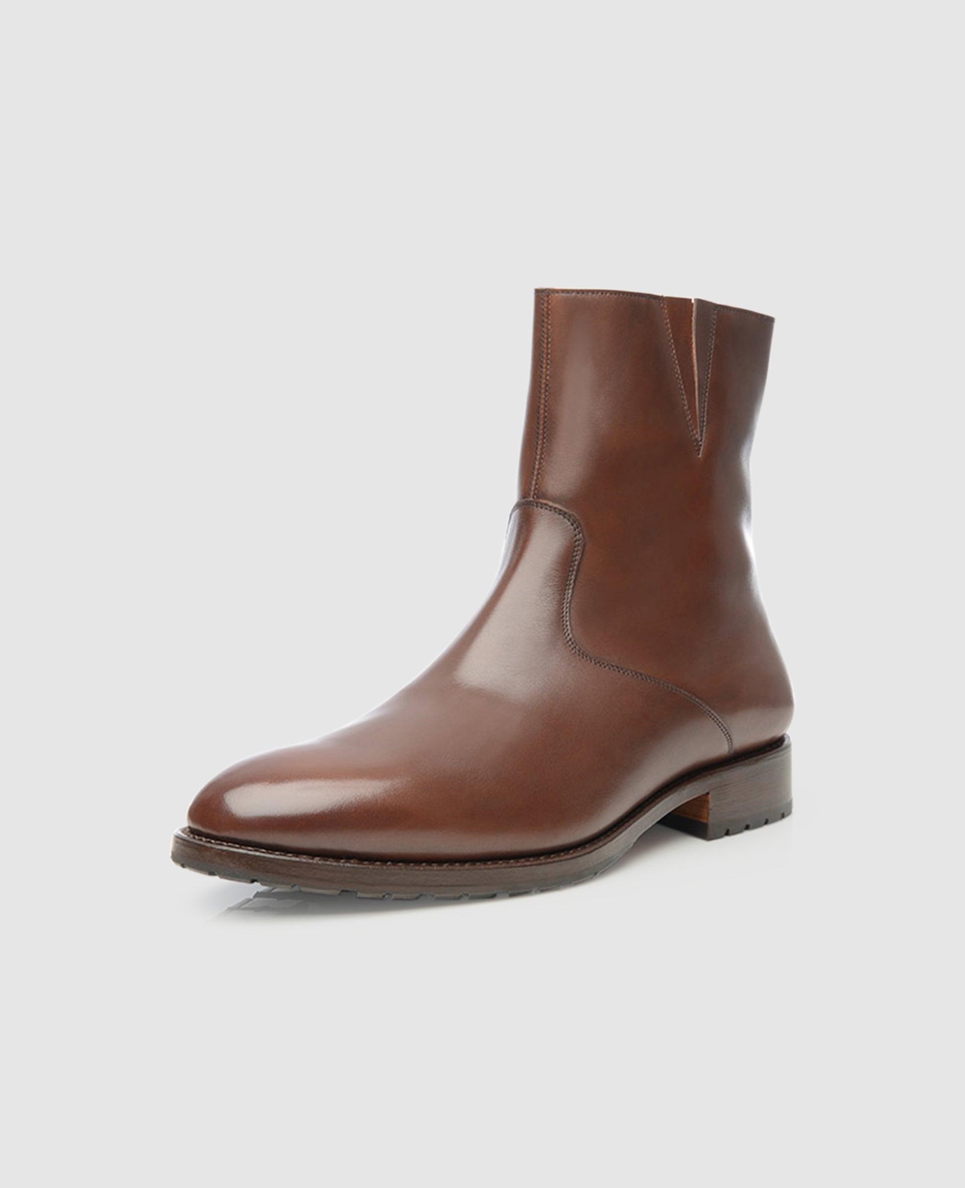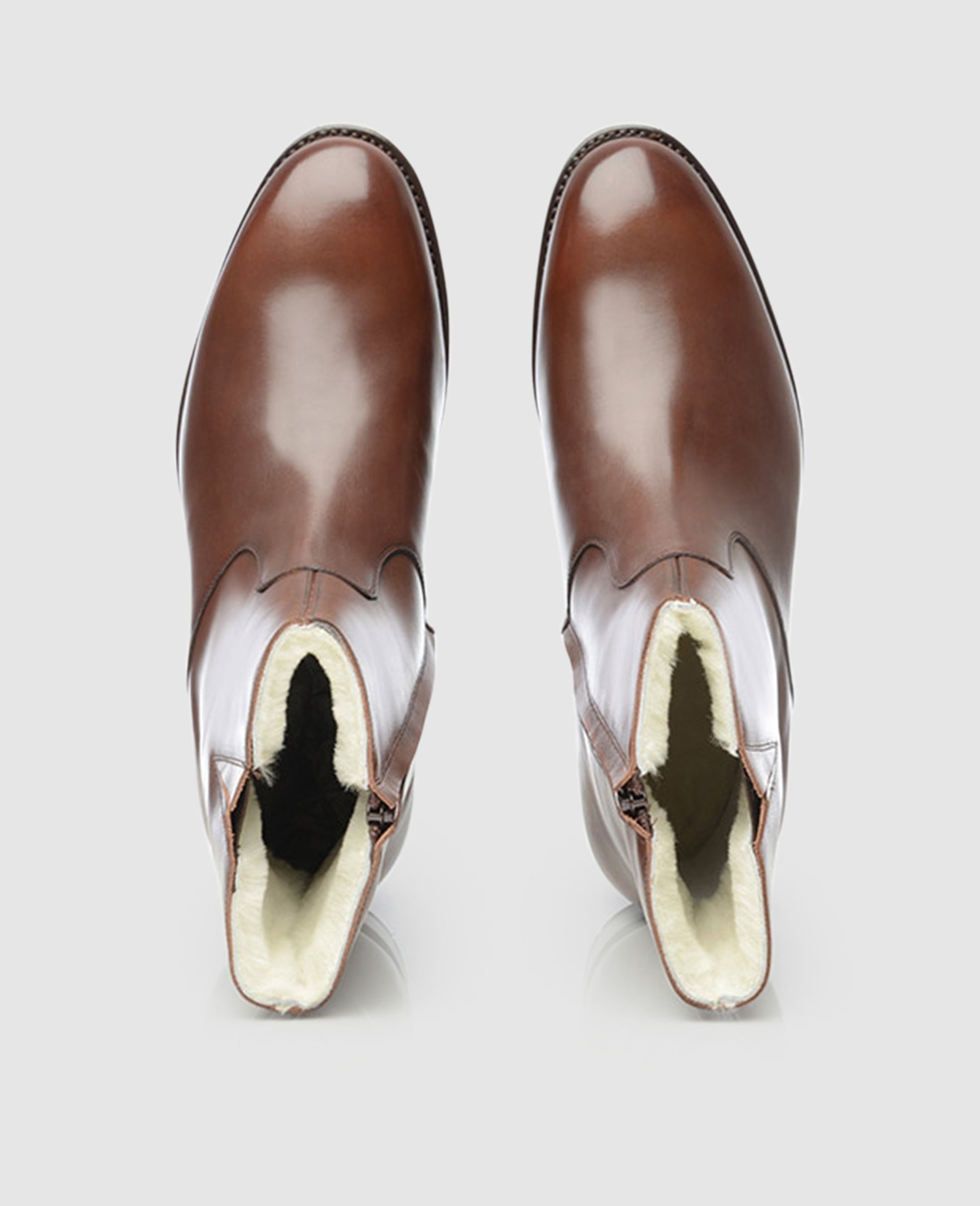Our No. 691 is a classic winter boot in dark brown. This comfortable piece of men’s footwear is a great addition to your bad-weather wardrobe and harks back to a long tradition. In the early 19th century, it became popular to wear winter boots with long men’s trousers. In contrast to the low-cut footwear, which was in fashion at the time, boots offered better protection against dirt, cold and wetness.