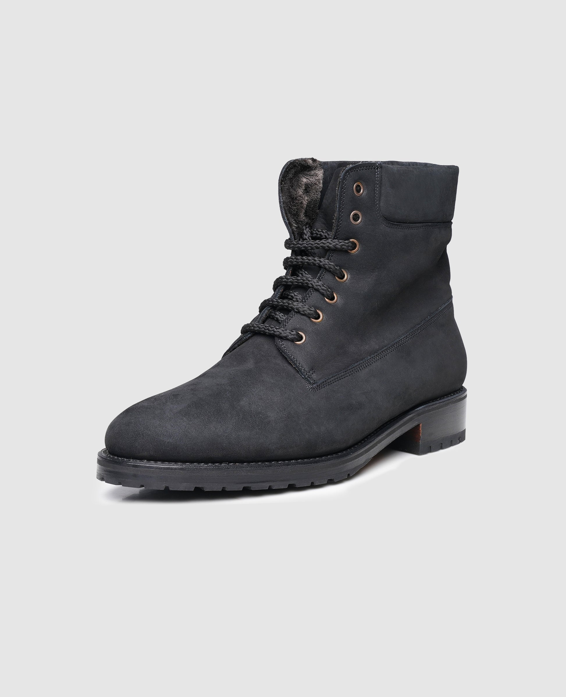 Classic smooth leather shoes have been an indispensable part of men’s footwear since the 19th century. For a very long time, suede leather shoes were only appropriate for casual occasions. But fortunately, times are changing and today, they are also suitable in more formal settings. Our No. 695 is a classic suede boot in anthracite, crafted from high-quality velours leather.