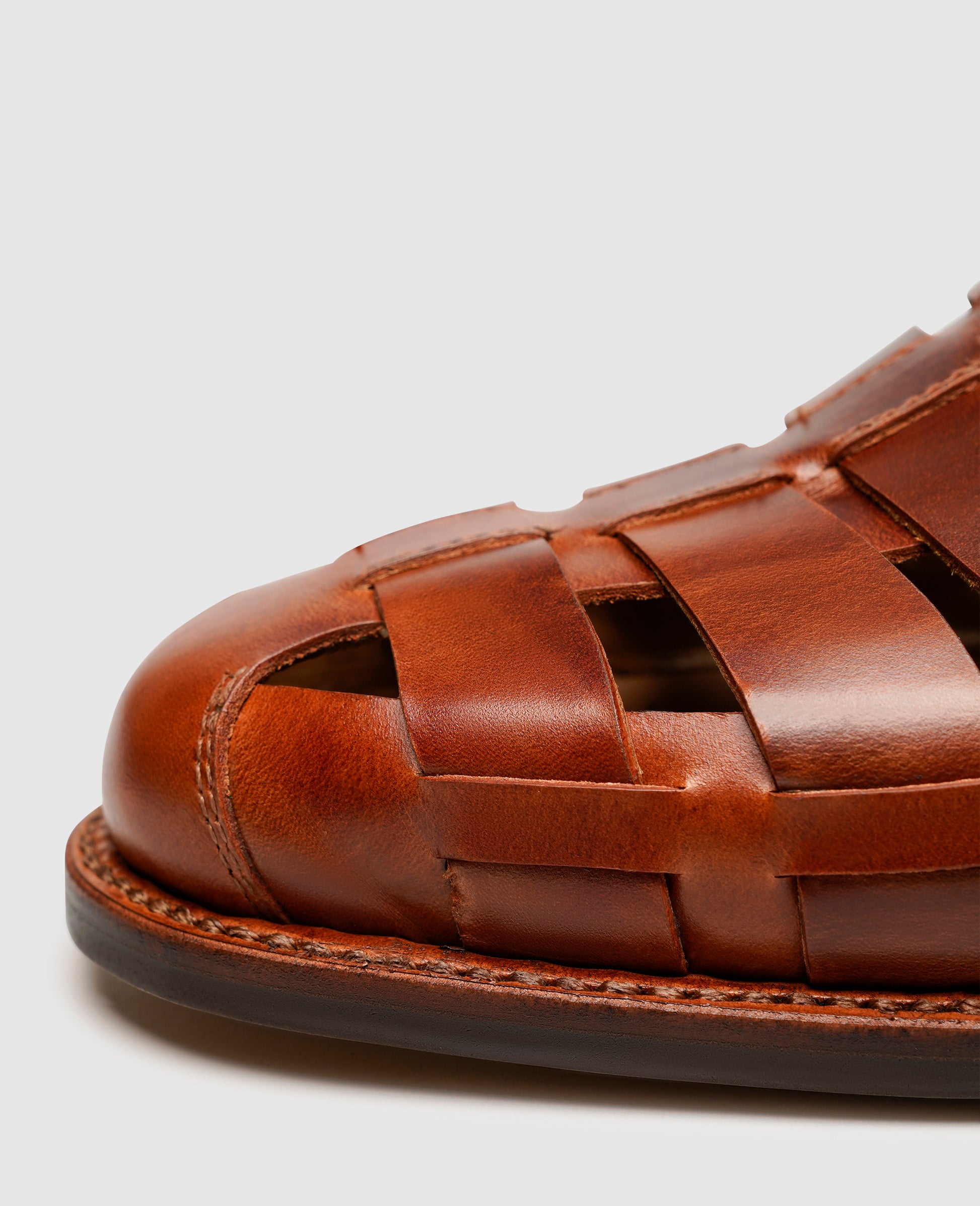 This traditional fisherman's sandal for men with its timeless look and exquisite materials is part of the exclusive collection by Heinrich Dinkelacker. The elegant smooth leather has been treated with an additional wax for greater durability, resulting in a fascinating patina that develops over time. The renowned Rendenbach leather sole and the flexible Goodyear-welted construction give this classic men's sandal its unrivaled Dinkelacker comfort.