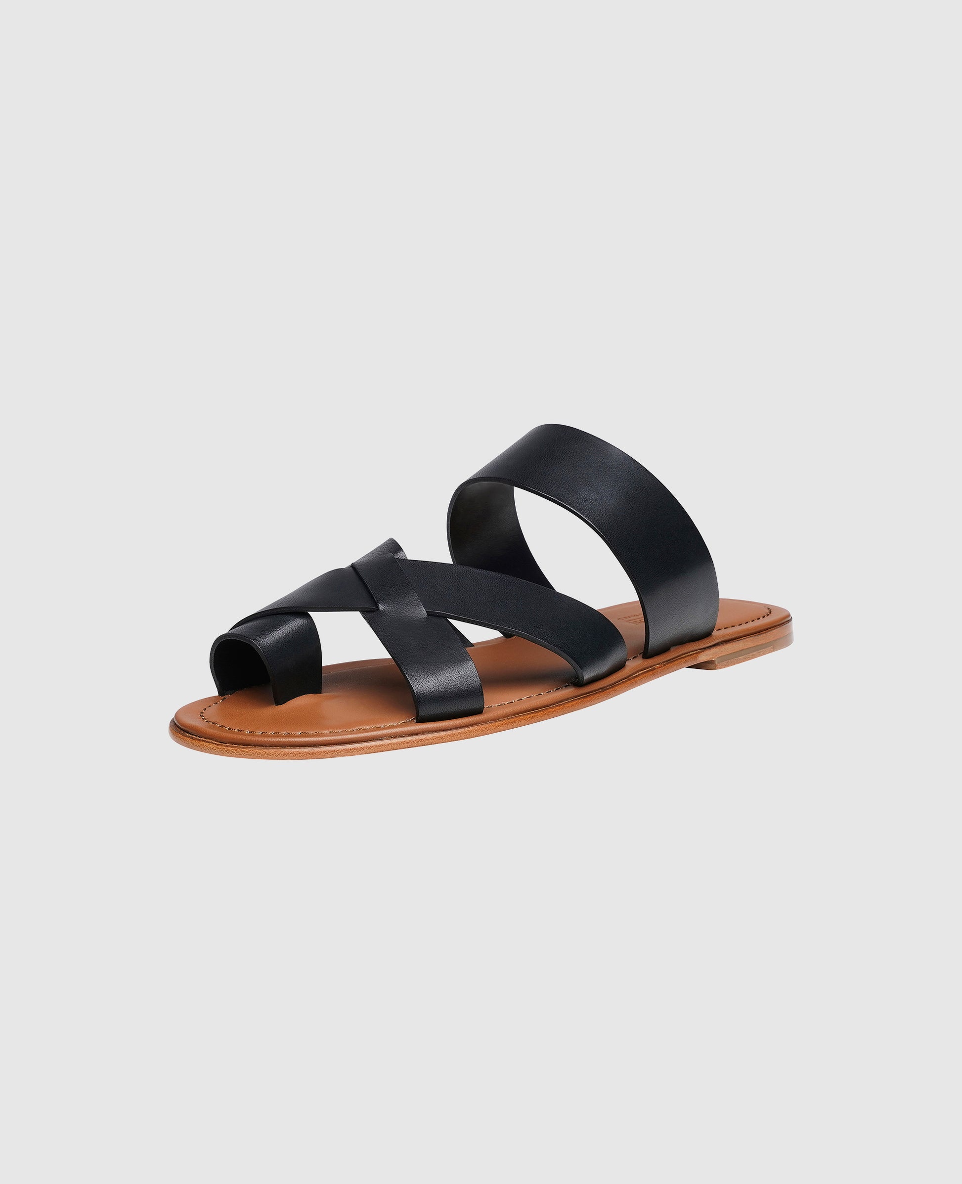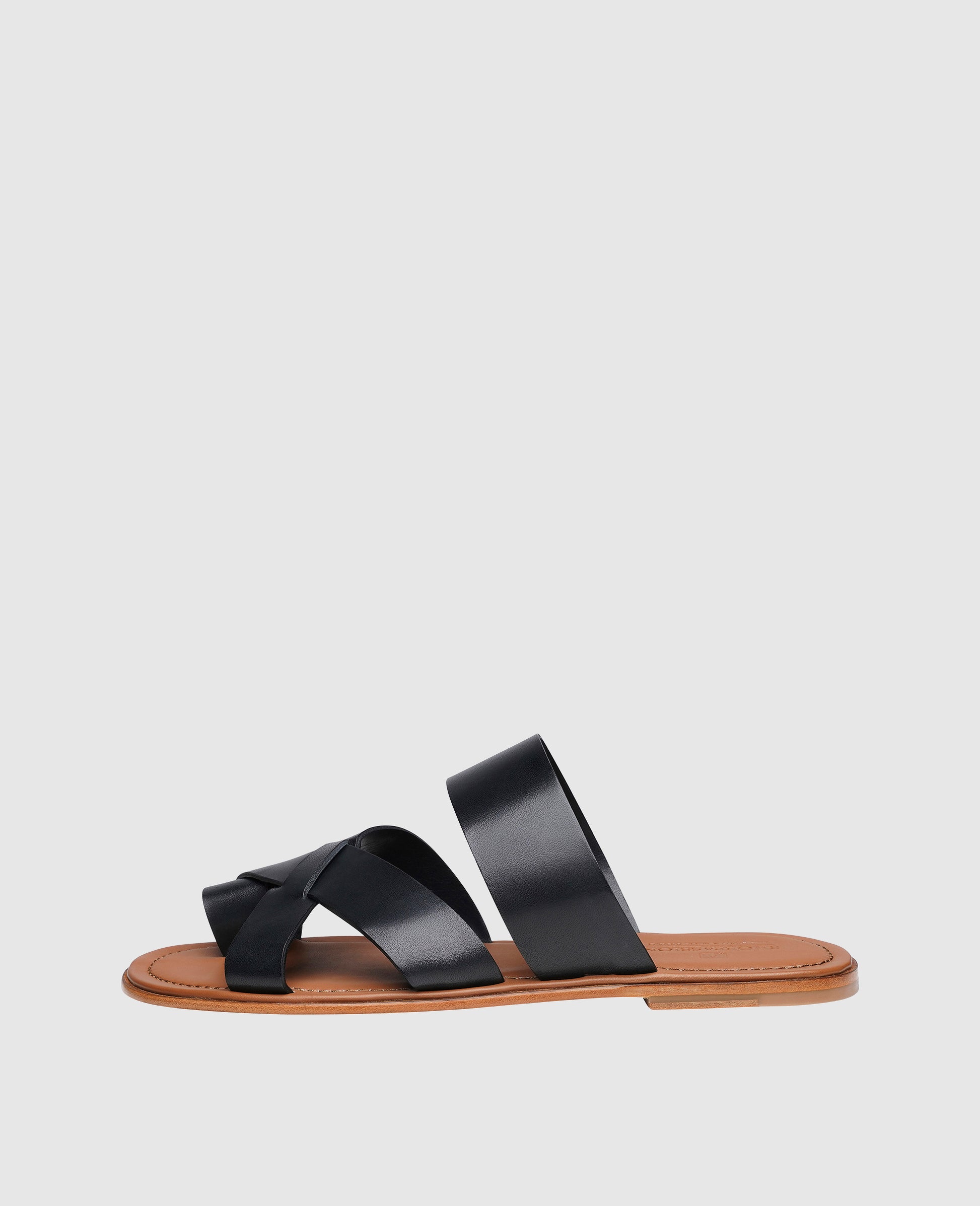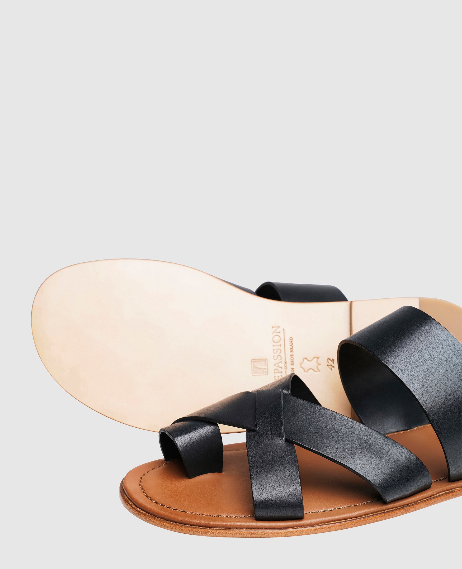 This men's sandal is a wonderful companion for warmer days. This model is given a particularly modern look thanks to the crossed positioning of the calfskin leather straps that extend over the shaft. The shoe also offers support to its wearer with the separate toe strap.