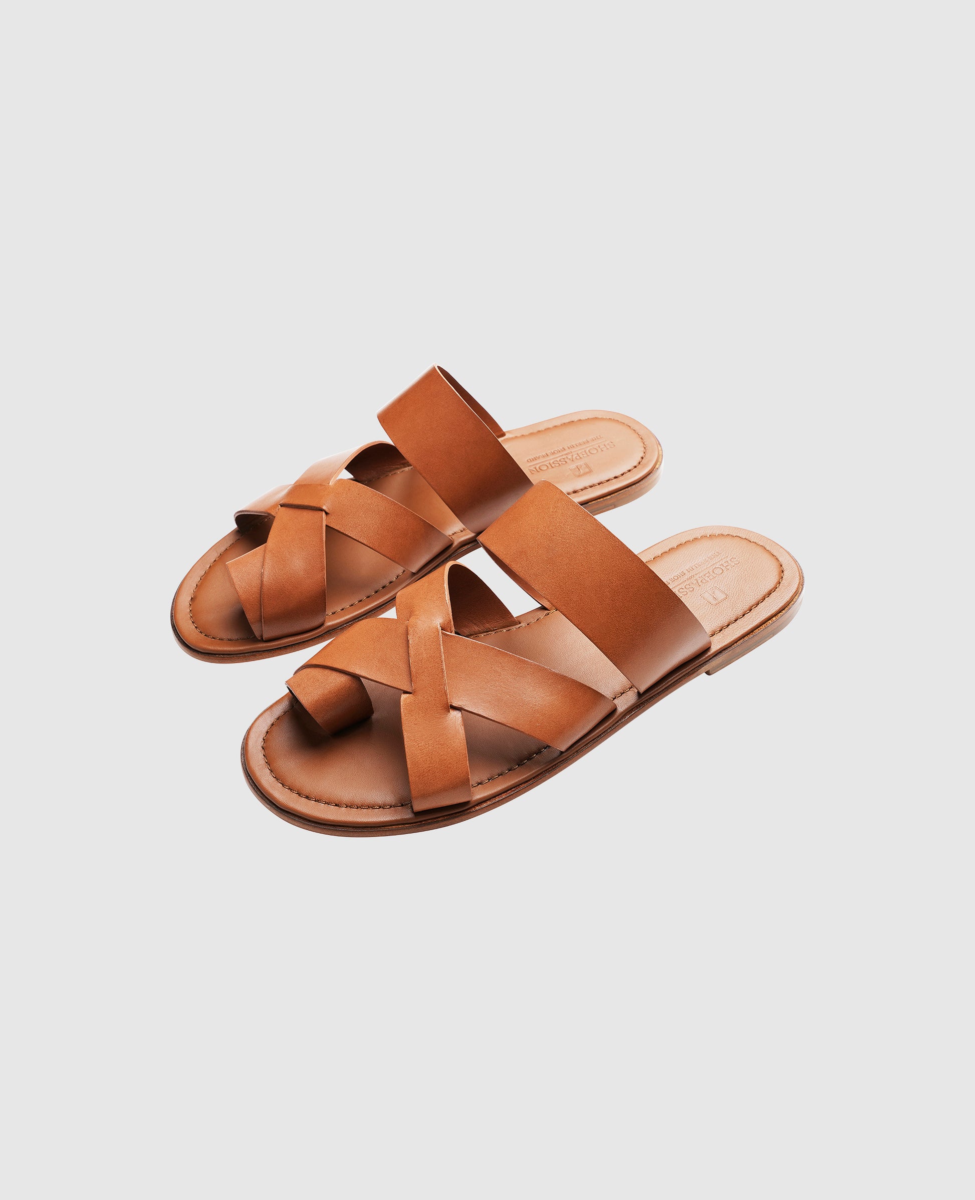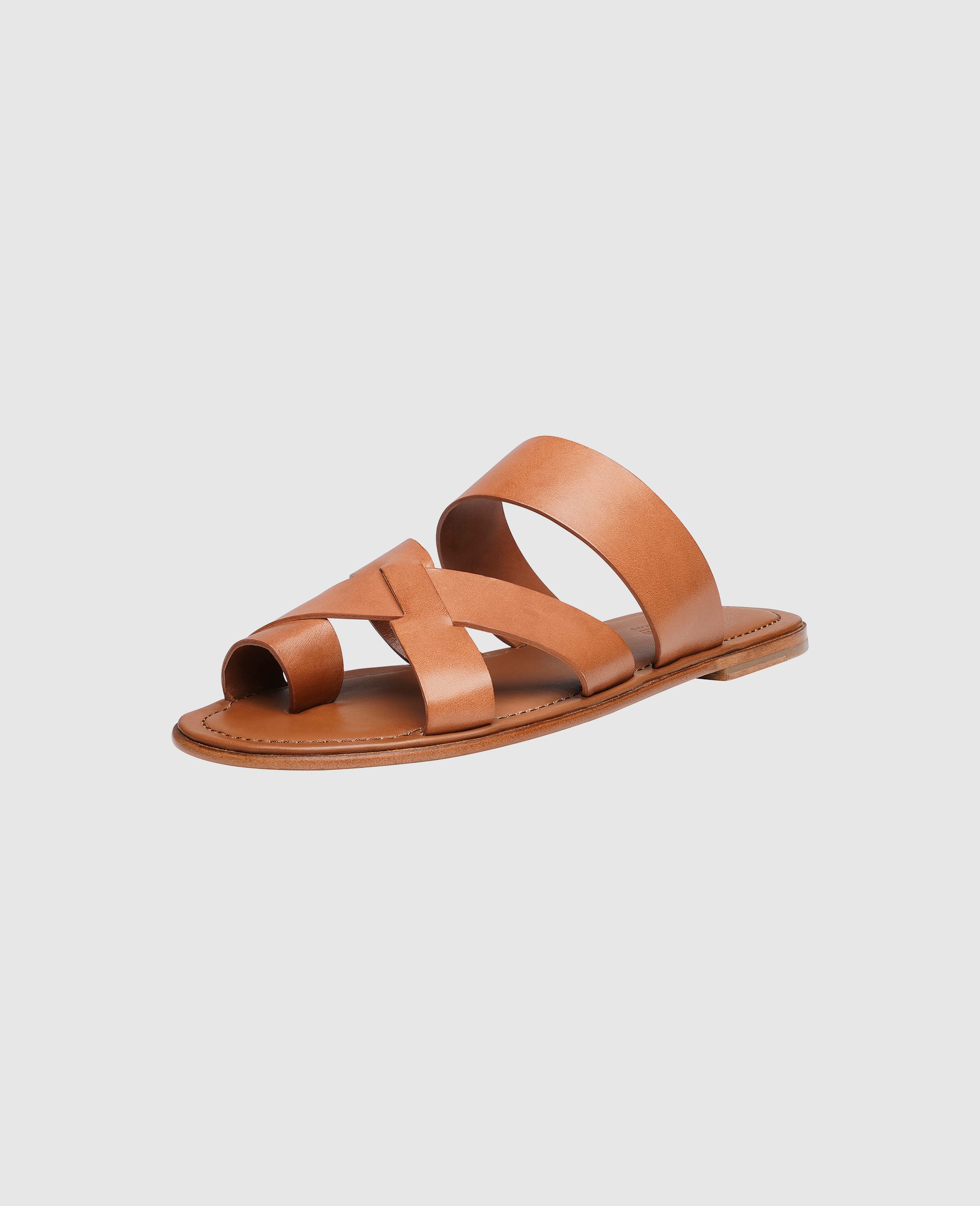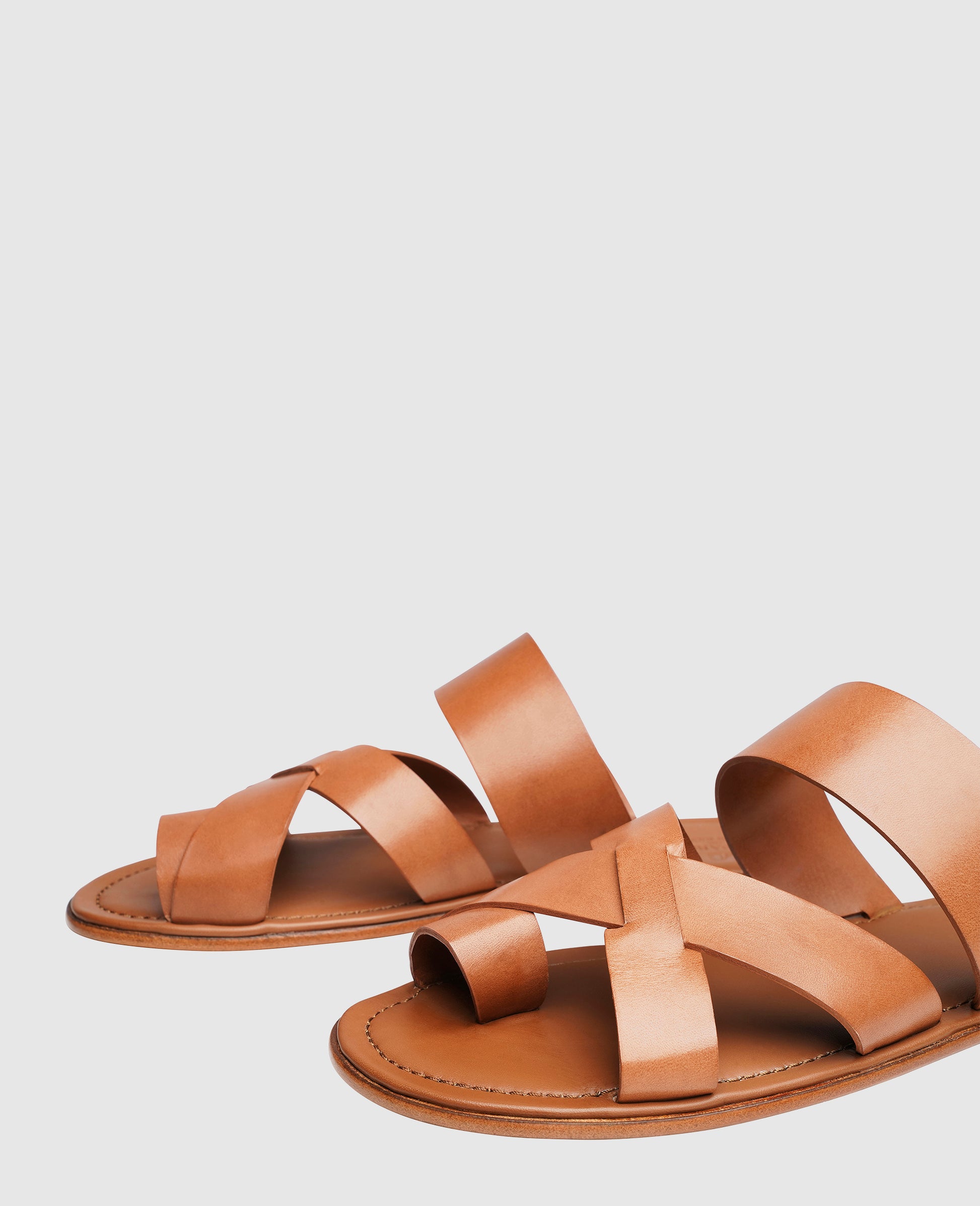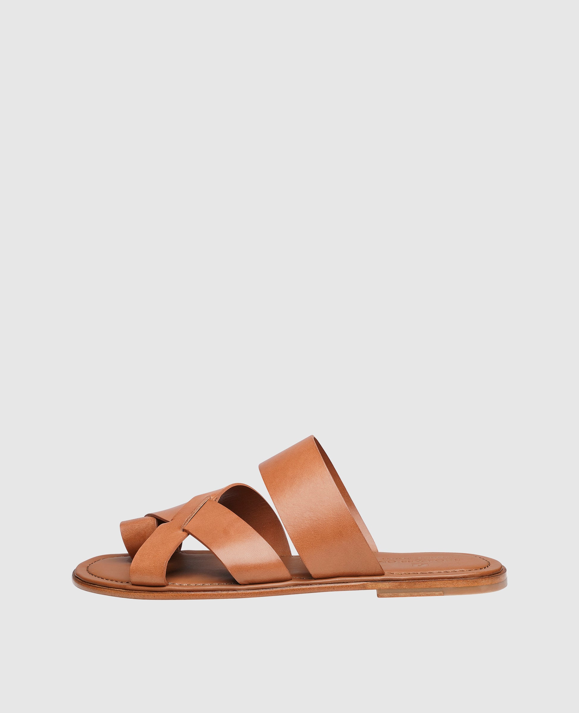 This men's sandal is a wonderful companion for warmer days. This model is given a particularly modern look thanks to the crossed positioning of the calfskin leather straps that extend over the shaft. The shoe also offers support to its wearer with the separate toe strap.