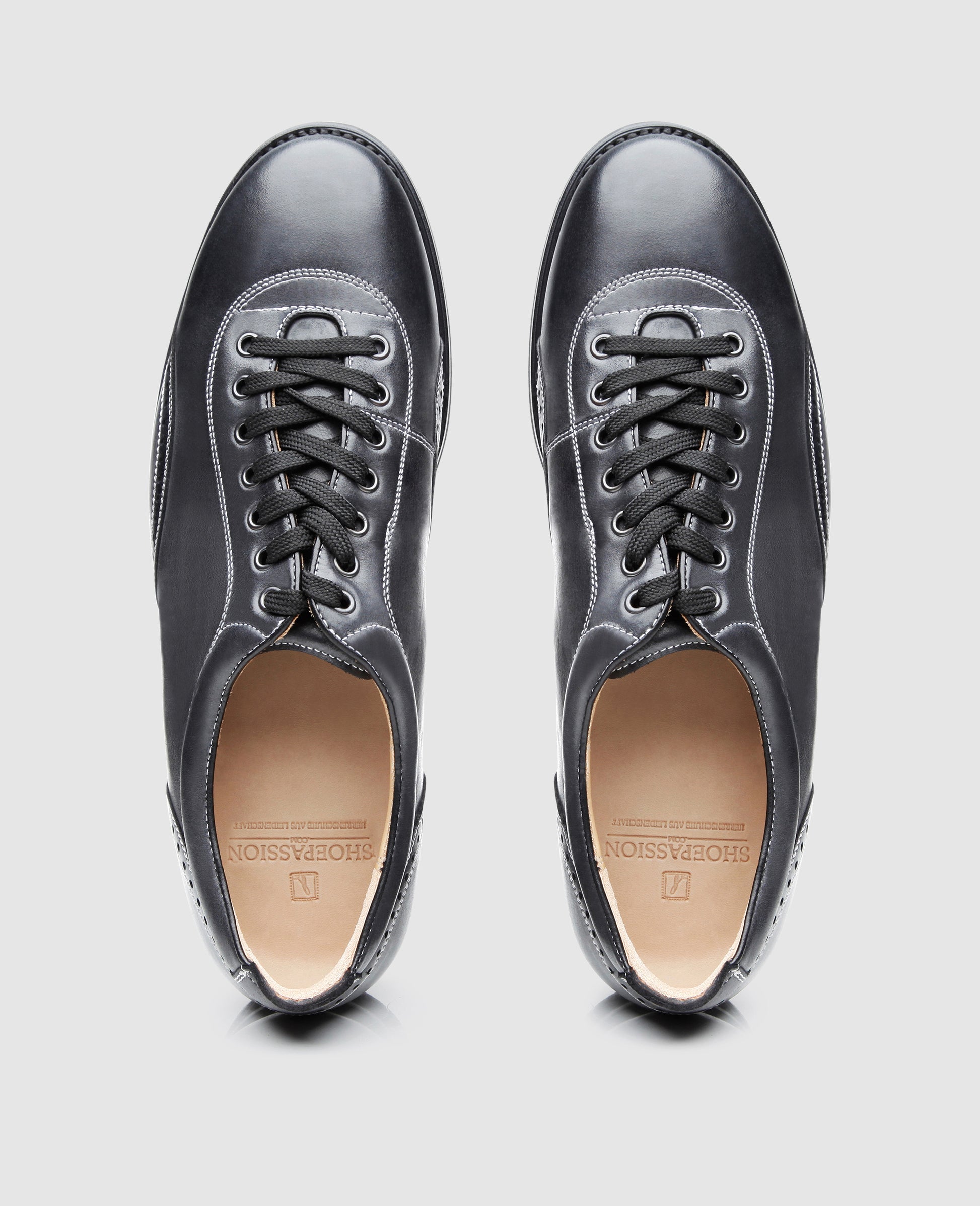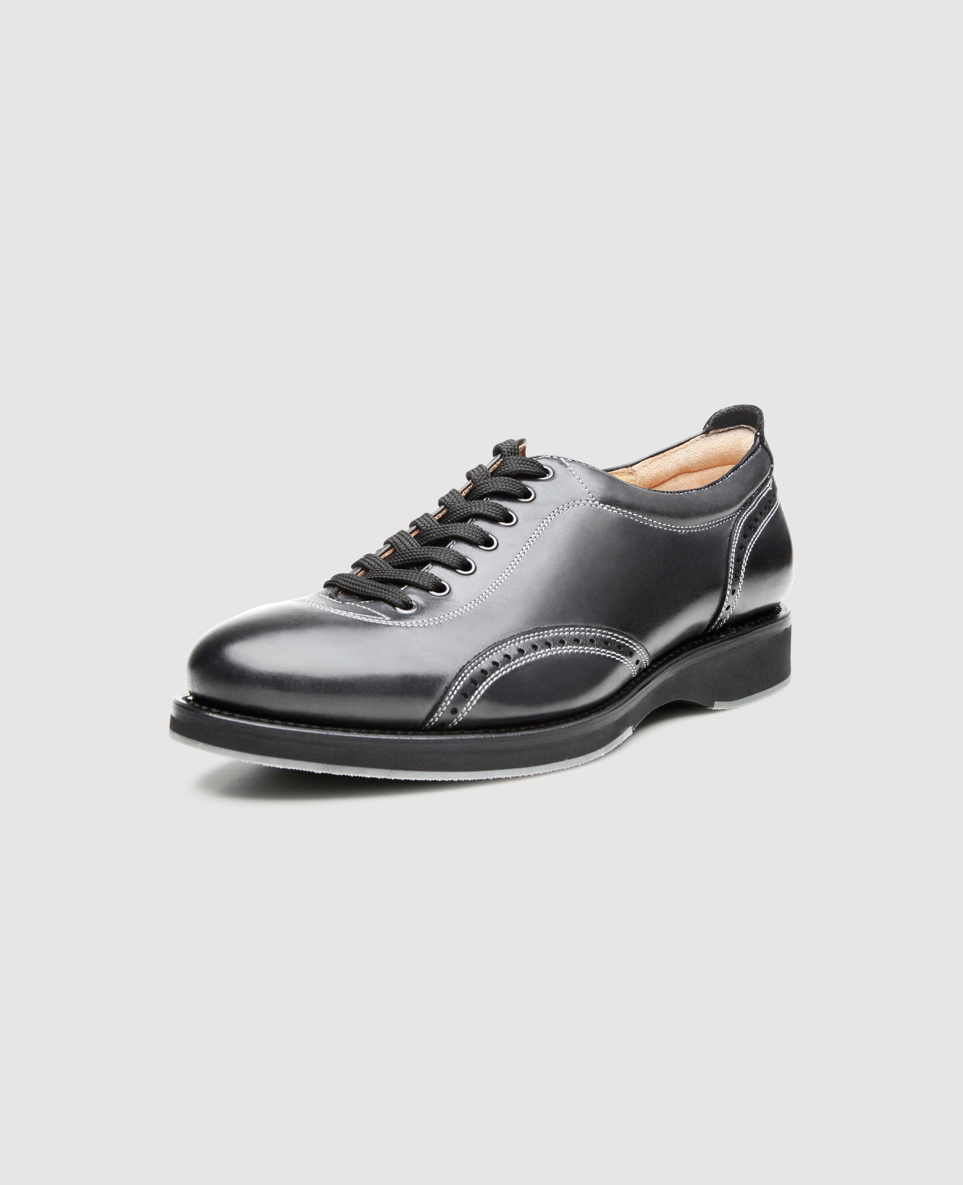 No. 930 is a blue/black Goodyear-welted trainer, the design of which is based on that of the traditional Oxford shoe. This soft-soled shoe combines the comfort of popular light athletic shoes with the advantages of the Goodyear welting production method, a premium handicraft. The result: a one-of-a-kind blend of the highest quality.
