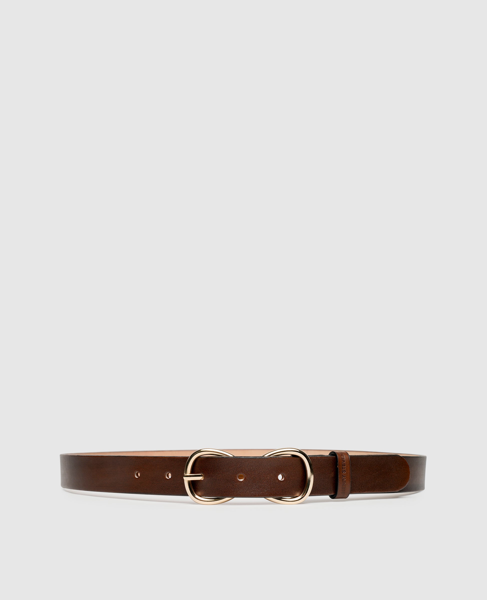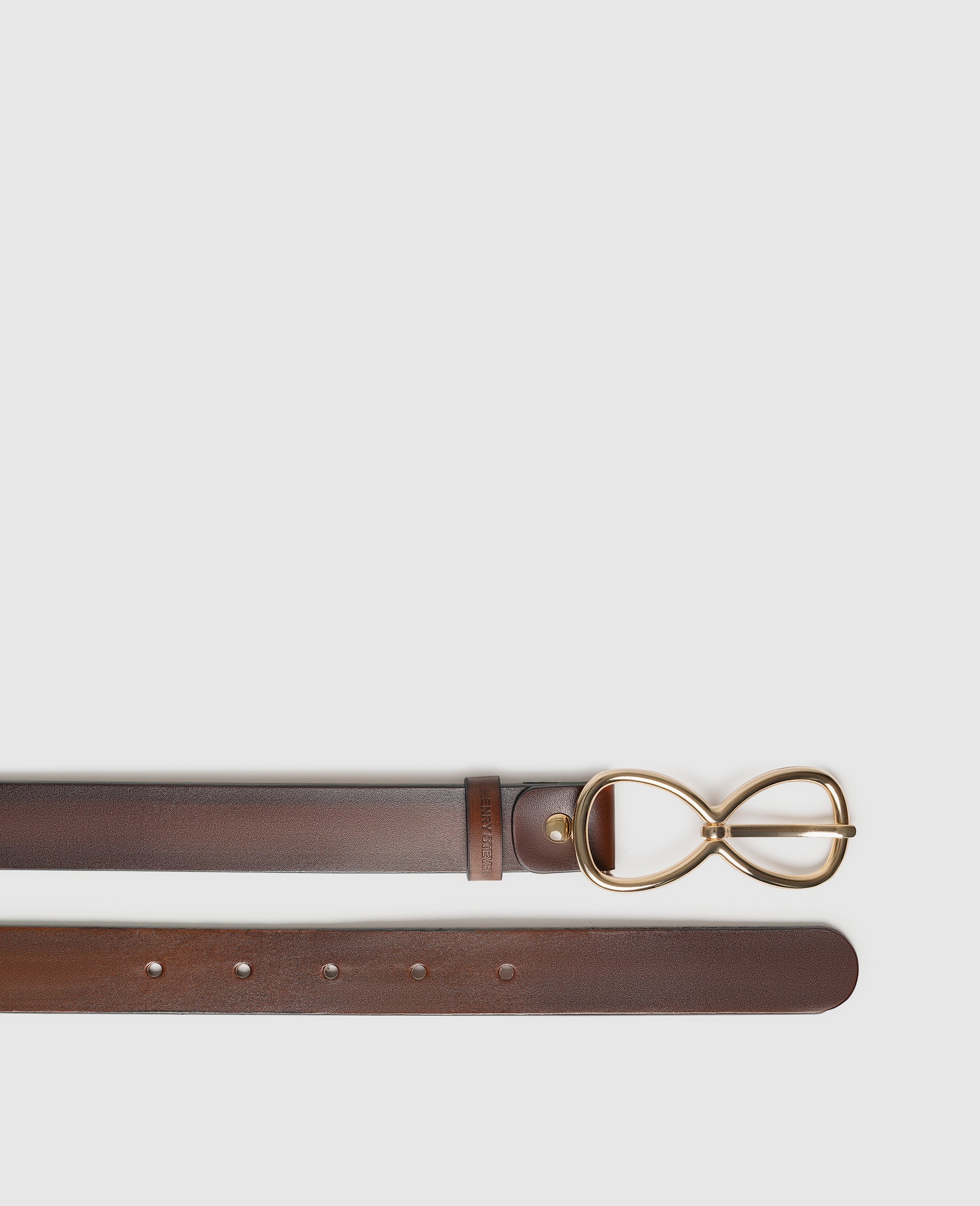 With an elegant, curved double buckle in gold, this handcrafted women's belt from Henry Stevens is sure to add a special accent to any outfit. The exquisite smooth leather of the outer layer features fascinating shades of light and dark, while the inside of this stitched, two-layer full leather belt is made from natural calfskin. With a width of 25 mm, this women's belt is a subtle, delicate accessory.