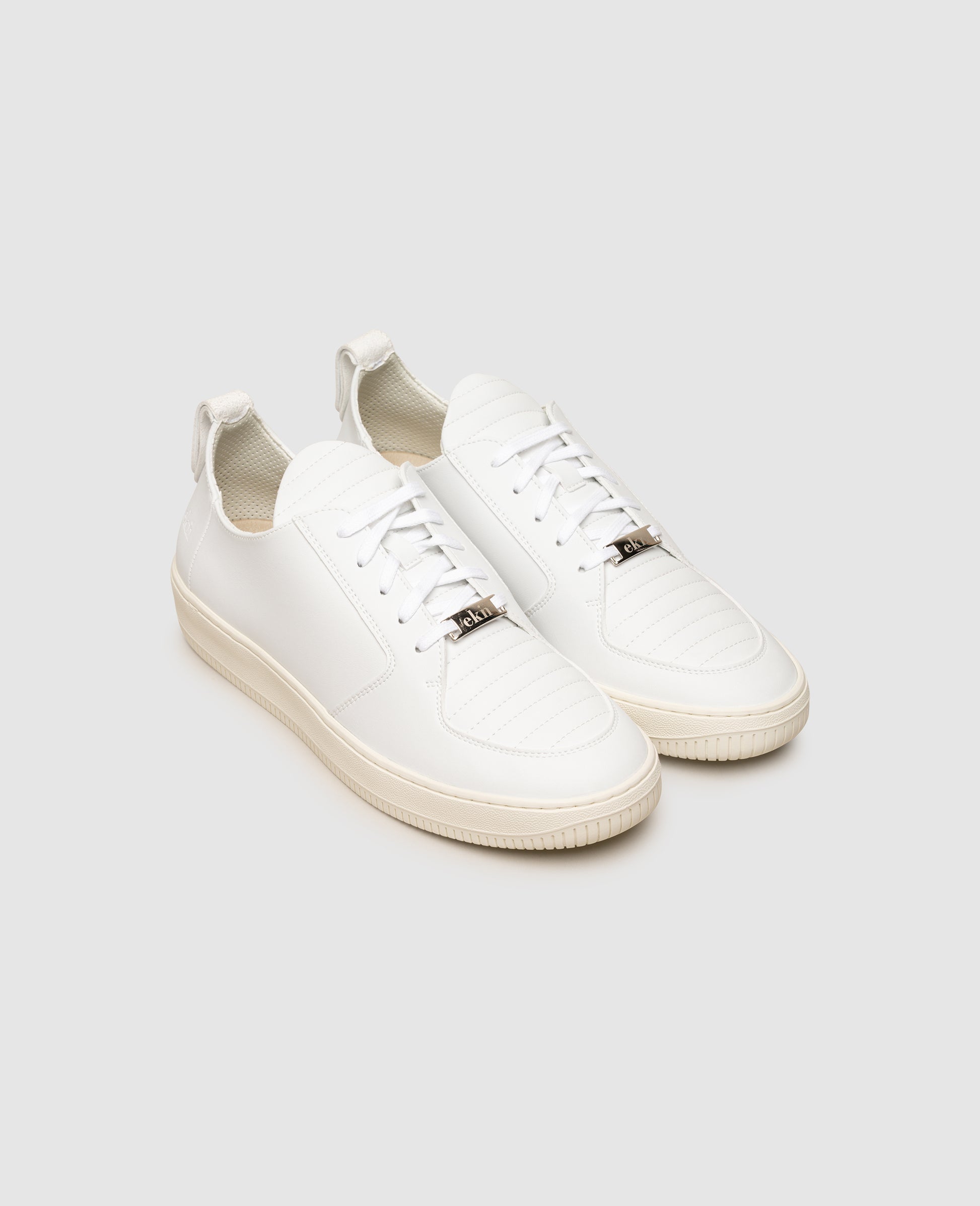 The streamlined design of the Argan Low Sutri model inspires a wide range of possible style combinations for both men and women. Horizontal stitching runs across the tongue and forefoot, creating a casual striped look, while a rectangular metal plaque with the ekn lettering provides an additional eye-catching feature. The recycled sole is slightly raised and suggests comfort even from the first glance.