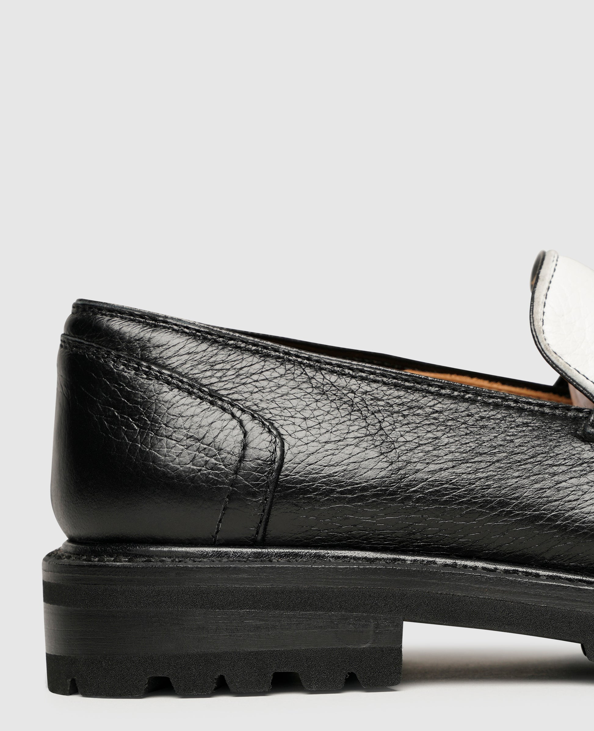 This Goodyear welted penny loafer by Henry Stevens combines flexible dynamics with classic charm. The shoe for ladies in black-and-white impresses with its smooth and soft deerskin. Your feet experience a special kind of well-being inside the shoe, as the inner material made of vegetable-tanned leather comfortably supports them. You get the best experience with this comfortable footbed made of leather, because the rubber outsole is highly flexible in the forefoot area, particularly wear-resistant and provides ideal support. Handcrafted in Spain, these slip-on shoes will add the perfect finishing touch to your casual looks.