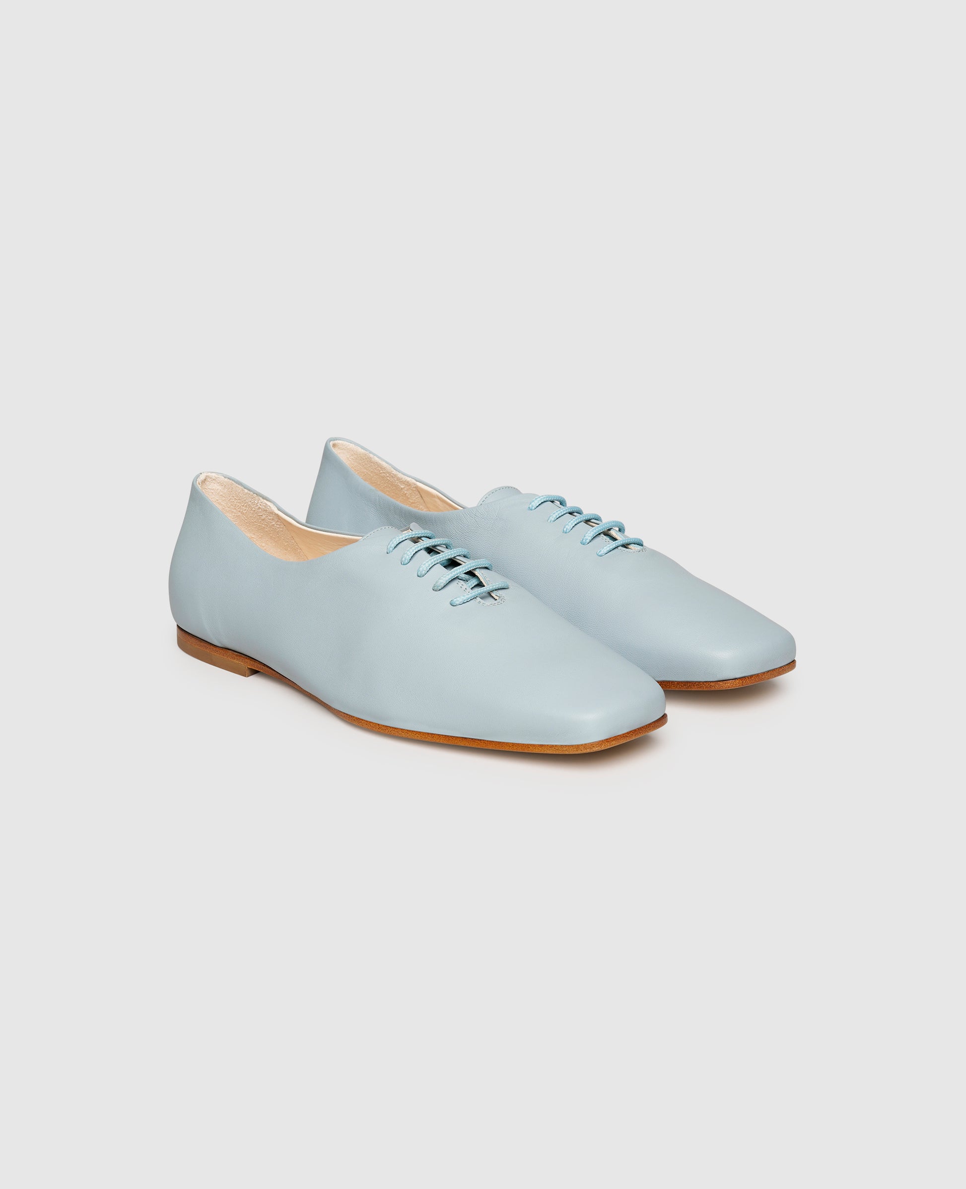 Henry Stevens combines elegance and comfort in this plain wholecut. Together with the fully compostable and skin-friendly organic leather lining and a comfortable footbed with memory foam, the shoe made in Italy guarantees modern lightness. This ice-blue shoe model for ladies impresses with its 5-hole lacing and the smooth and elegant goat nappa. Thanks to the natural leather outsole, you don't have to miss out on comfort even during long walks. Their fascinating aesthetic predestines these lace-up shoes for sophisticated summer and leisure looks.