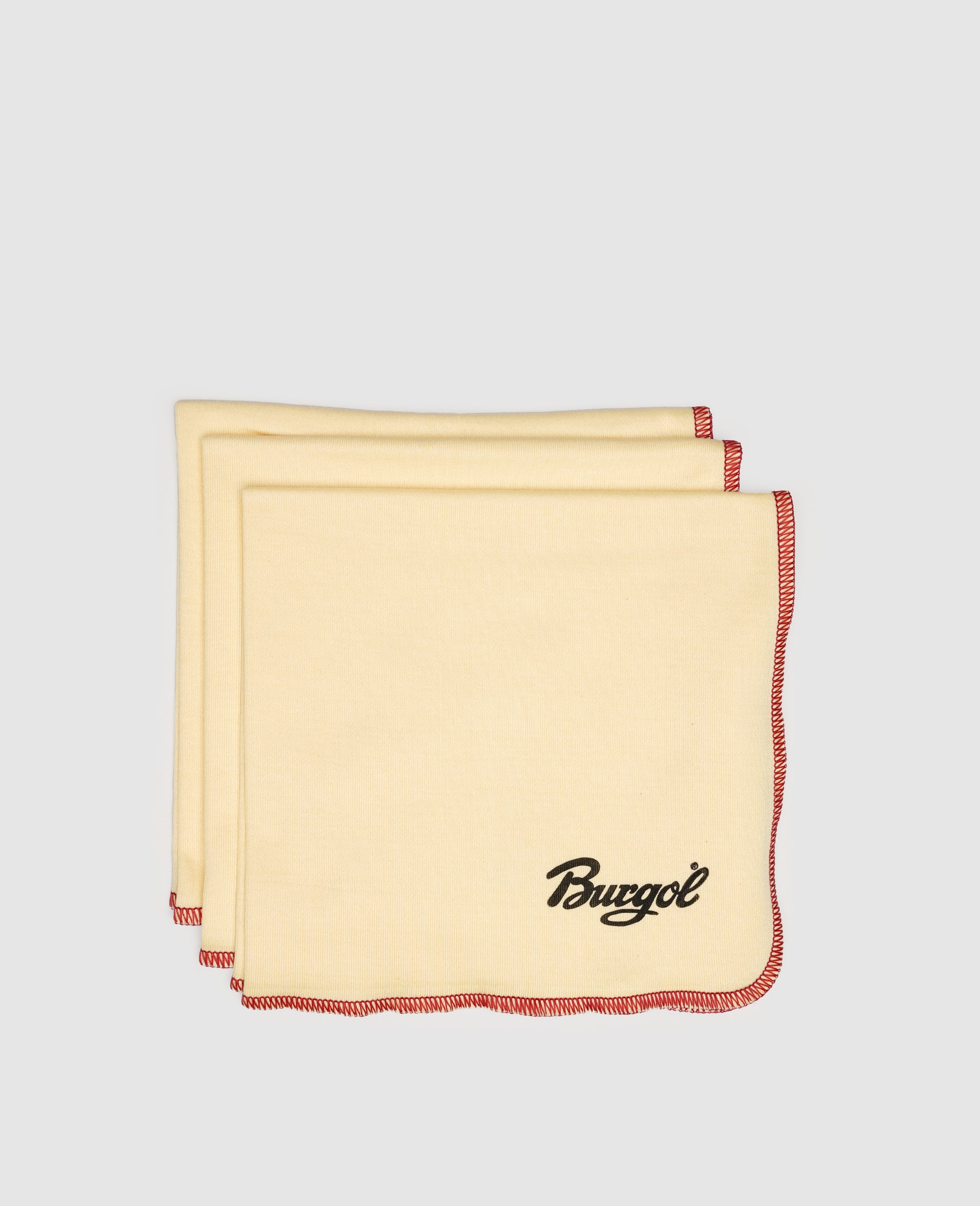 The square, light yellow shoe cleaning cloth measuring 40x40 centimetres not only removes dirt and other residues from your shoes, but also polishes them to a high shine. In a practical set of 3.