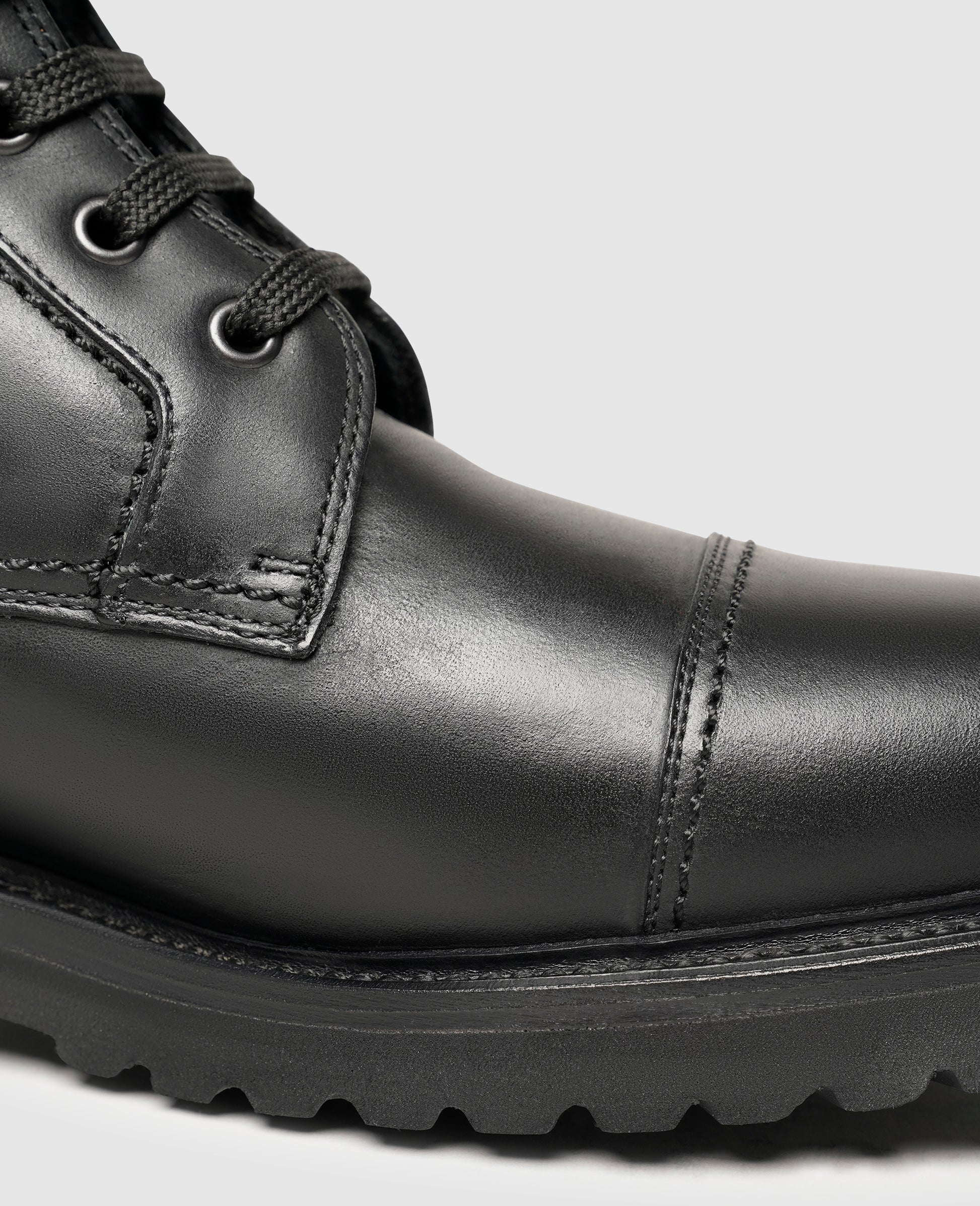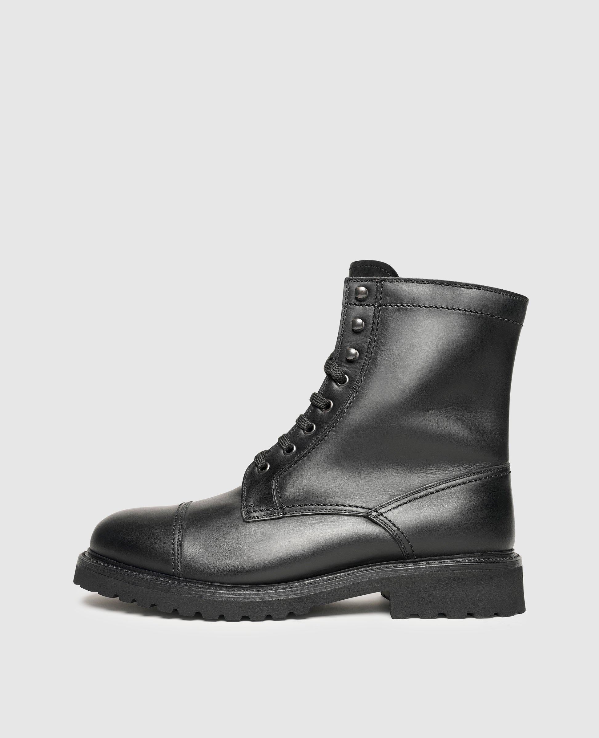 Make your way through the cold and wet season in style with these sturdy lace-up boots from Henry Stevens. The water-repellent, oiled nubuck of the upper is extremely hard-wearing and is complemented by a rugged rubber profile sole. The high hook-and-eye lacing provides the wearer with sufficient support beyond the ankle, while the soft shearling lining inside protects feet from the cold. The on-trend design of these boots is accentuated by decorative stitching on the toe cap.