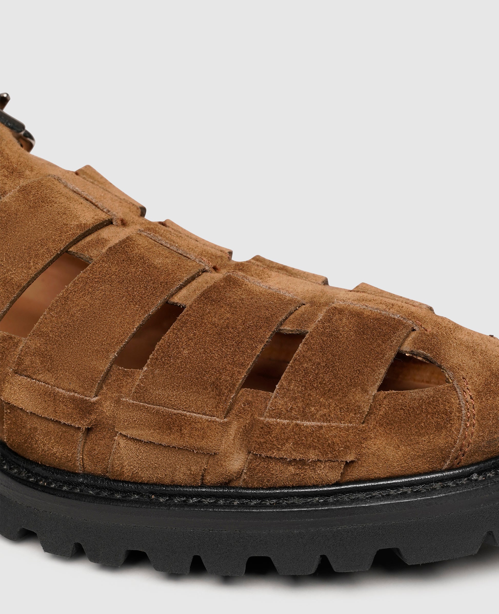 These Goodyear welted sandals by Henry Stevens are just the thing for a relaxed time on hot summer days. Together with a comfortable leather footbed and a vegetable-tanned and breathable leather lining, the shoes, handcrafted in Spain, promise modern ease and comfort. The brown shoe for men is adjusted in width by straps made of grainy and velvety calfskin velours and a buckle. A nonslip rubber outsole ensures that your feet won't get tired even after a long day. These sandals provide the perfect finishing touch to your casual looks.
