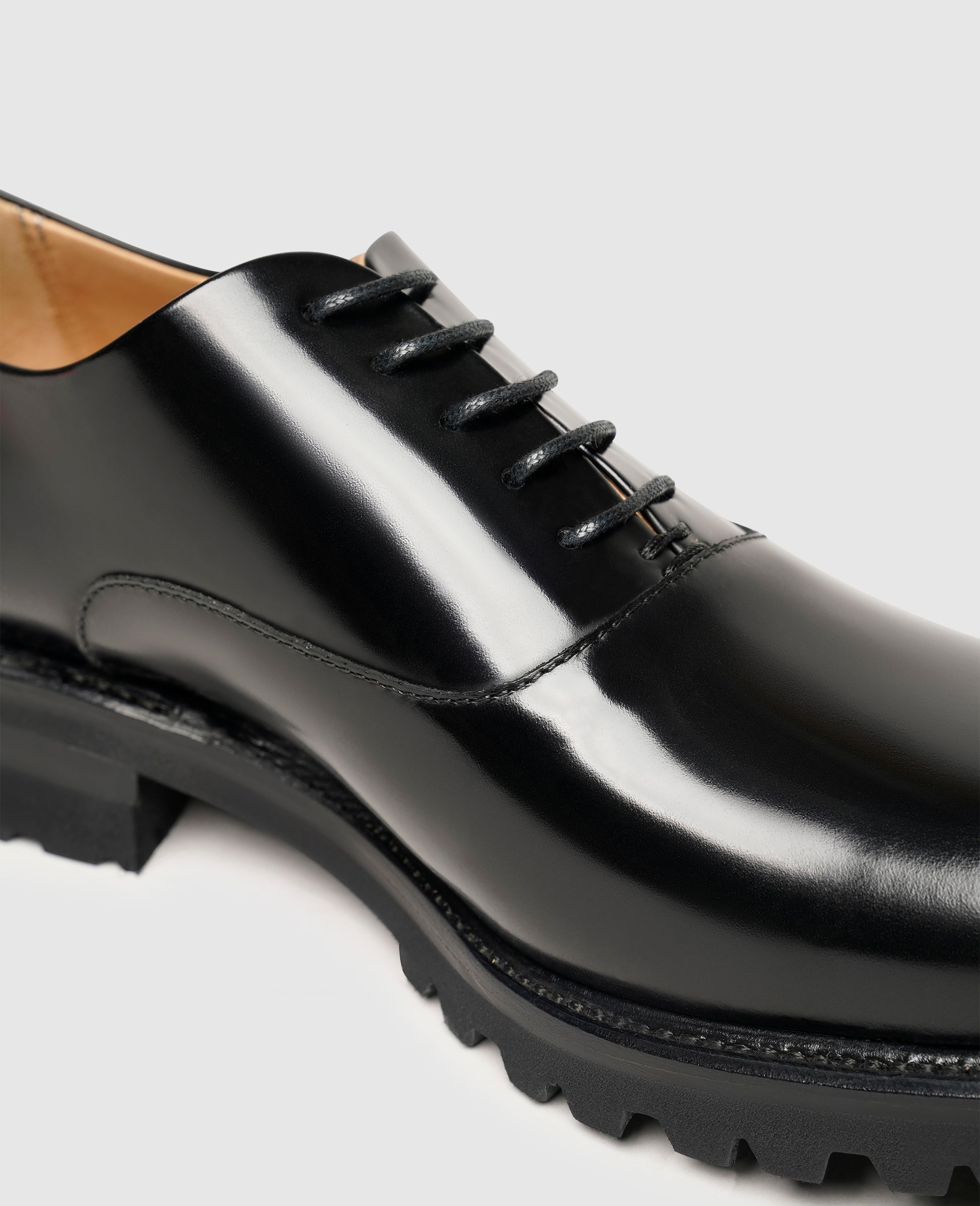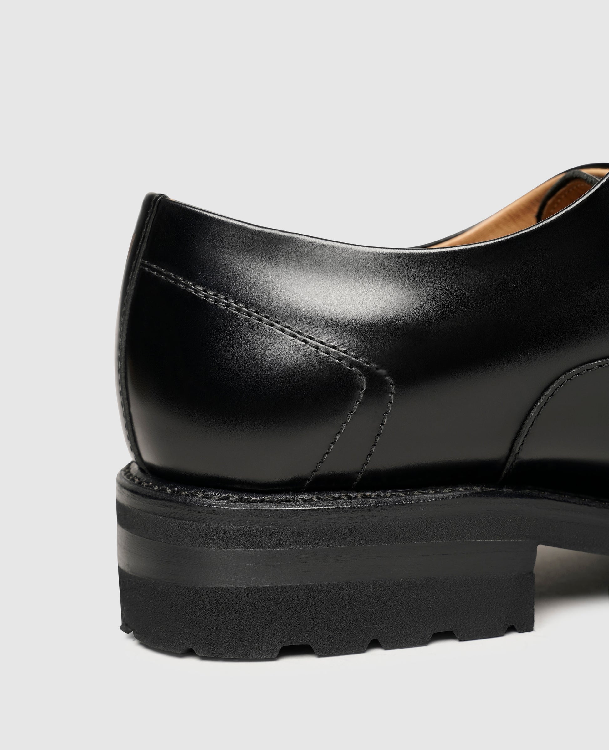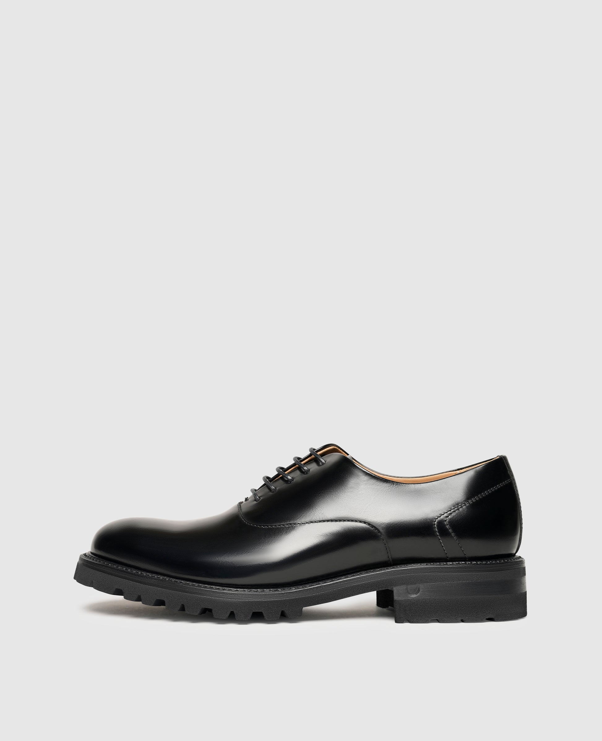 This Goodyear-welted plain Oxford from the "Industrial Lux" line by Henry Stevens has been given a modern twist. The supple leather upper of this handcrafted men's shoe features a satin finish that is accentuated by the model's elegant, closed lacing. The wide rubber profile sole is strikingly distinctive and transforms this traditional shoe classic into a charming cosmopolitan choice. Carefully sourced materials and sustainable European manufacturing round off the exceptional qualities of this shoe.