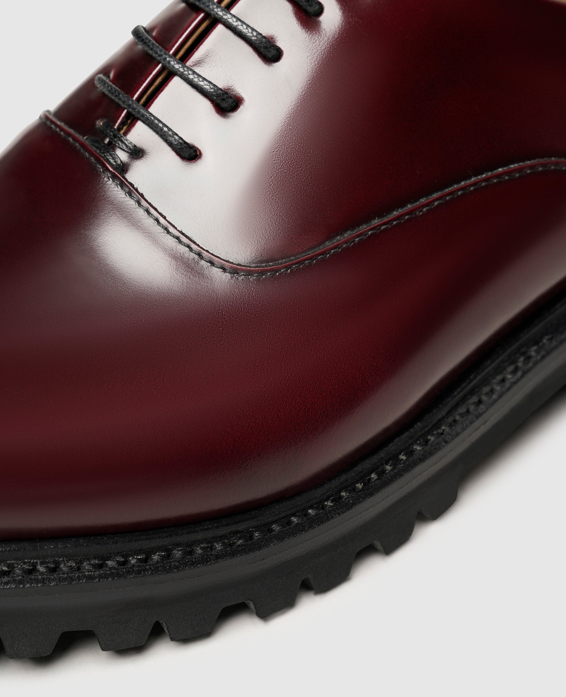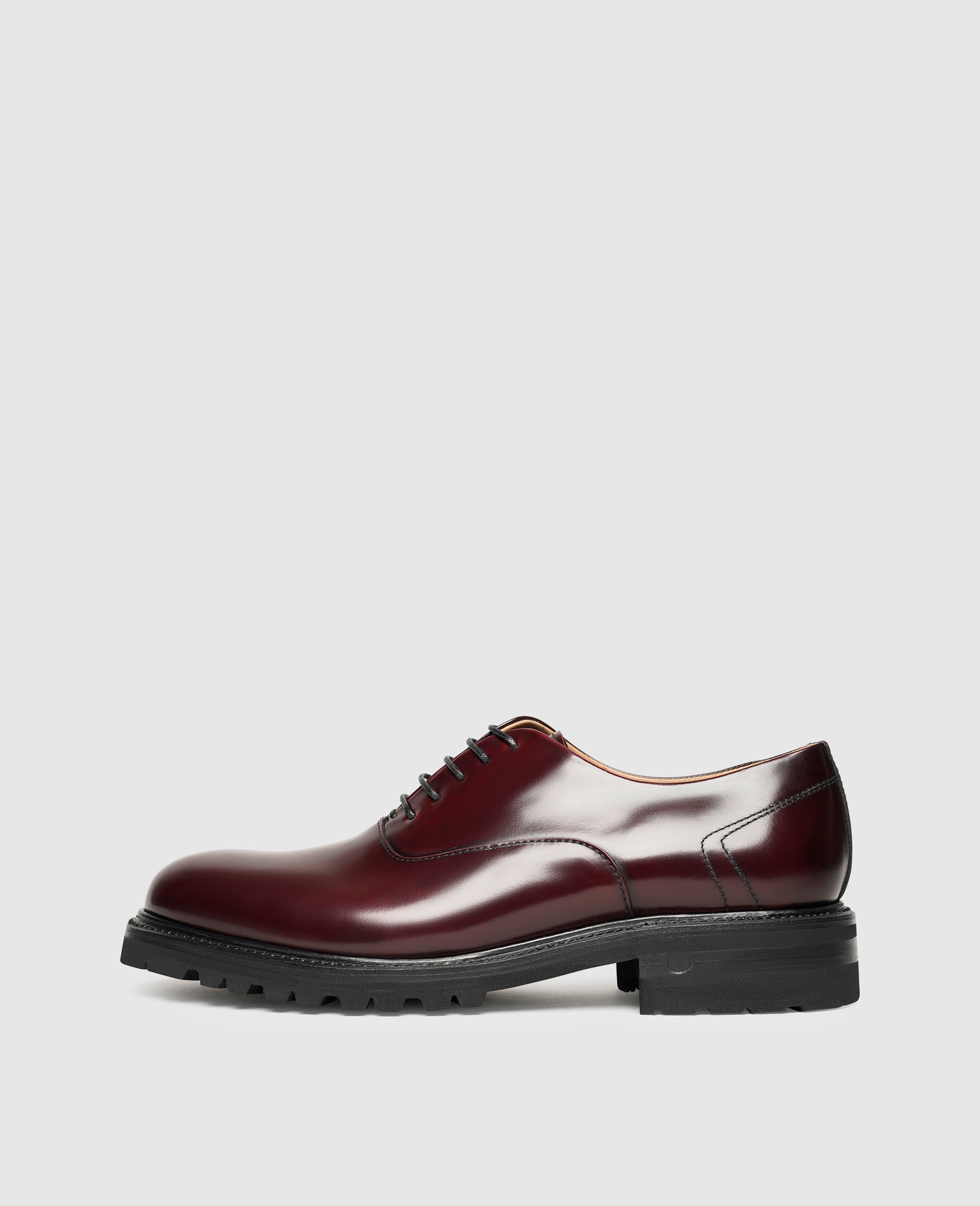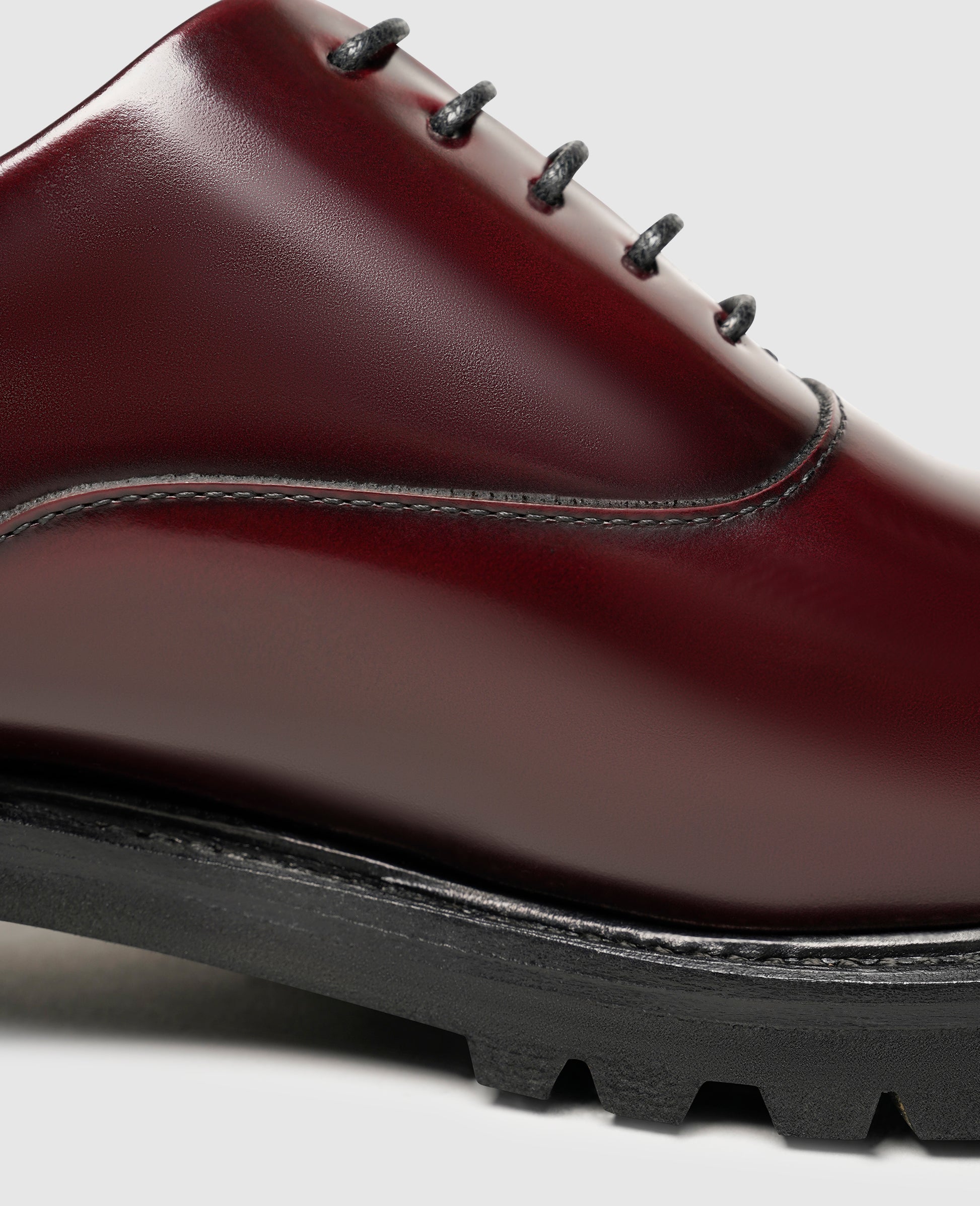 This Goodyear-welted plain Oxford from the "Industrial Lux" line by Henry Stevens has been given a modern twist. The supple leather upper of this handcrafted men's shoe features a satin finish that is accentuated by the model's elegant, closed lacing. The wide rubber profile sole is strikingly distinctive and transforms this traditional shoe classic into a charming cosmopolitan choice. Carefully sourced materials and sustainable European manufacturing round off the exceptional qualities of this shoe.