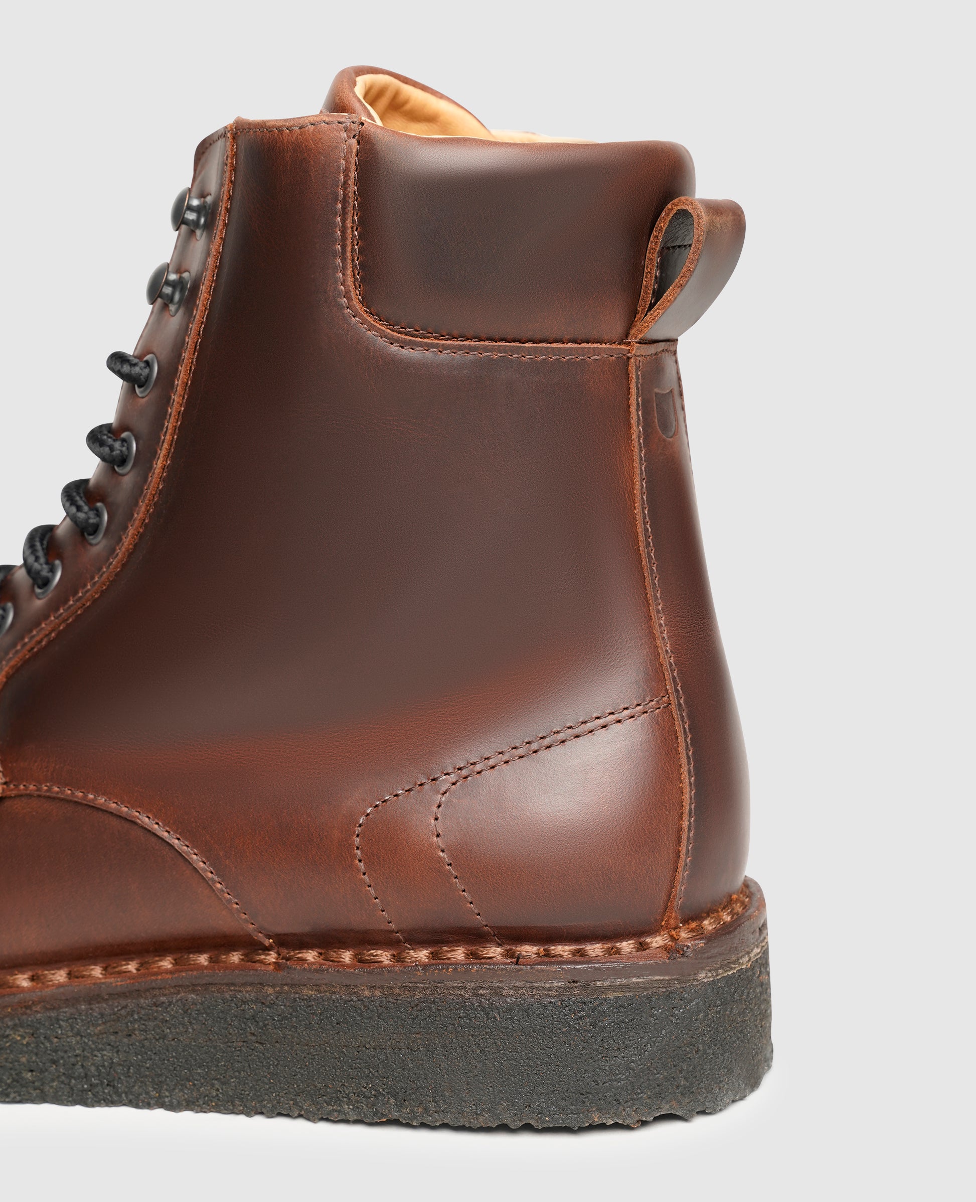 Modern flair and a high level of comfort are guaranteed with these flexible stitched plain Derby boots from Henry Stevens. These handcrafted men's boots with their sporty hook-and-eye lacing impress even in wet and cold weather thanks to their greased smooth leather. Inside the model, a vegetable-tanned, skin-friendly lining made from organic leather ensures for all-round comfort. The practical interchangeable footbed with memory foam can be easily removed if required.