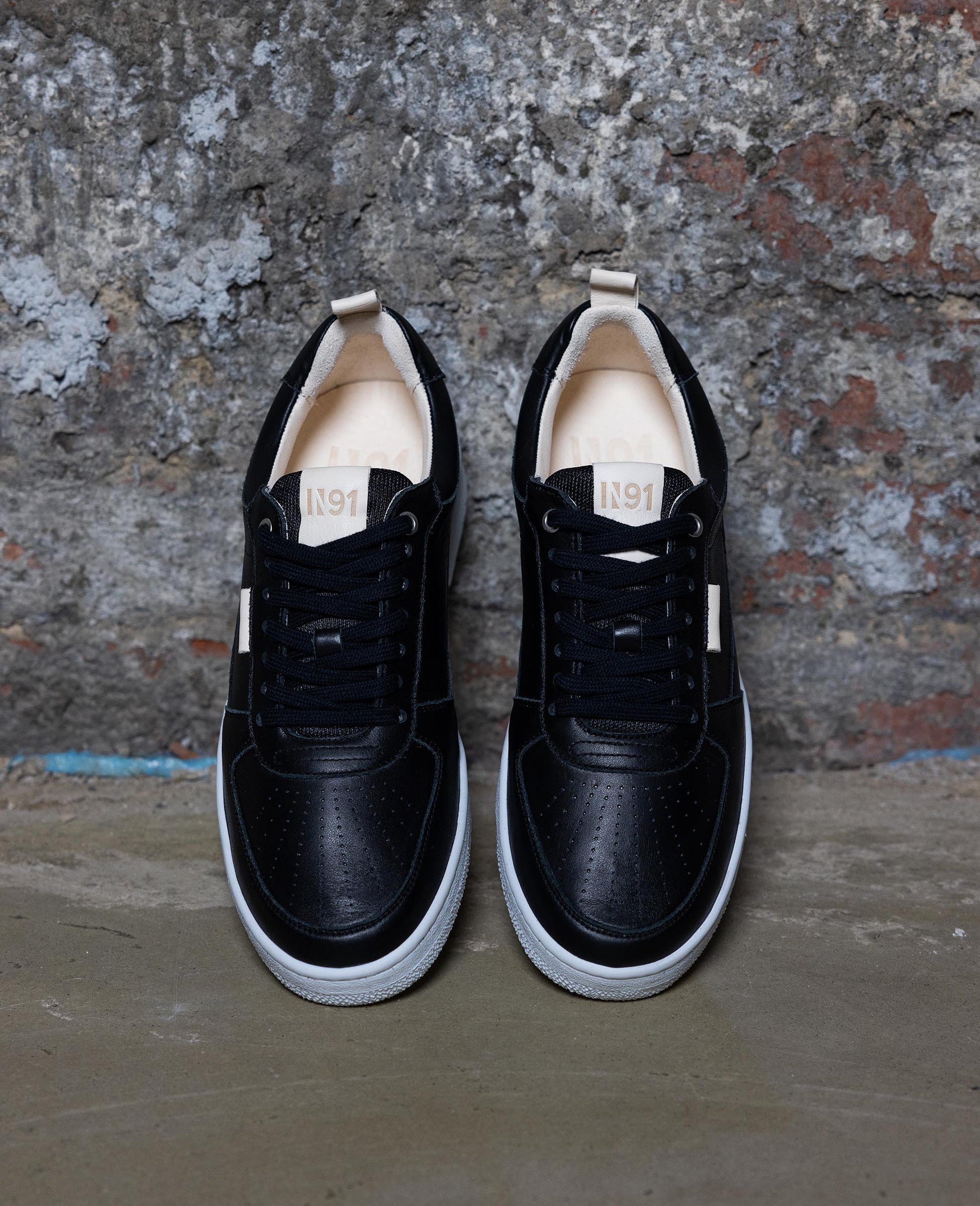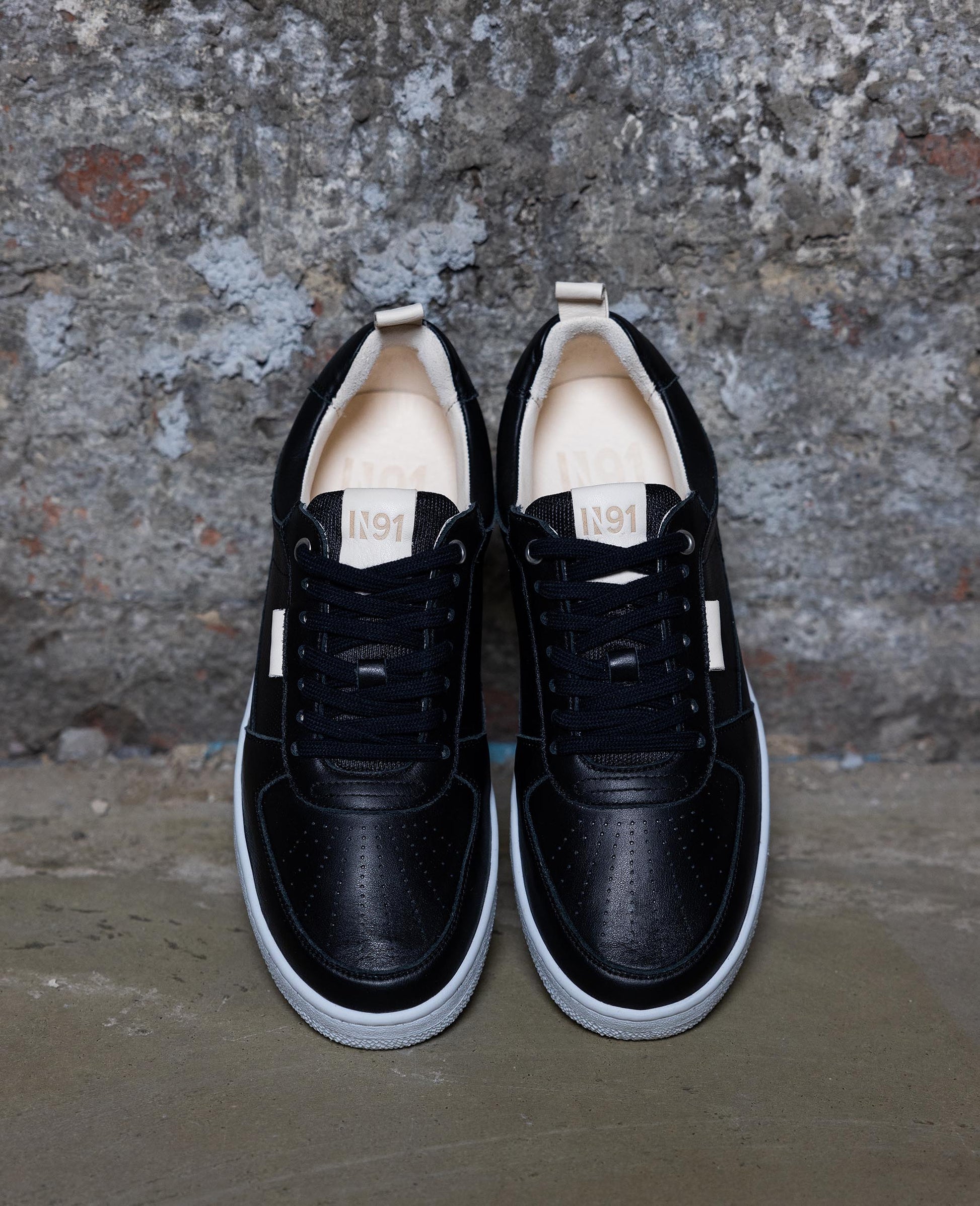 The successful interplay of comfort and design quickly turns this sneaker by N91 into your daily companion! This black shoe model for men speaks for itself with its elegant lacing and the mix of supple calfskin and robust textile. Inside the shoe, you are received by vegetable-tanned organic leather, which is fully compostable. Not only does the sure-footed rubber outsole ensure special comfort, but the soft interchangeable leather footbed also guarantees an unforgettable walking experience. Made in Portugal, these casual lace-up shoes are versatile yet easygoing.