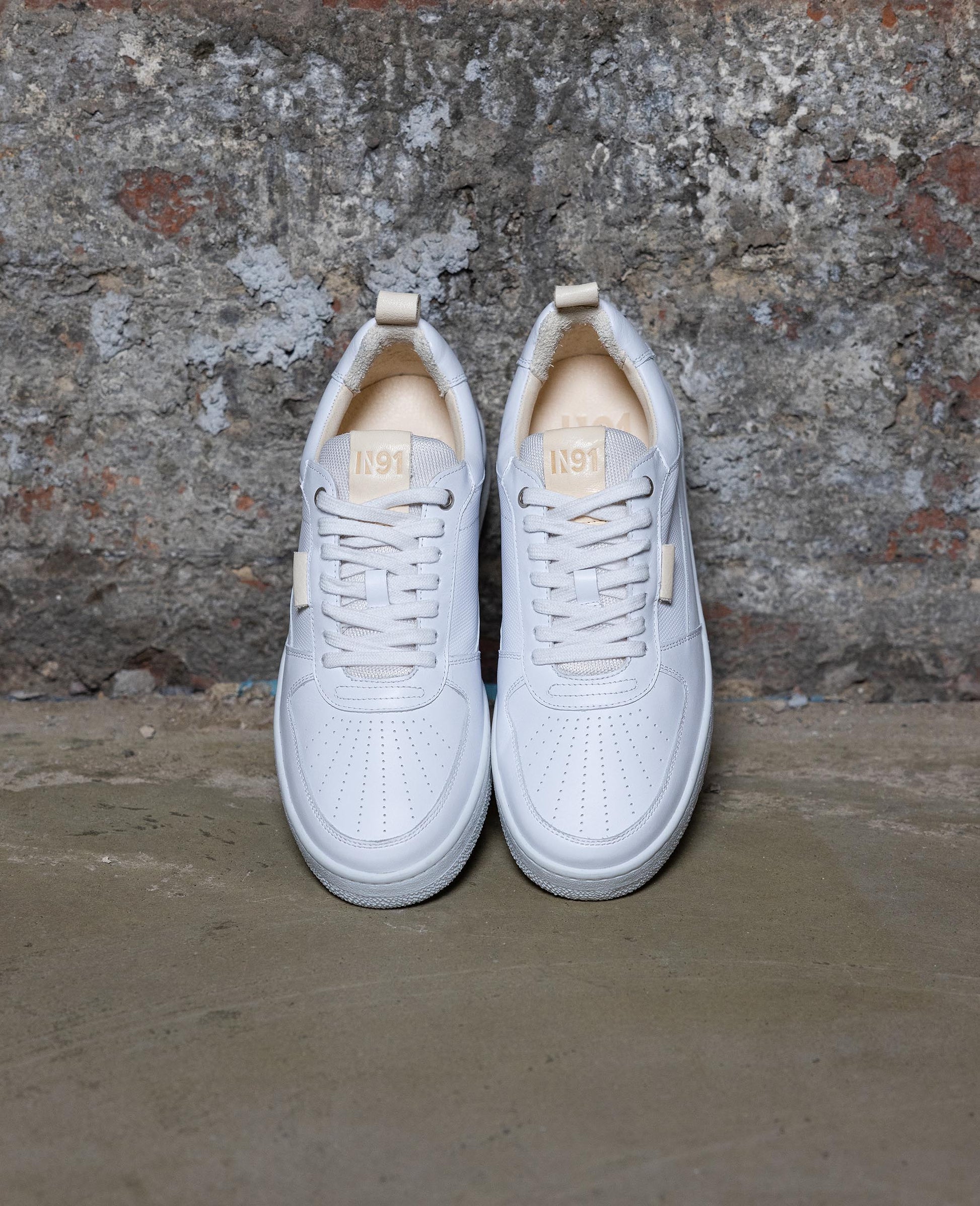 The successful interplay of comfort and design quickly turns this sneaker by N91 into your daily companion! This white shoe model for men speaks for itself with its elegant lacing and the mix of soft calfskin and robust textile. Inside, organic leather not only ensures a pleasant shoe climate, it is also particularly skin-friendly and fully compostable. The soft leather exchangeable footbed ensures outstanding comfort while walking and thanks to the sure-footed rubber outsole, a secure step is also guaranteed. Throughout the year, this lace-up shoe, made in Portugal, is the perfect addition to your casual looks.