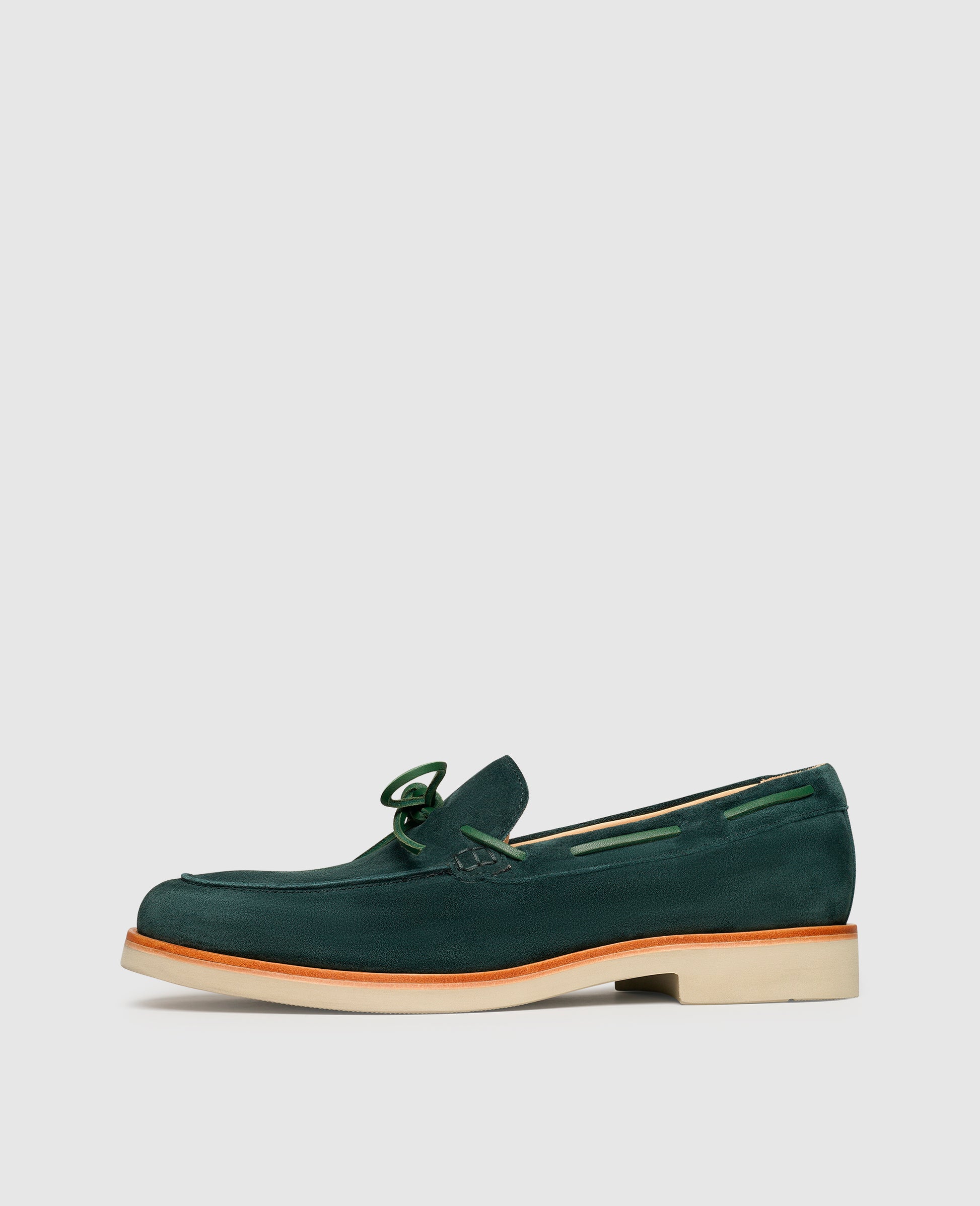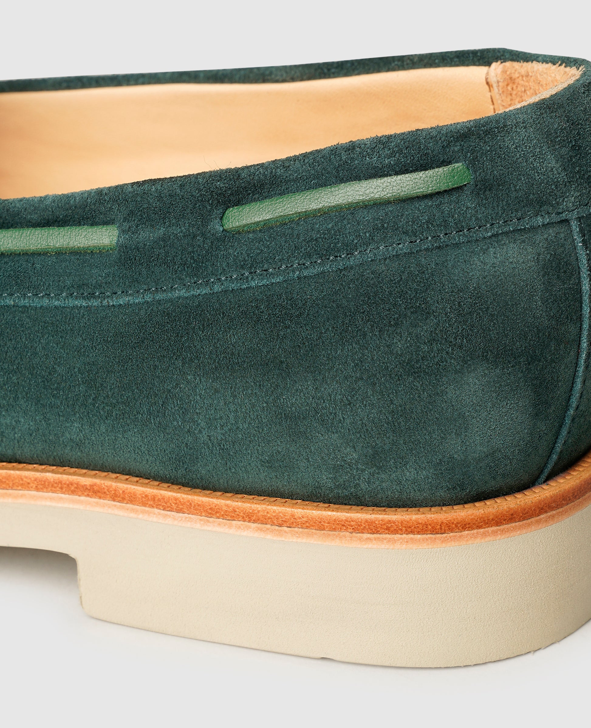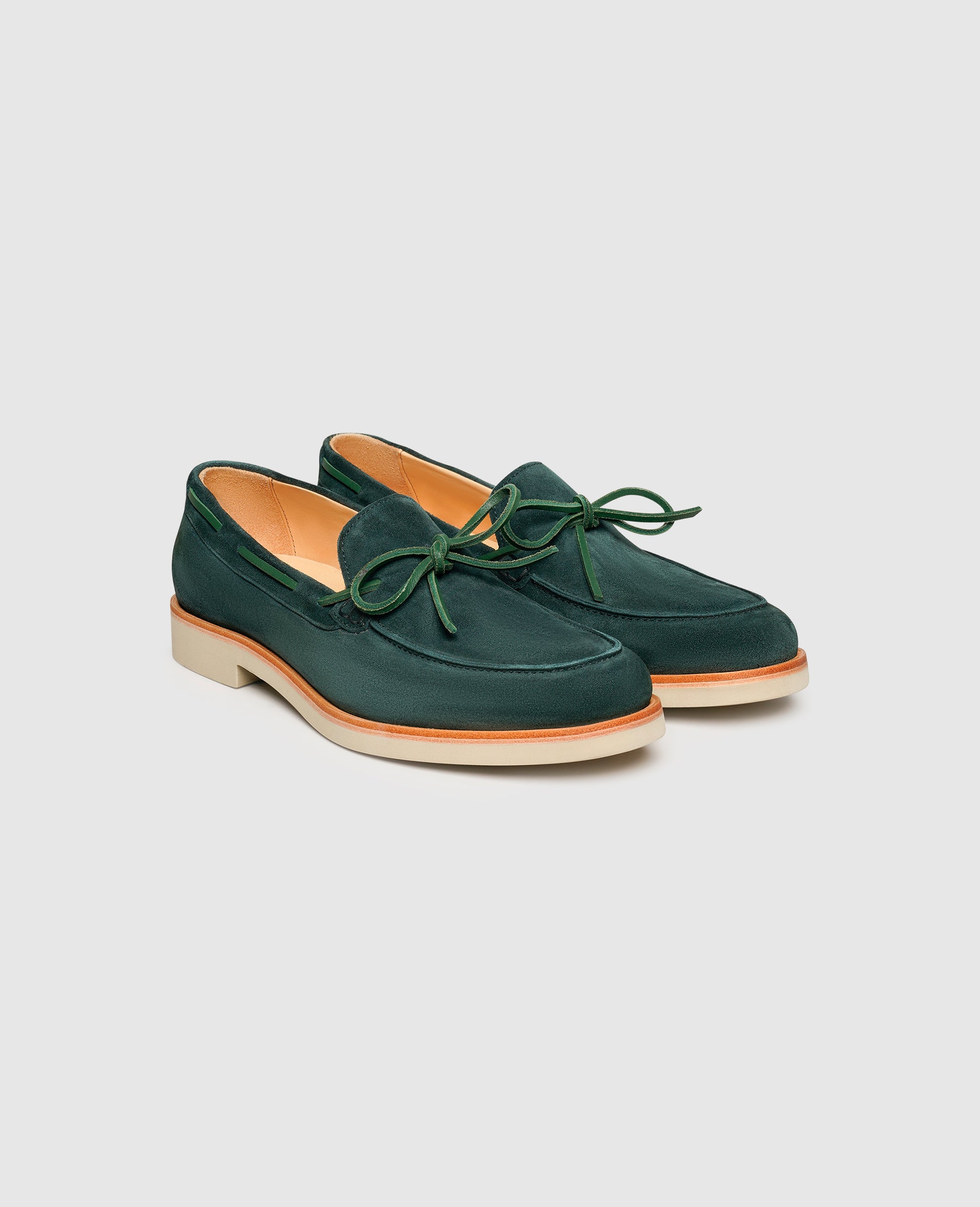 Dynamic flair surrounds this boat shoe by Henry Stevens. The shoe was made in Portugal and guarantees modern lightness thanks to the fully compostable and skin-friendly organic leather lining and the comfortable footbed with memory foam. The green shoe for men speaks for itself thanks to its grainy and velvety calfskin velours. Thanks to the sure-footed rubber outsole, you don't have to miss out on comfort even during long walks. Throughout the year, this slip-on shoe is the perfect addition to your casual leisure looks.