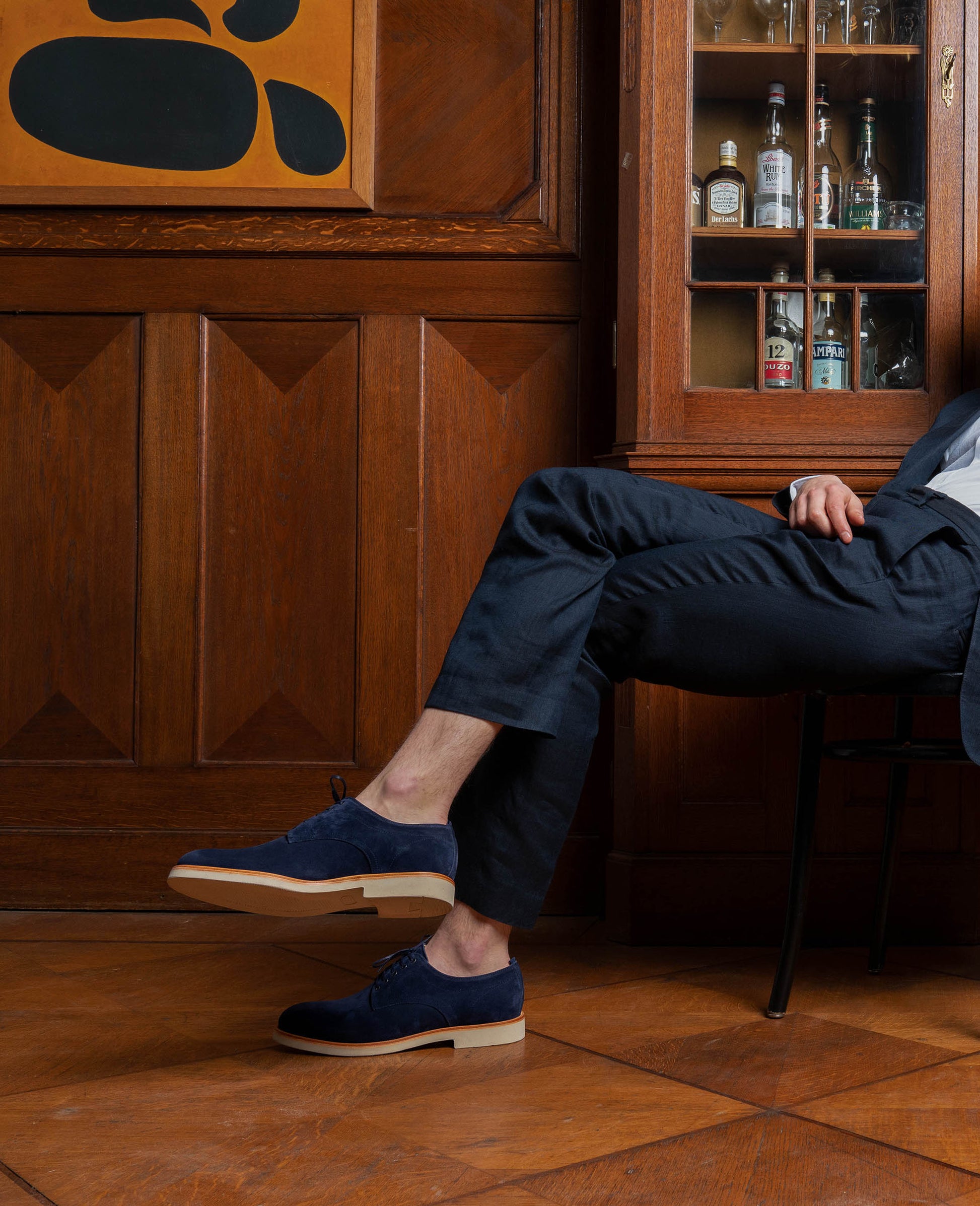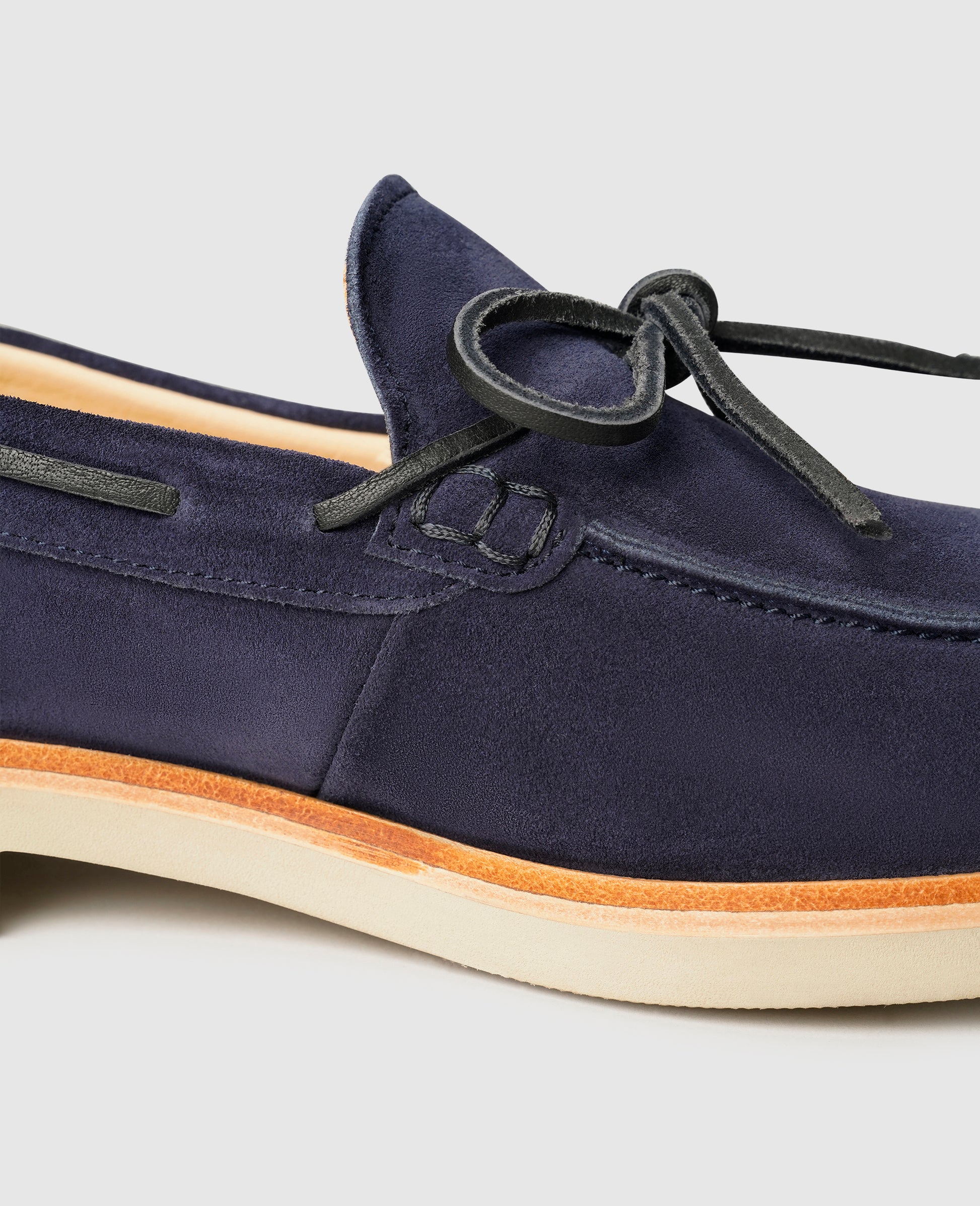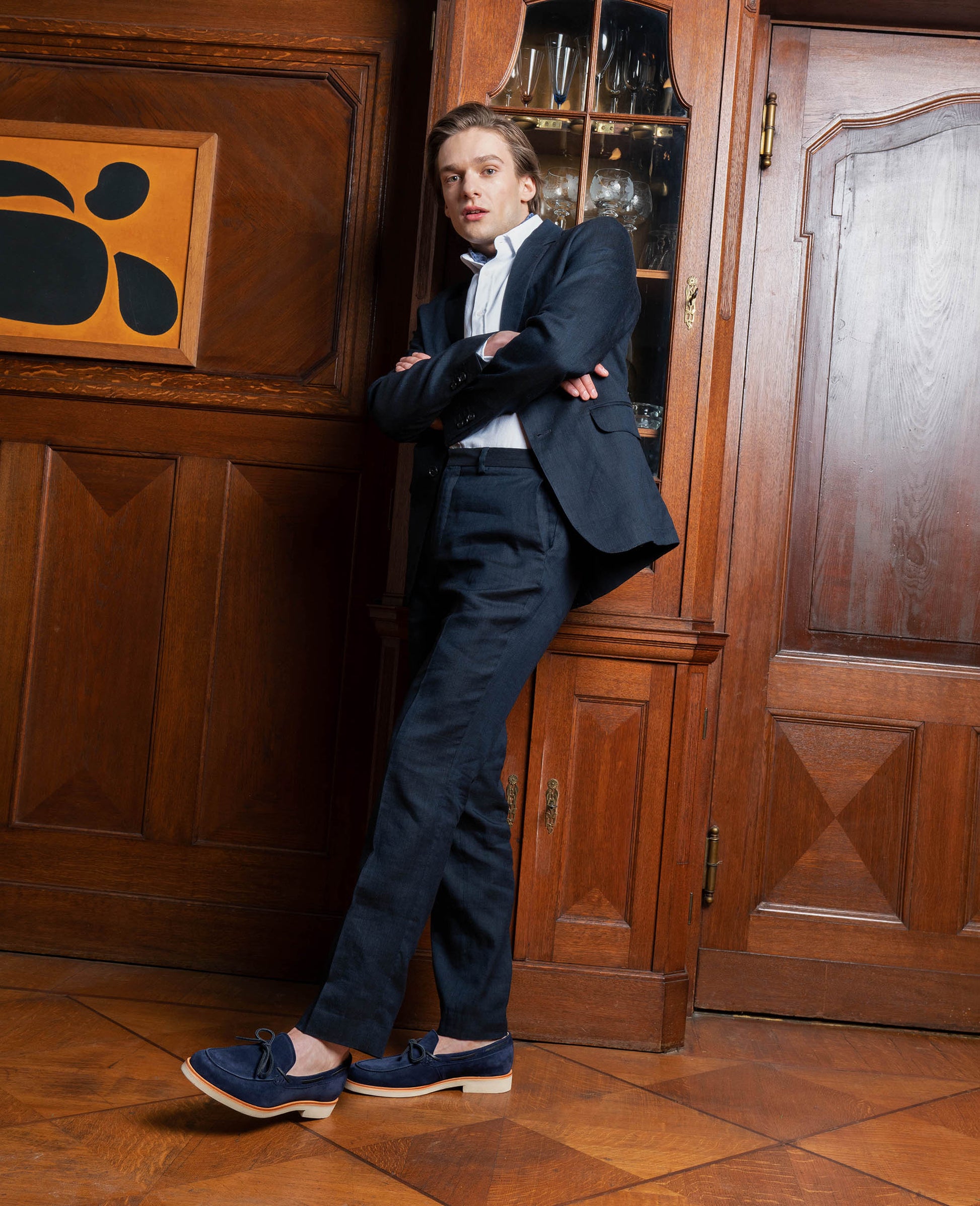 These boat shoes by Henry Stevens are just the thing for a relaxed time on hot summer days. Together with the fully compostable and skin-friendly organic leather lining and a comfortable footbed with memory foam, the shoe made in Portugal guarantees modern lightness. The dark blue shoe for men speaks for itself thanks to its grainy and velvety calfskin velours. Thanks to the sure-footed rubber outsole, you don't have to miss out on comfort even during long walks. Easygoing and versatile, these casual slip-on shoes will win you over!