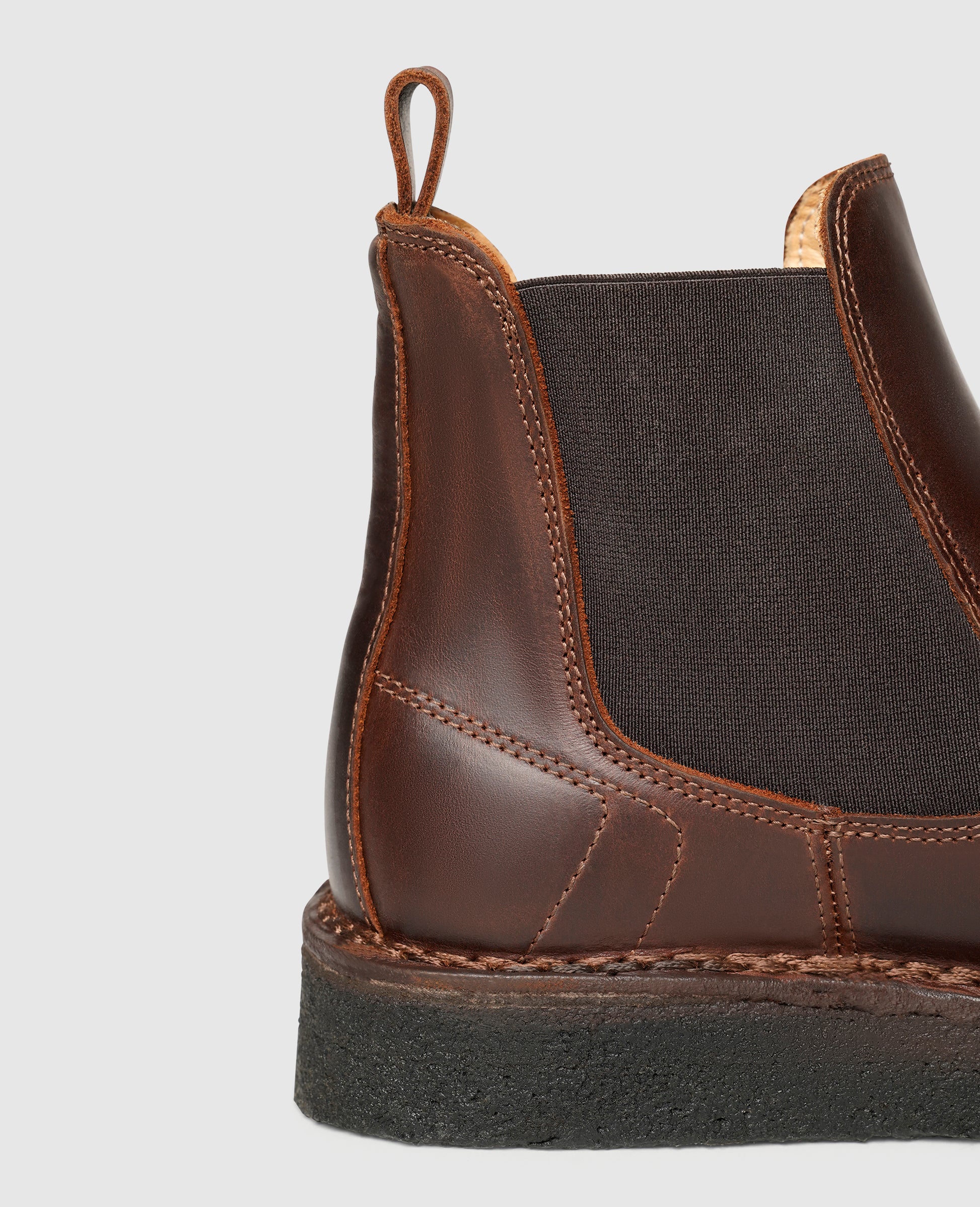In this model, Henry Stevens combines the famous nonchalance of the Chelsea boot with a flexible sole construction. On the upper, greased smooth leather ensures high durability, even in wet conditions, while also impressing with its enchanting shades of light and dark. The flexibly stitched crepe sole guarantees maximum comfort and is sturdy and non-slip even on slippery paths. The icing on the cake: The inner lining is made of skin-friendly, breathable organic leather and is complemented by a practical interchangeable footbed with memory foam.