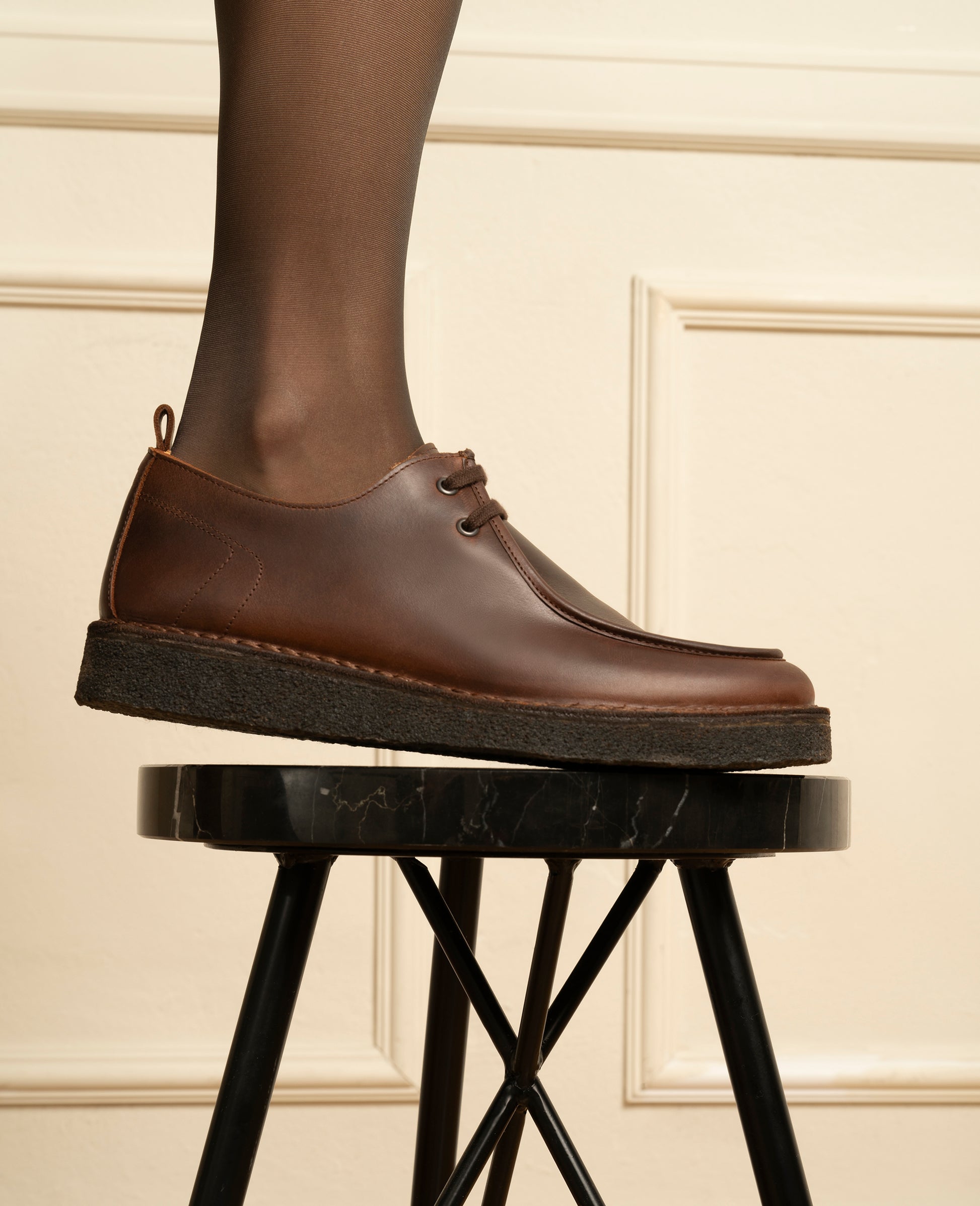 In this model, Henry Stevens adds a modern crepe sole to the classic Norwegian lace-up shoe with its renowned U-shaped split seam. Together with the greased smooth leather, the non-slip outsole promises the highest levels of comfort in the wet and cold season. The soft shades of color on the upper provide this shoe model with an additional dynamism. The exceptional comfort features of this striking lace-up shoe for women are supported by a vegetable-tanned, skin-friendly organic inner leather as well as a practical interchangeable footbed with memory foam.