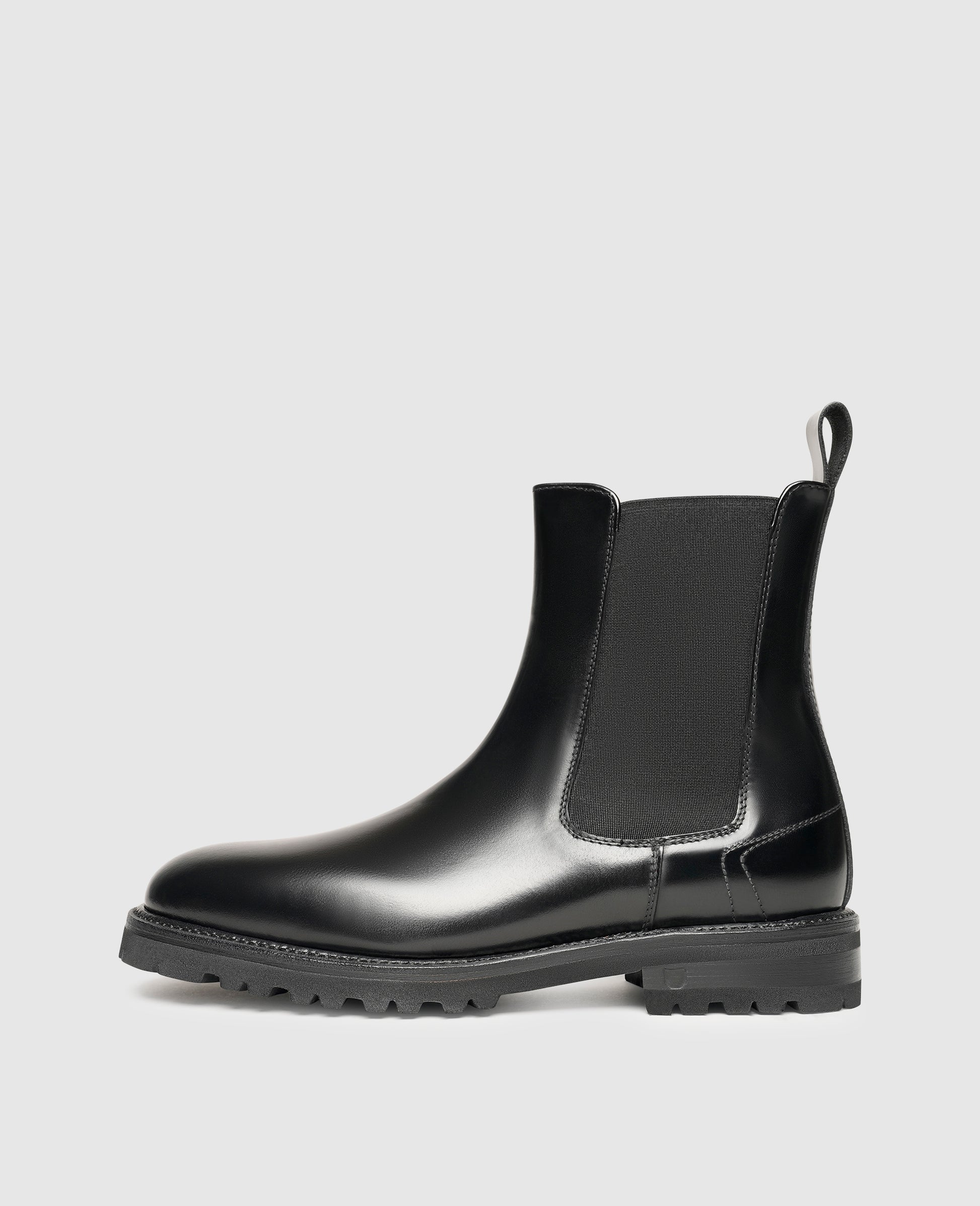 This Chelsea boot for women from Henry Stevens' "Industrial Lux" line is a stylish companion for more than just those cold and wet days of the year. These classic women's boots can be combined equally well with both business and leisure wear. A satin-finish calfskin adorns the shaft, which also features the model's characteristic elastic side inserts, making the model easy to slip into. The rubber profile sole offers the wearer robust protection even on wet and slippery surfaces.