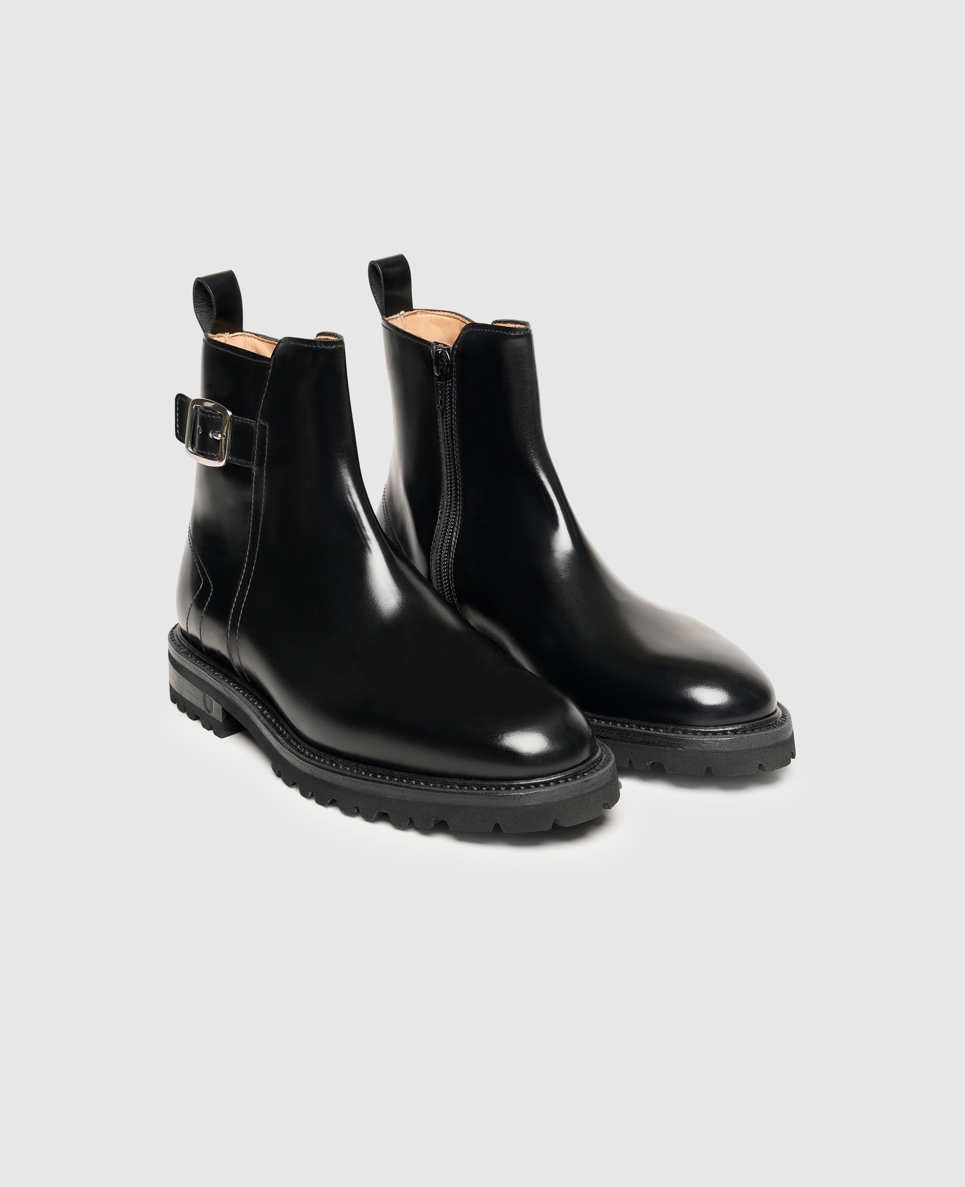 This traditional Jodhpur boot for women from the "Industrial Lux" line by Henry Stevens is a particularly stylish model for the autumn and winter days ahead. The rubber profile sole adds a special eye-catching touch to any outfit, while also ensuring the wearer is always well protected from the elements. The satin-finish calfskin leather and silver buckle detailing on the outside of the shaft add a touch of sophistication to these versatile women's boots.