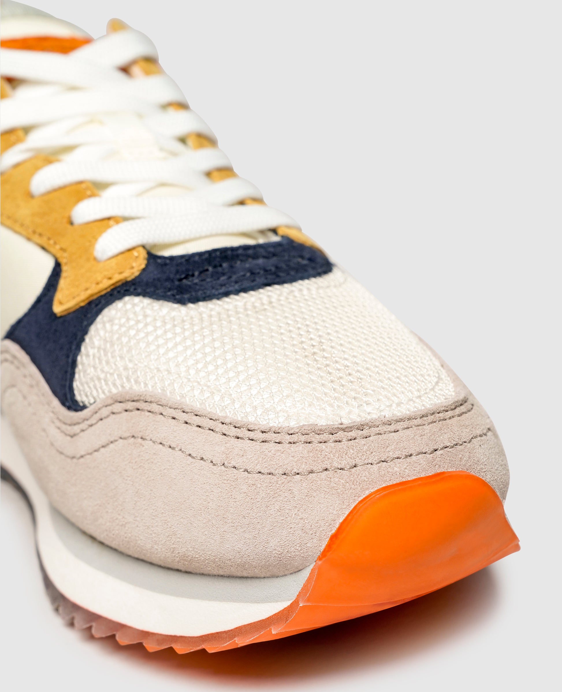 With this running shoe from Spanish brand HOFF you are sure to prove your bold commitment to color. The upper of this sporty model is a combination of sections made from soft velour, smooth leather, and textile. The padded collar and interchangeable footbed, which can be replaced with your own insoles if preferred, ensure a maximized feel-good experience. The label embossing on the heel cap and detailed rubber outsole are additional eye-catching features of this men's trainer.