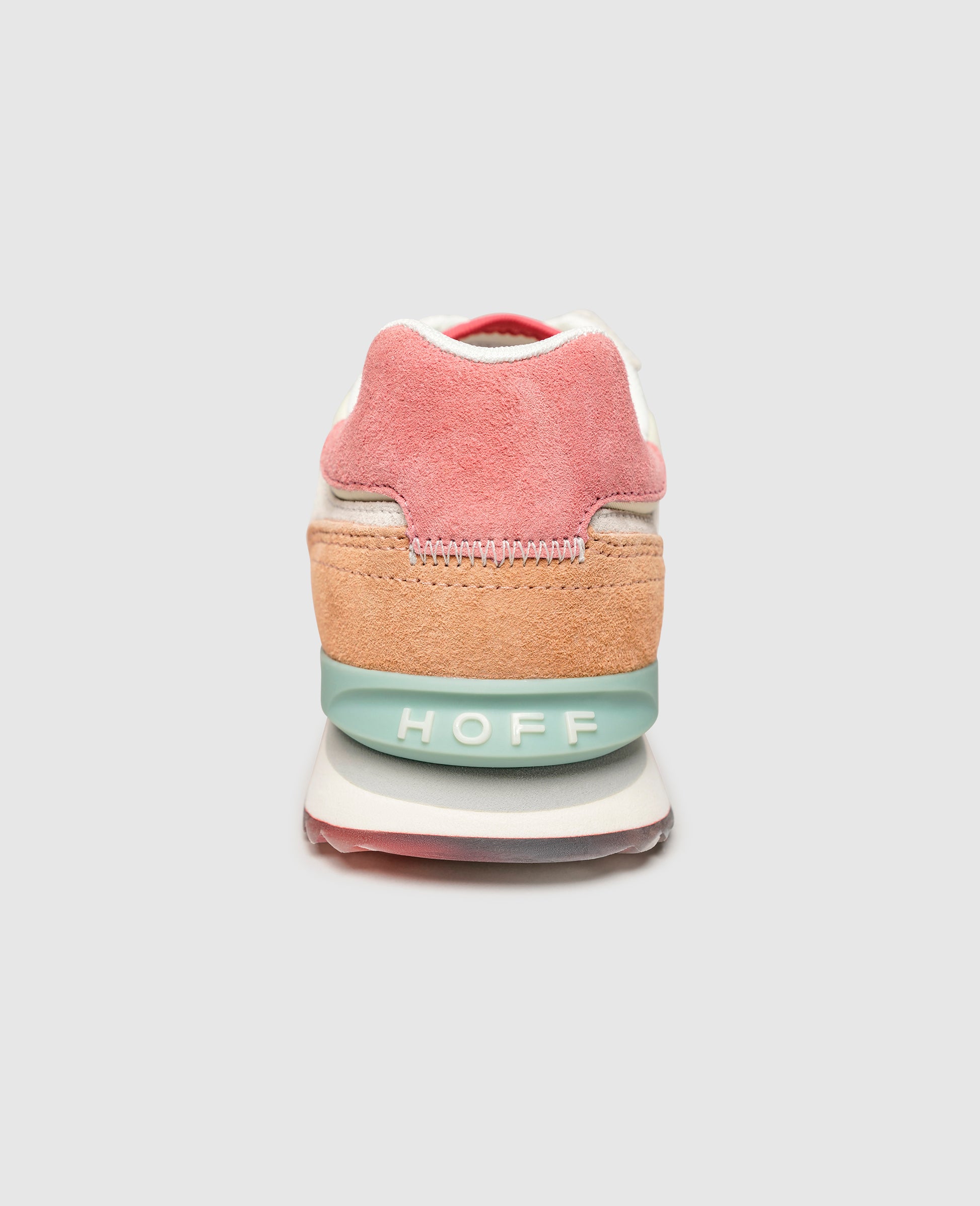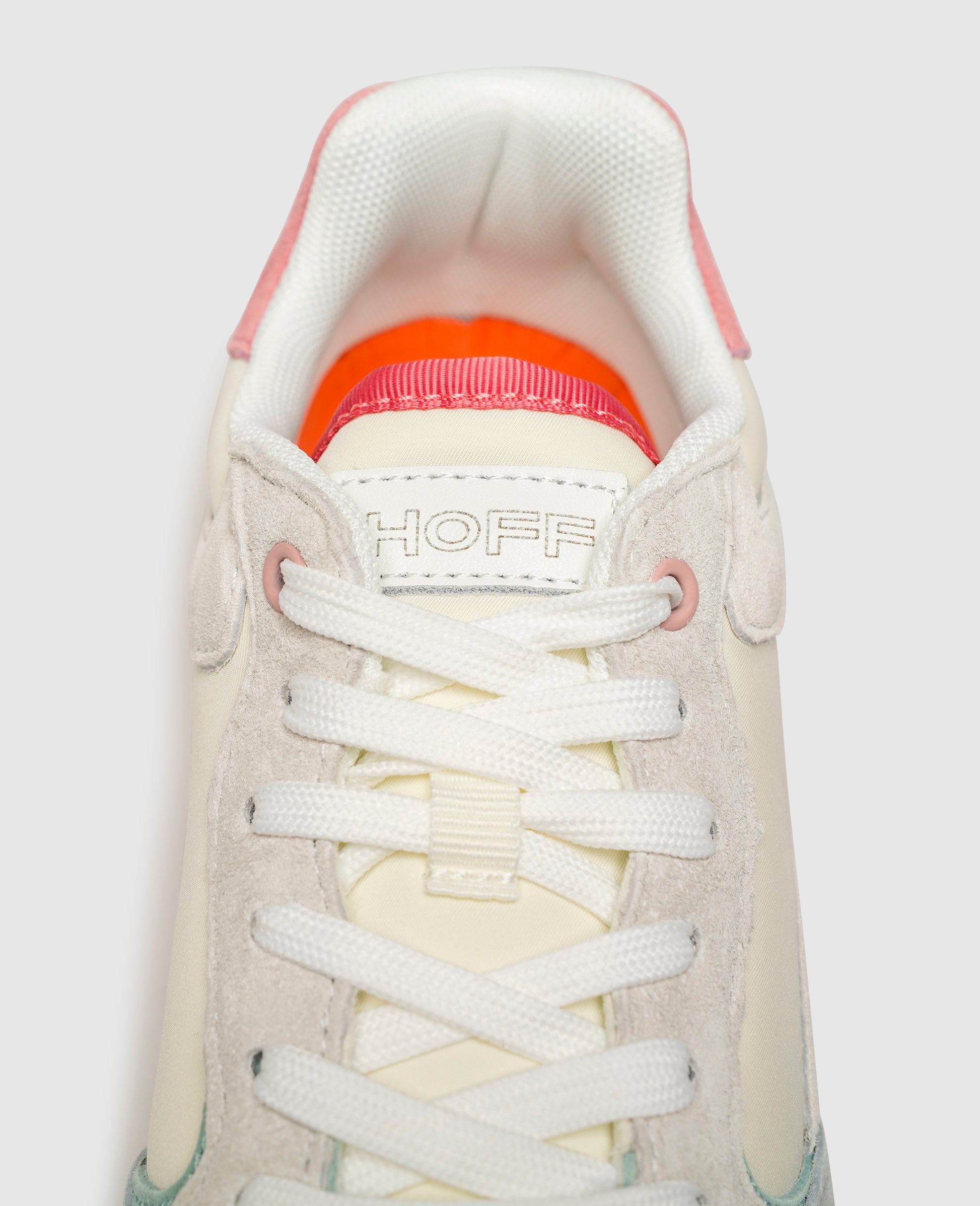 With this running shoe from Spanish brand HOFF you are sure to prove your bold commitment to color. The upper of this sporty model is a combination of sections made from soft velour, smooth leather, and textile. The padded collar and interchangeable footbed, which can be replaced with your own insoles if preferred, ensure a maximized feel-good experience. The label embossing on the heel cap and detailed rubber outsole are additional eye-catching features of this women's trainer.
