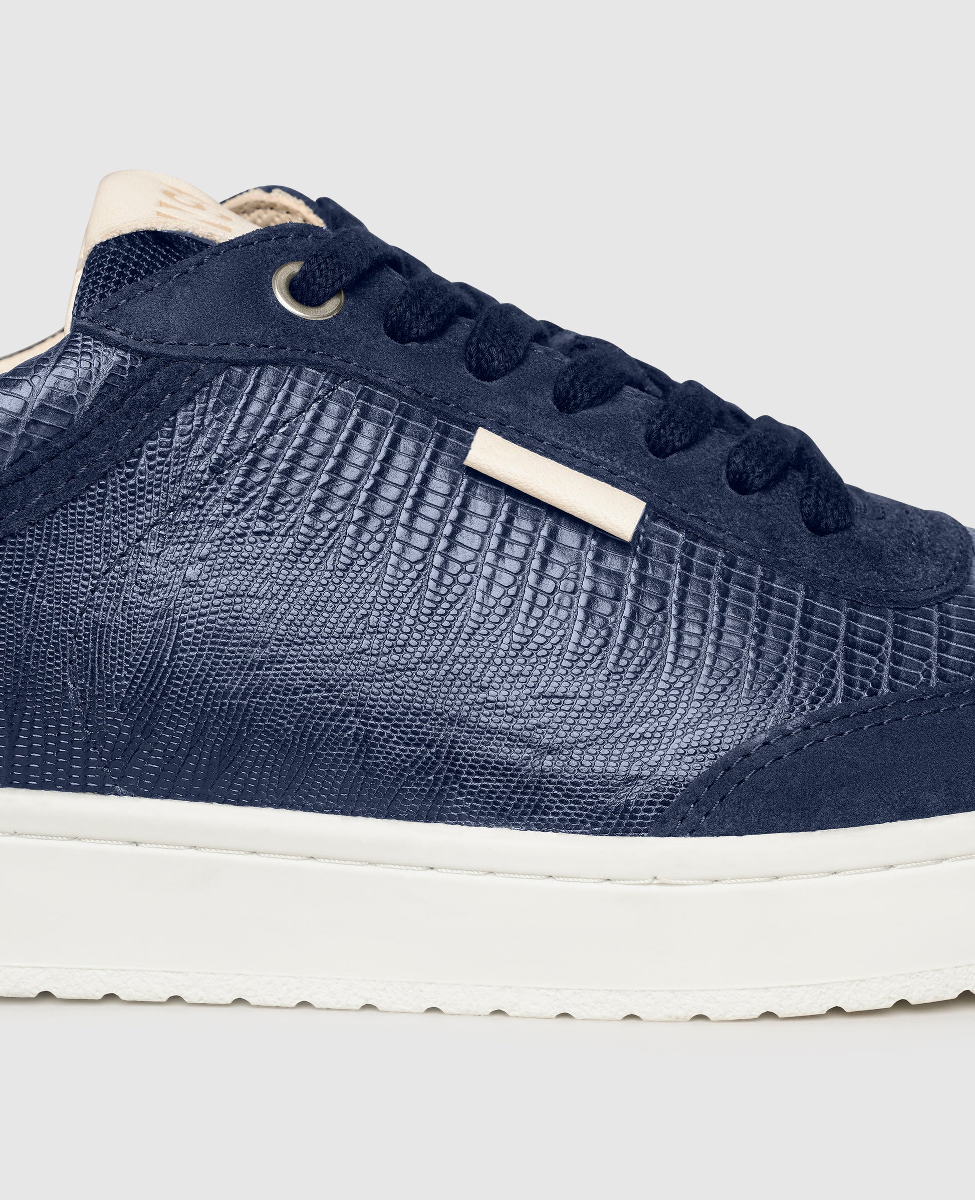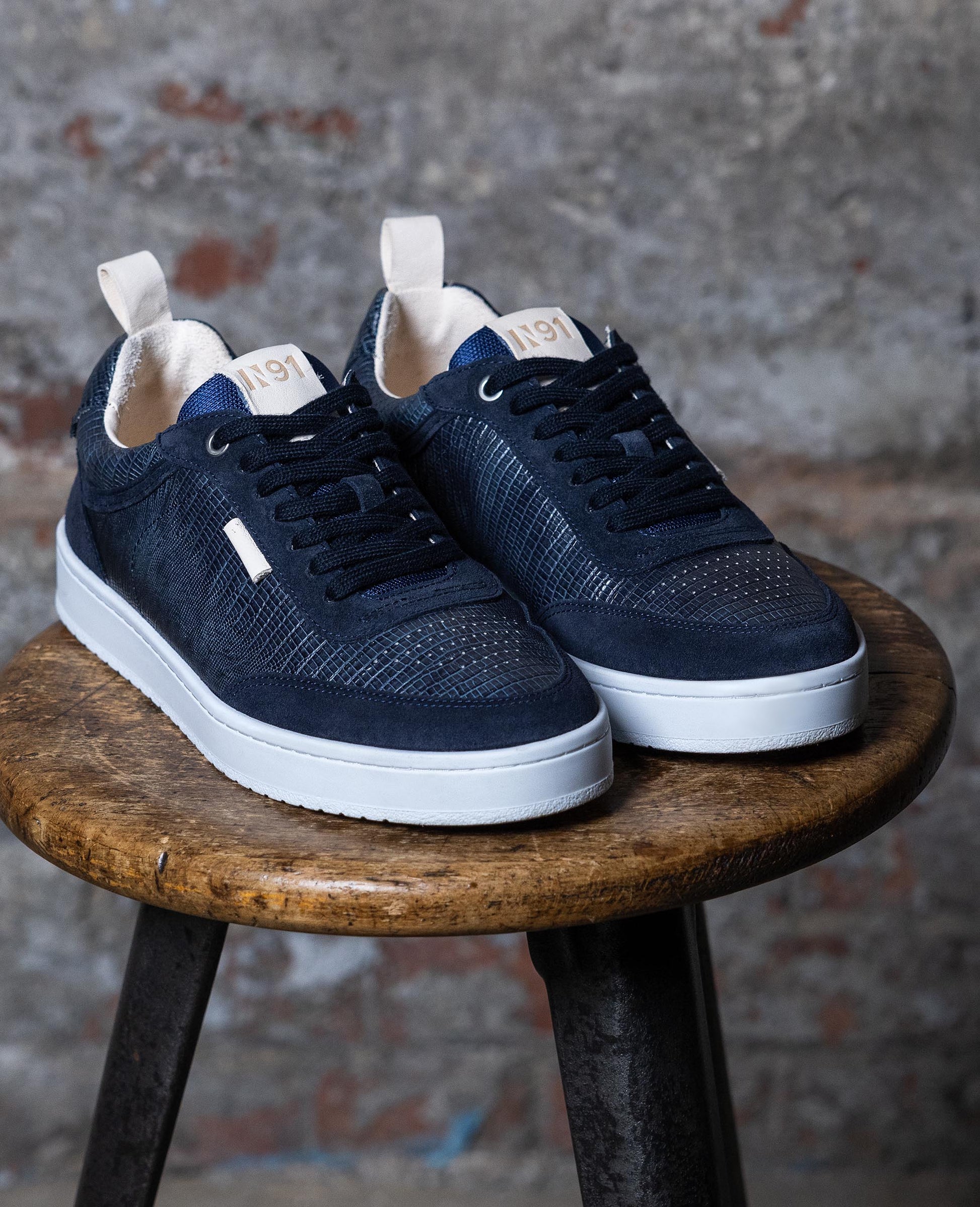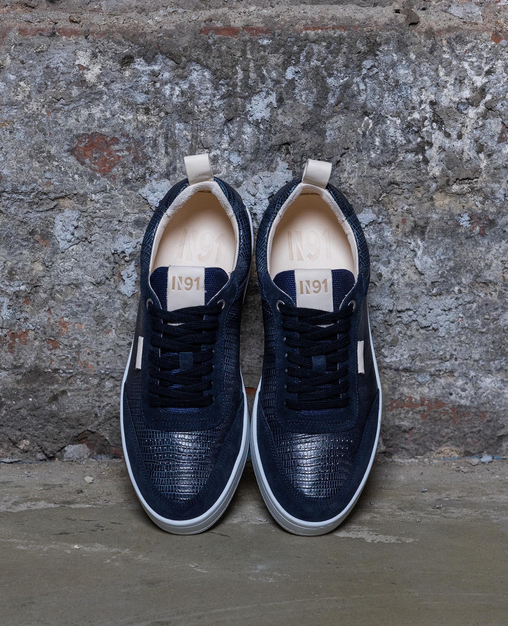 This sneaker by N91 is the perfect combination of lightness and classic comfort. Together with the fully compostable and skin-friendly organic leather lining and a comfortable exchangeable footbed with memory foam, the shoe made in Portugal guarantees modern lightness. The dark blue shoe for men can be fastened with a lacing and the material combination of velvety calfskin velours, robust textile and embossed calfskin gives it an unmistakable touch of classiness. A nonslip rubber outsole ensures that your feet won't get tired even after a long day. Easygoing and versatile, these casual lace-up shoes will win you over!