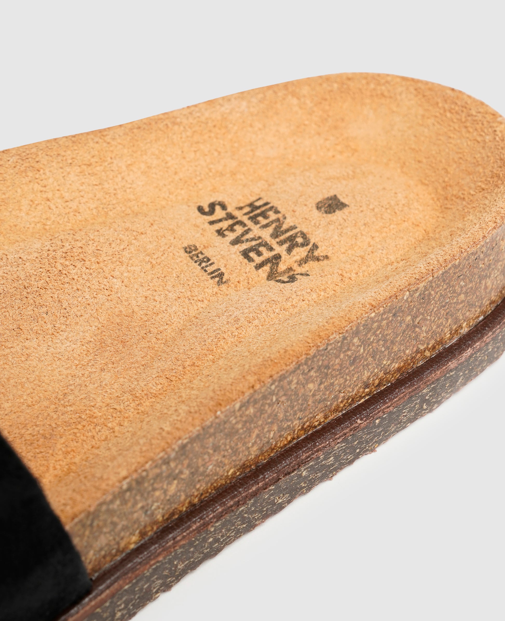 Henry Stevens presents a trendy and versatile shoe for the warm summer days with this sandal. The straps of the black model for men are made of grainy and velvety calfskin velours, the width is regulated by a buckle. Inside, organic leather not only ensures a pleasant shoe climate, it is also particularly skin-friendly and fully compostable. The comfortable cork footbed makes every step a real walking experience, while the attached crepe outsole ensures sure-footedness. Made in Portugal, this sandal is perfect for rounding off your looks on the warm days of the year, when you are sure to receive appreciative glances with this model on your foot.